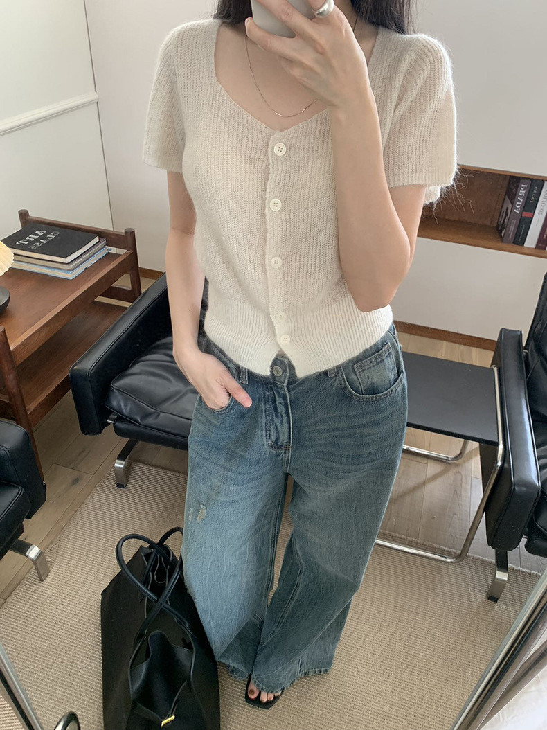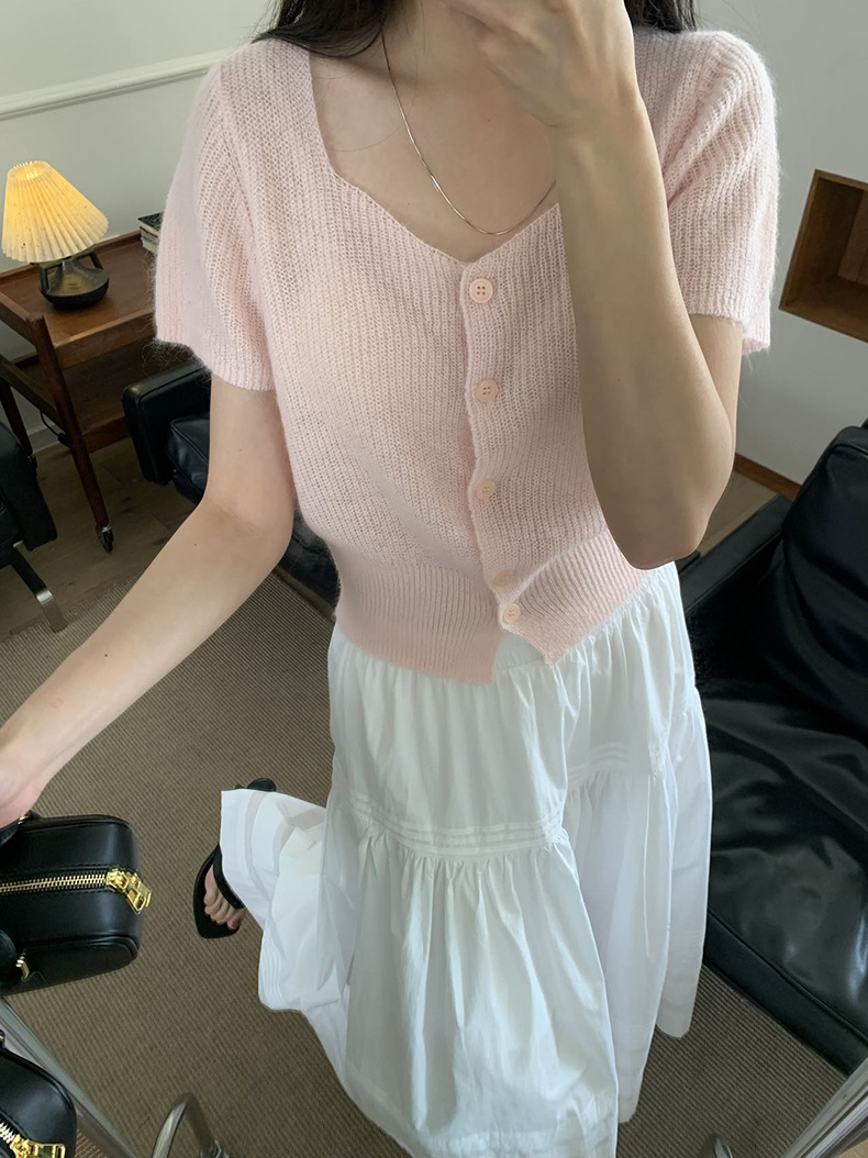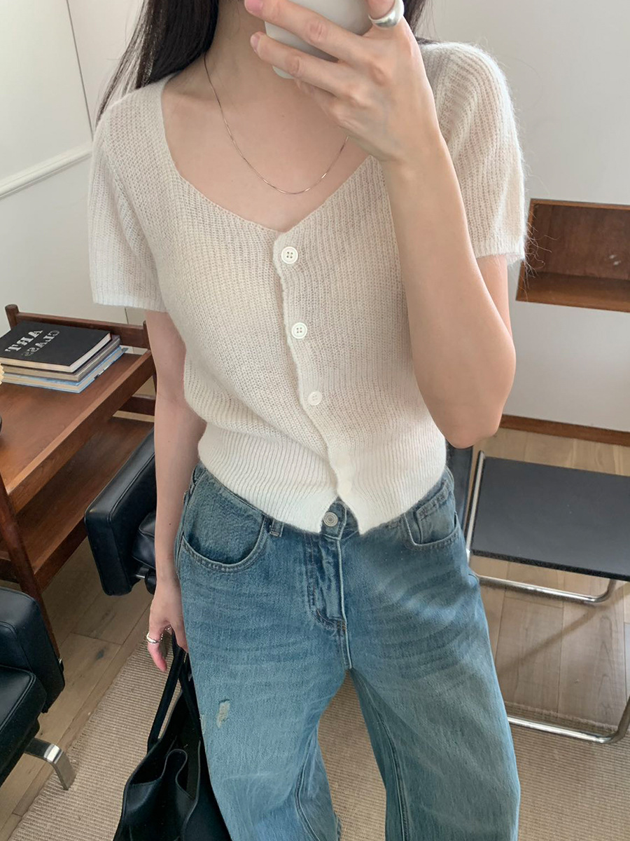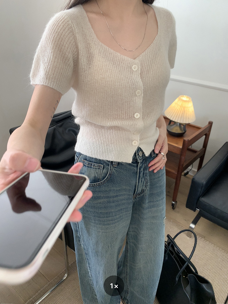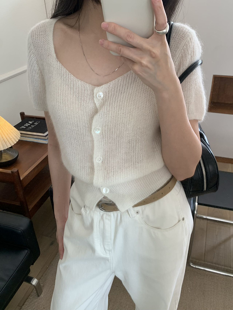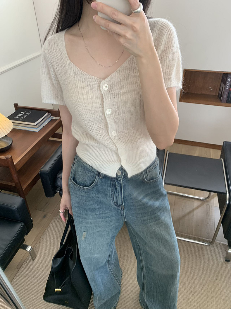 2025夏季新款微透短袖针织衫气质软糯羊毛上衣A4108