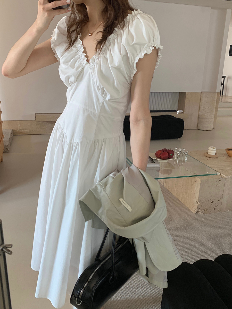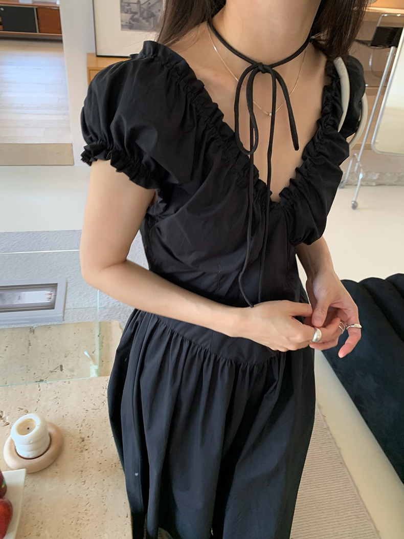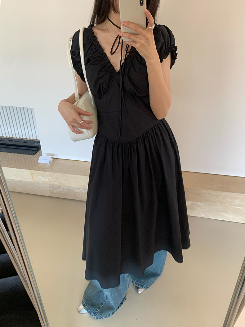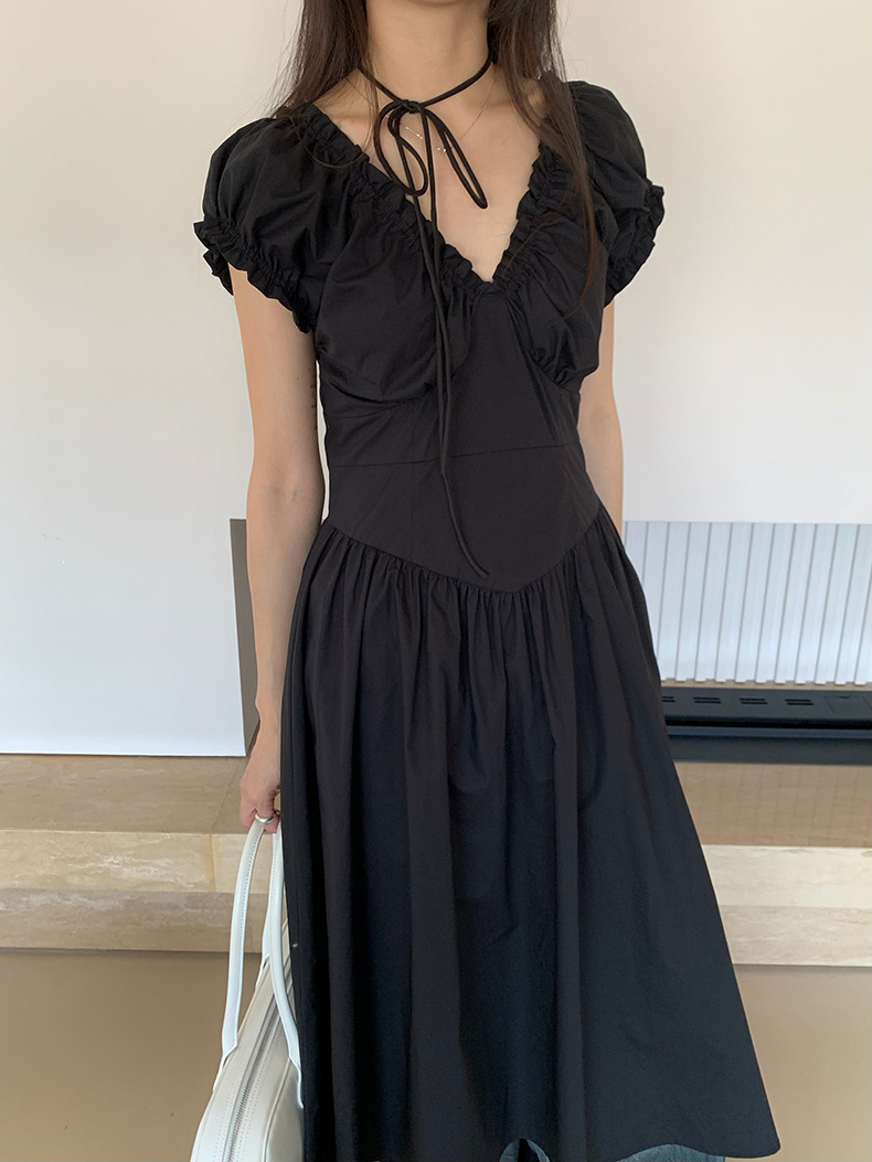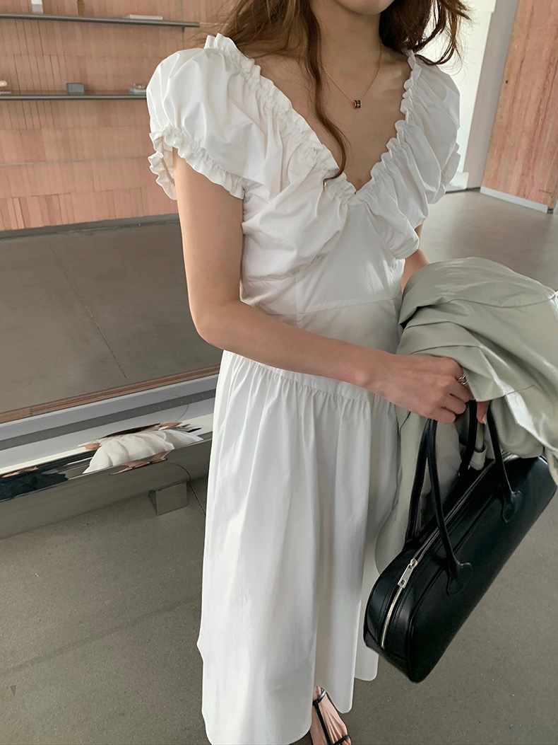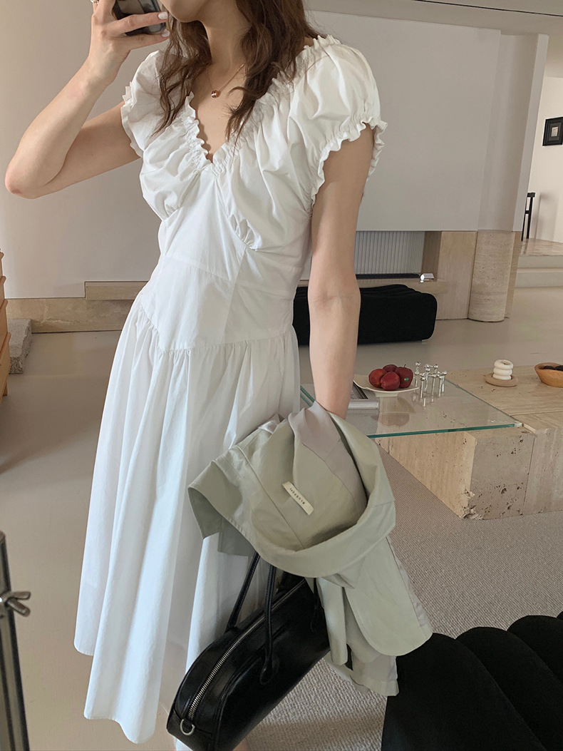 2025夏季新款法式木耳边连衣裙度假风V领长裙子W0569