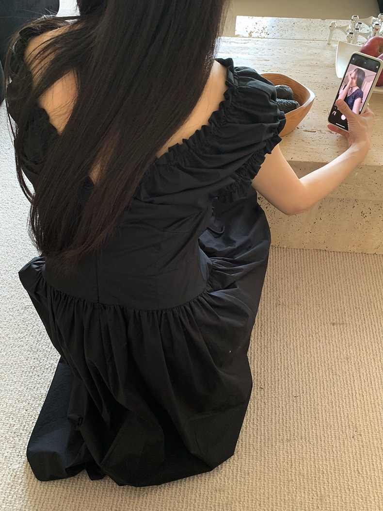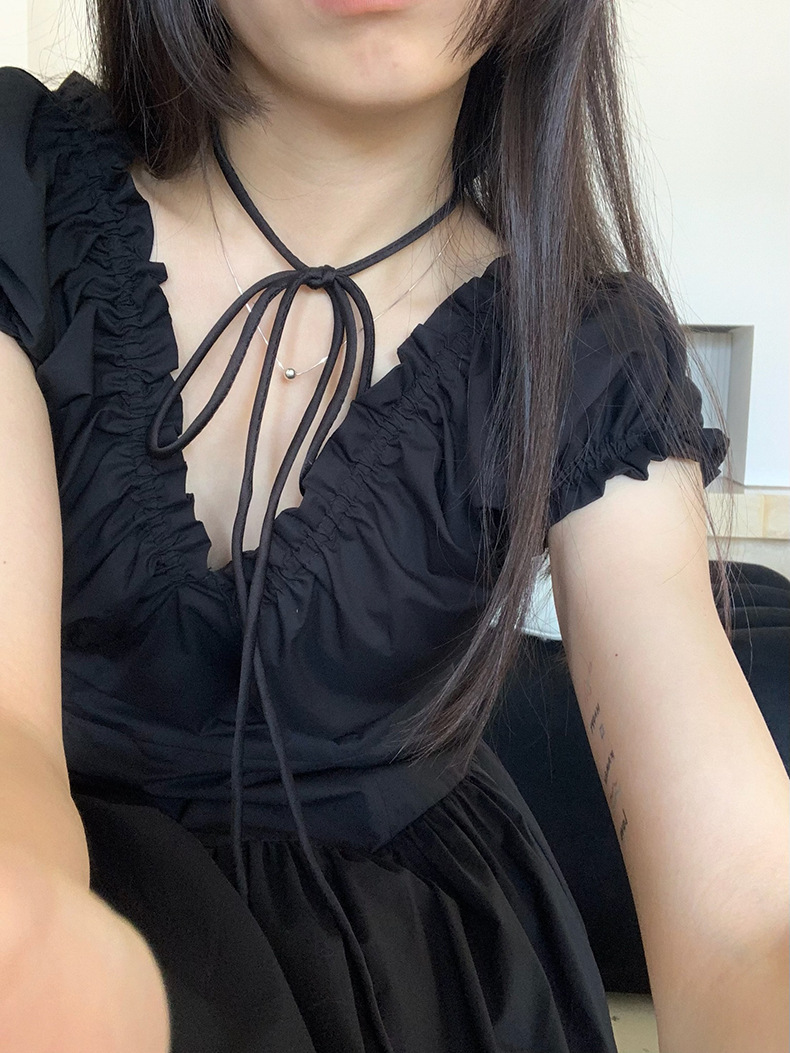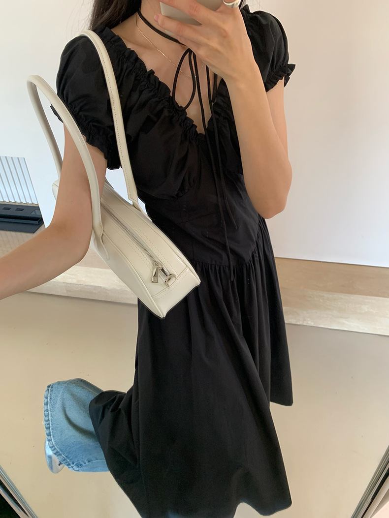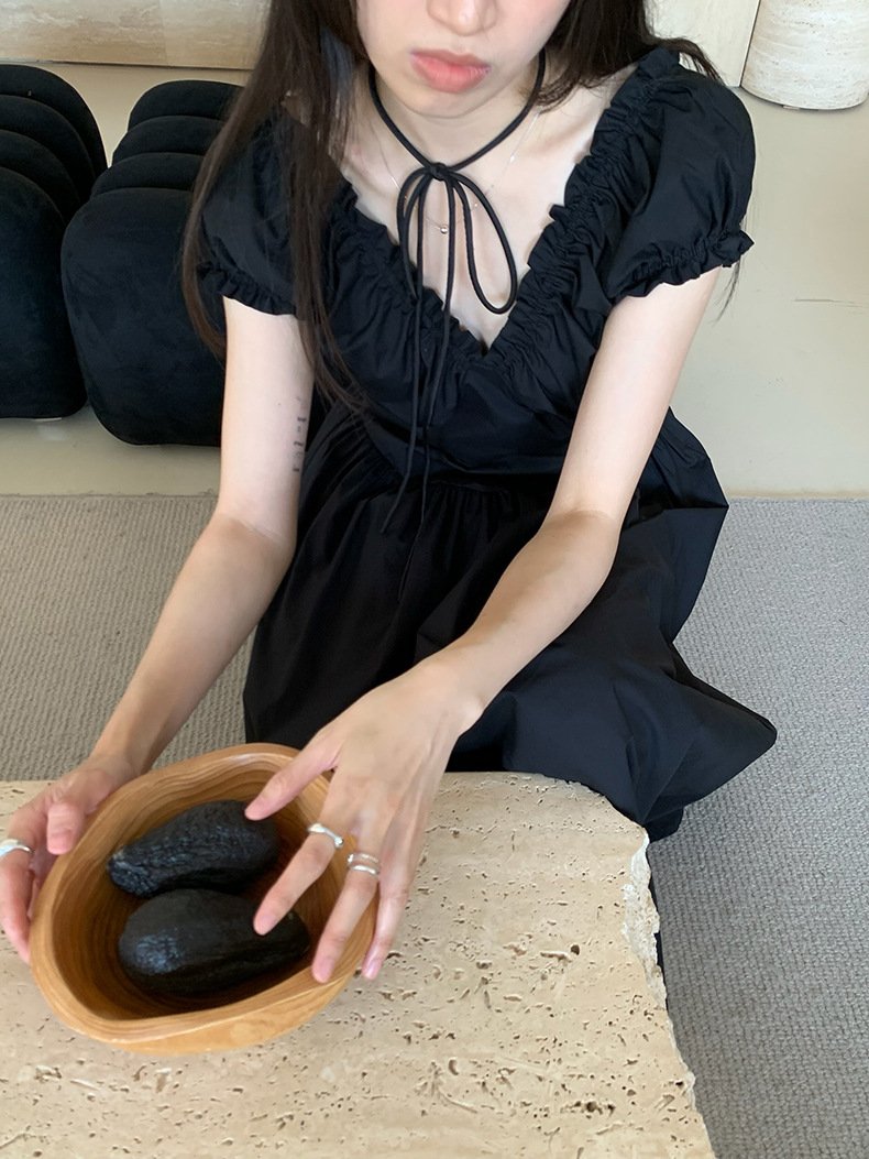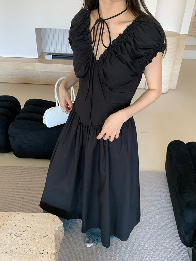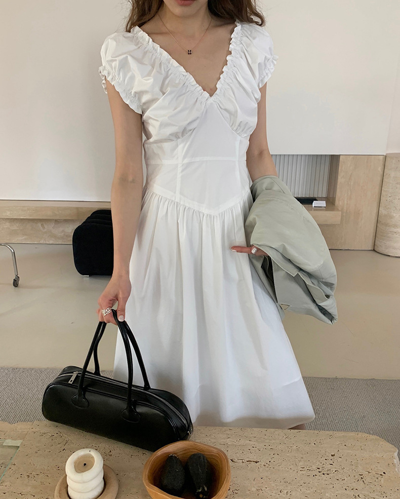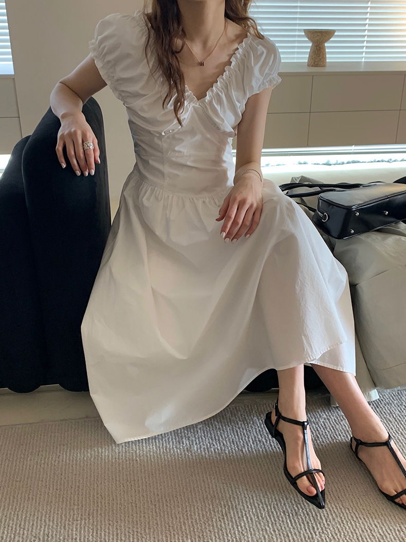 2025夏季新款法式木耳边连衣裙度假风V领长裙子W0569