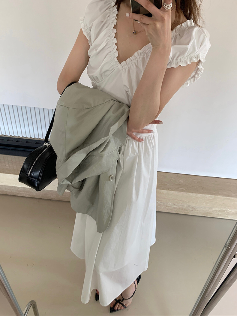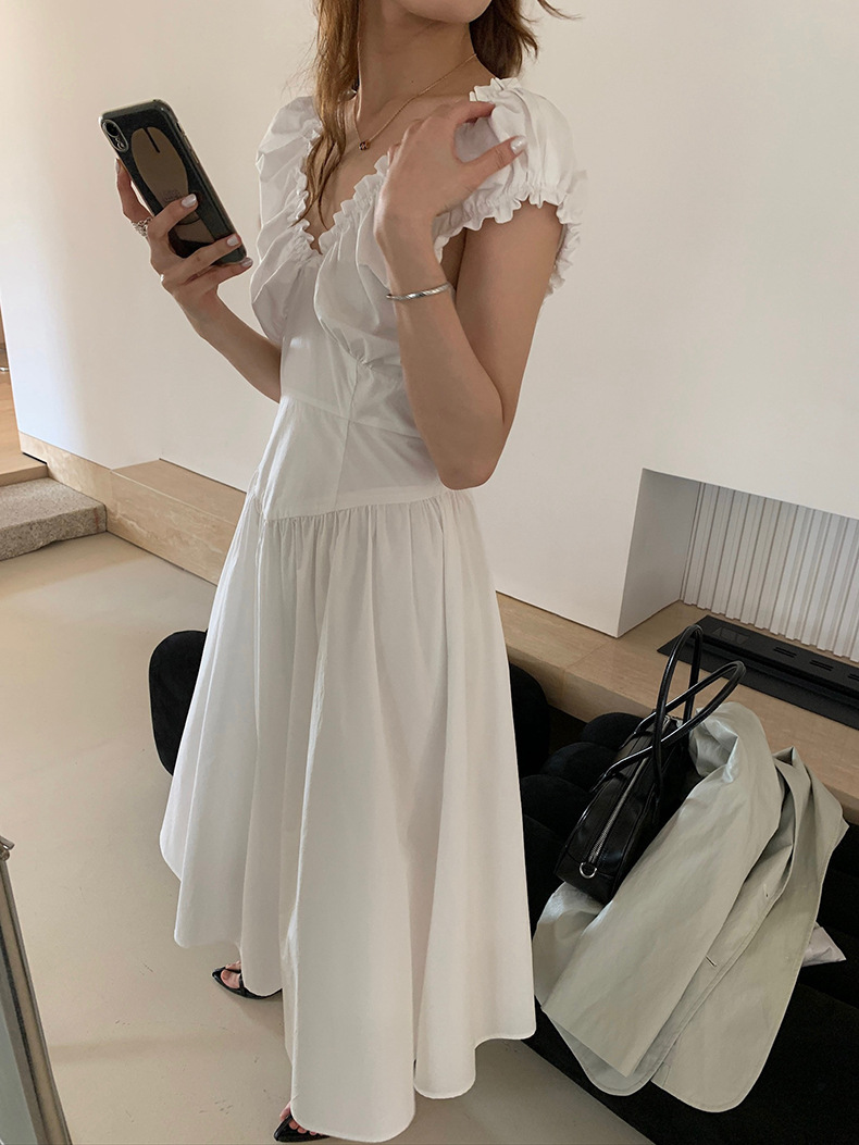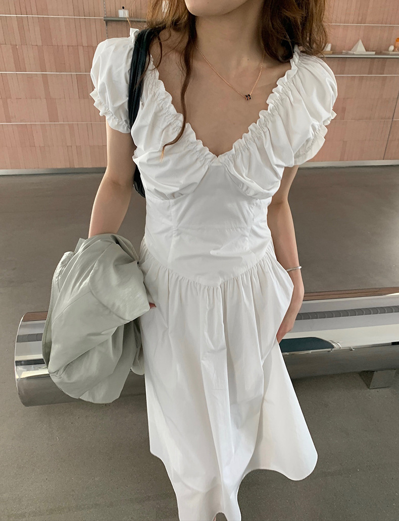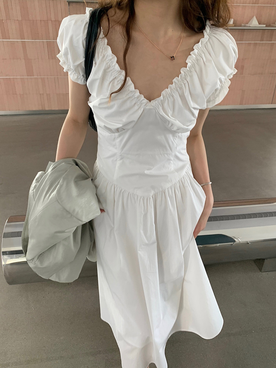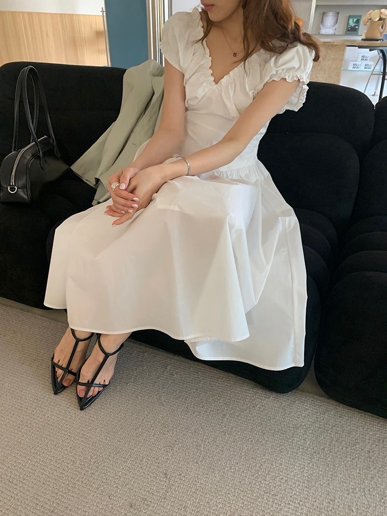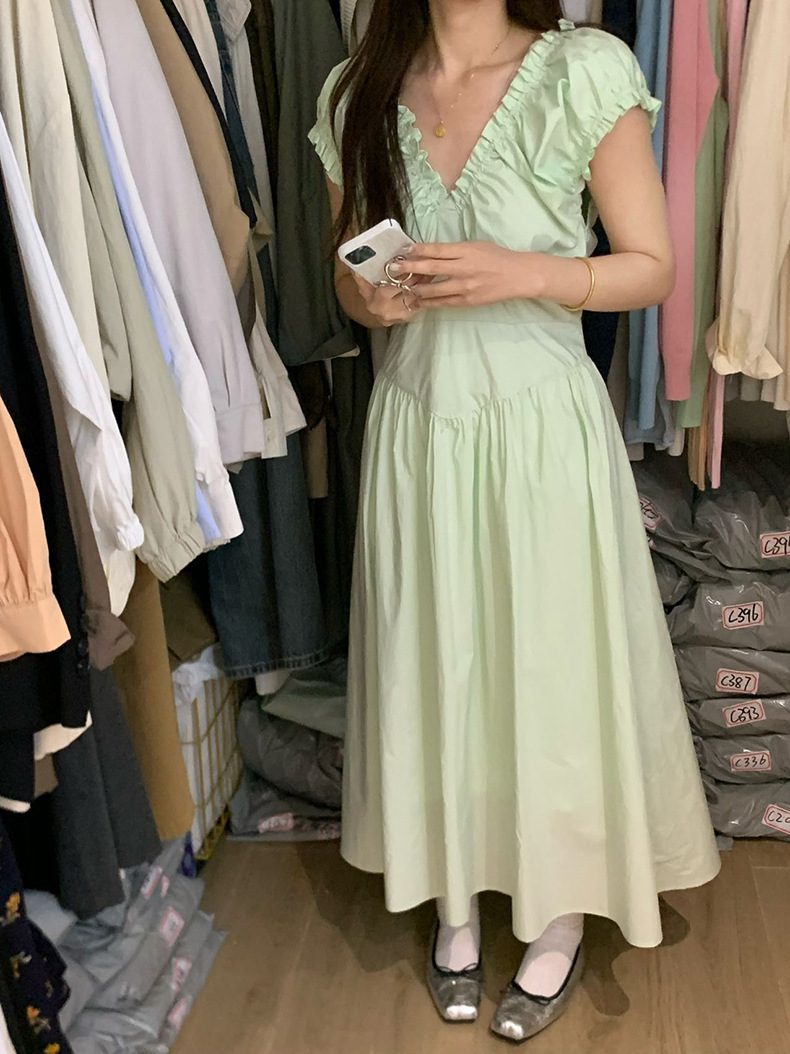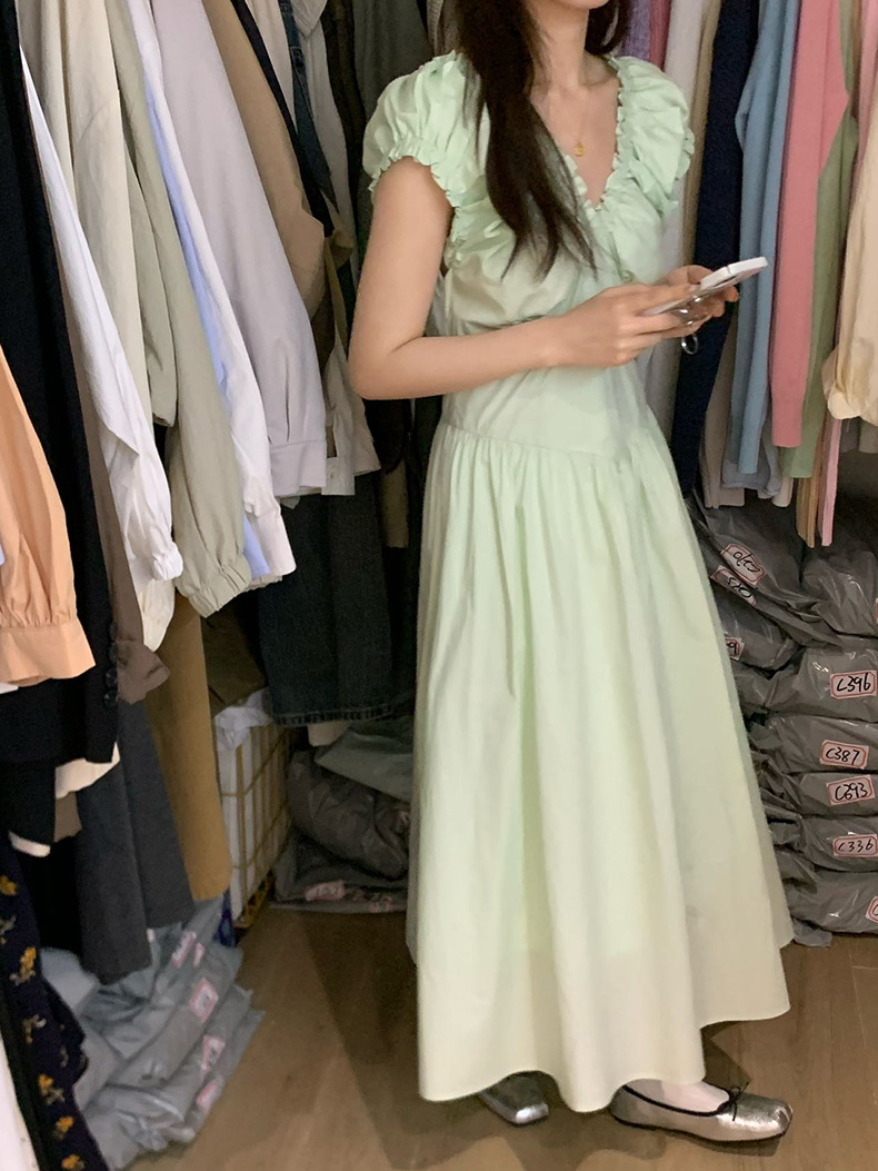 2025夏季新款法式木耳边连衣裙度假风V领长裙子W0569 投诉