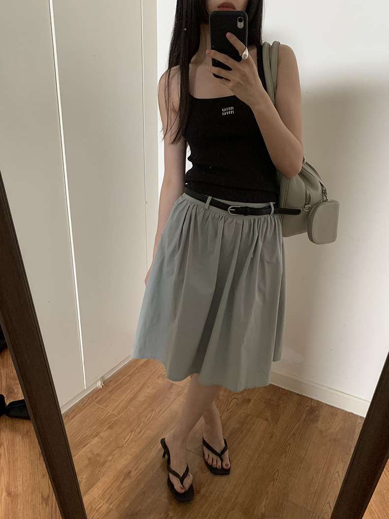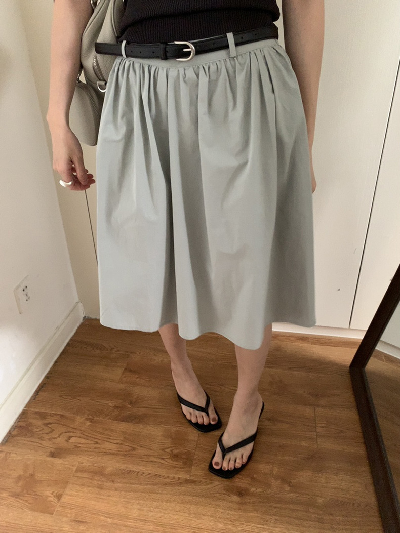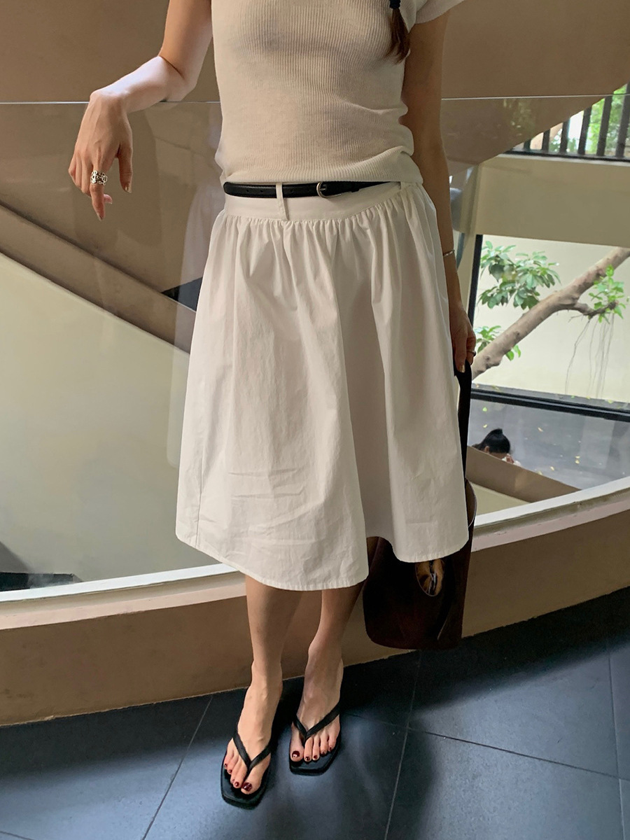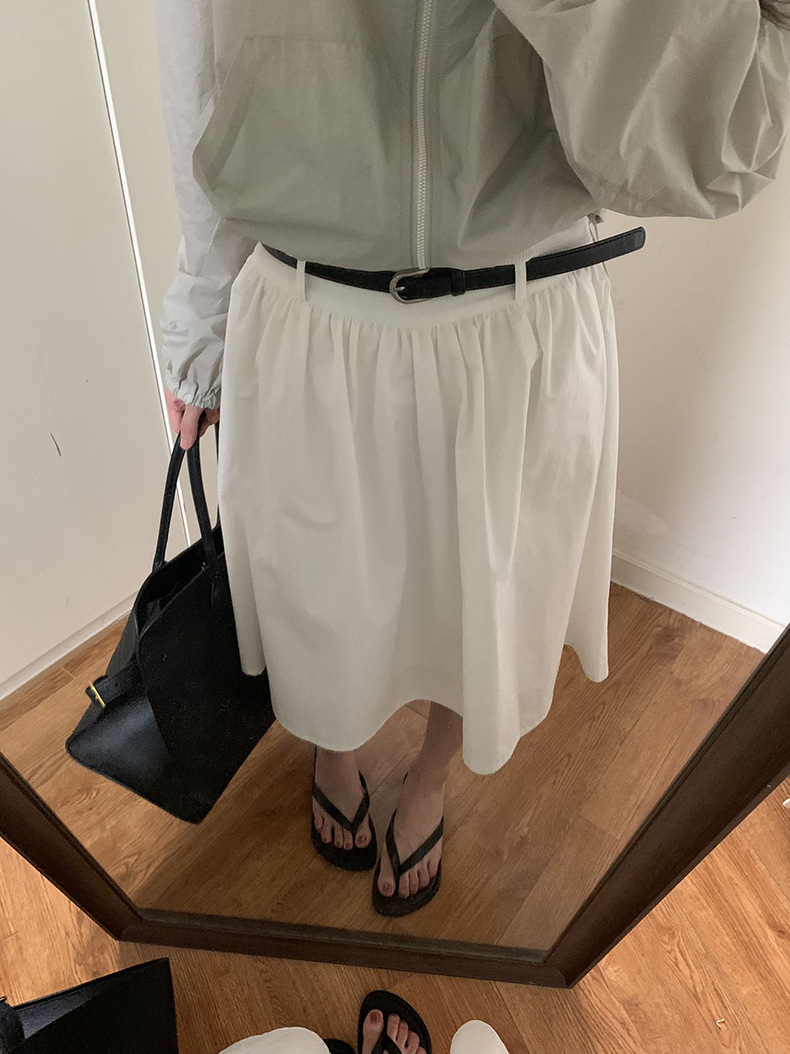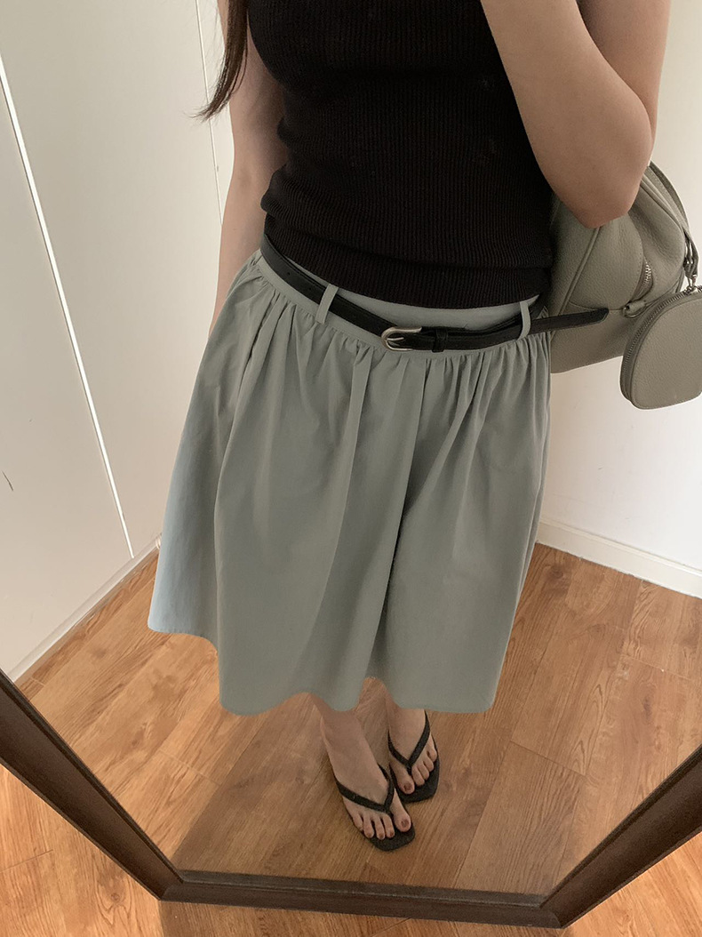 2025夏季新款配腰带法式半身裙休闲褶皱A字中裙A4275
