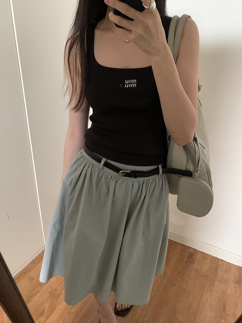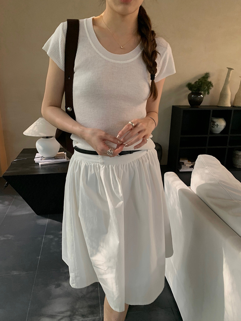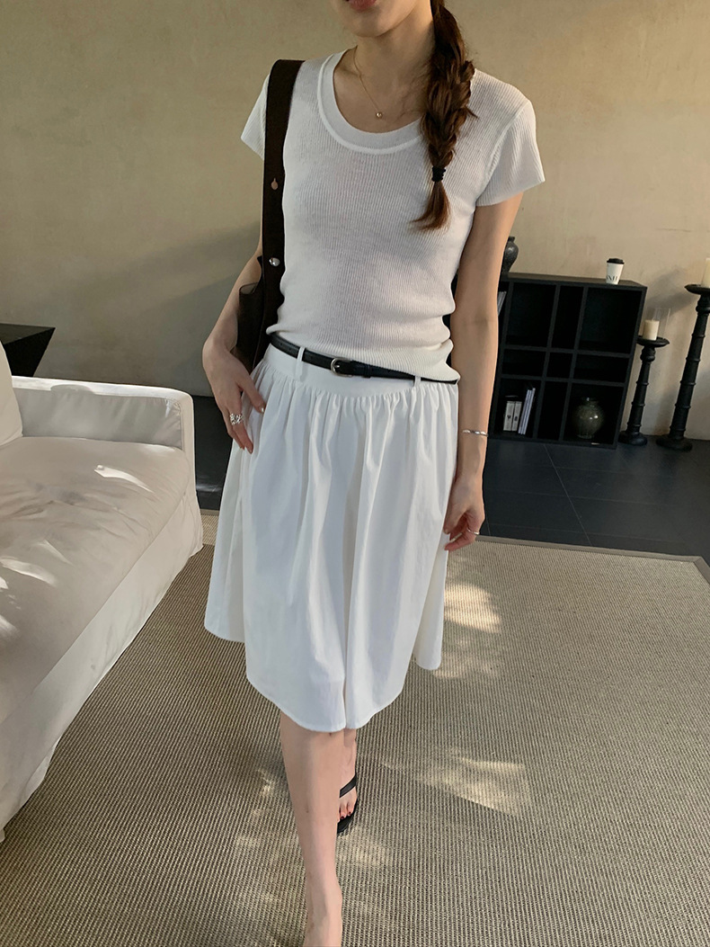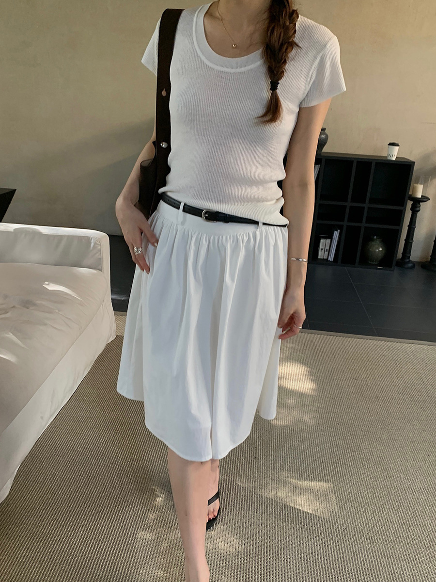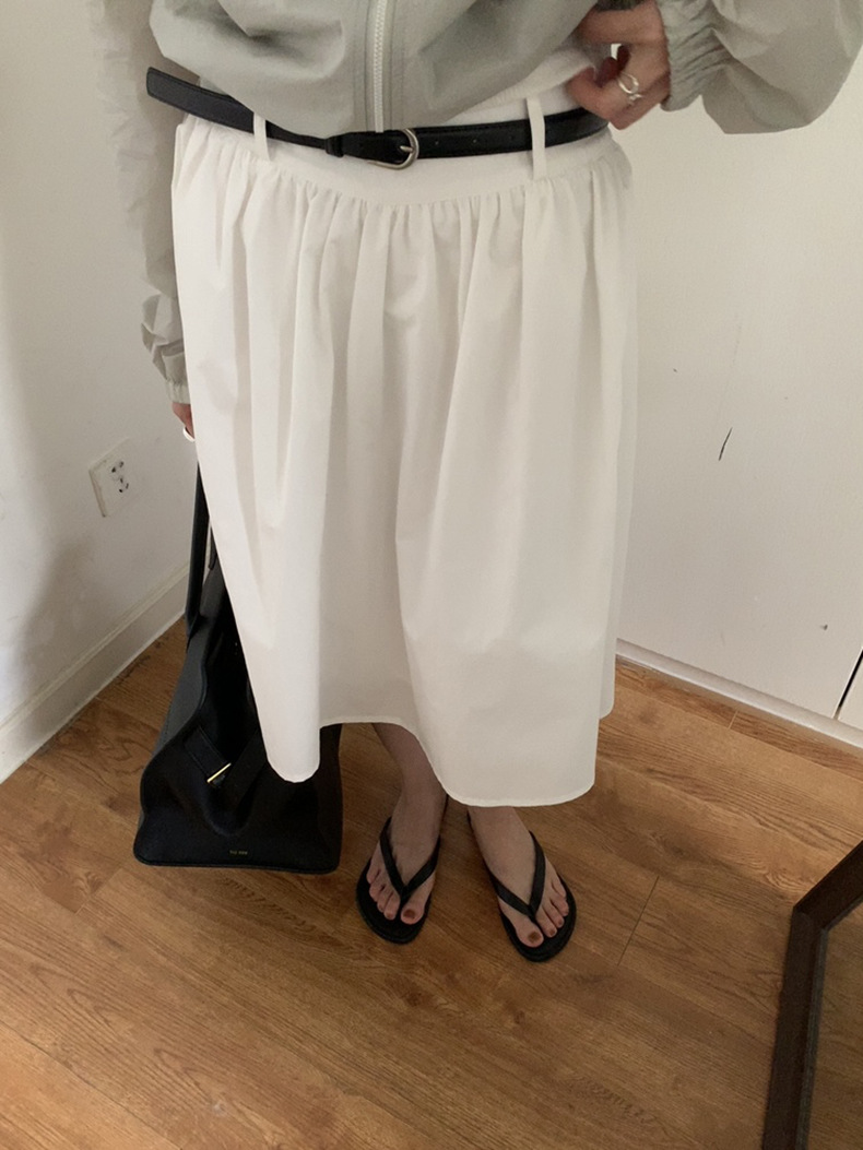 2025夏季新款配腰带法式半身裙休闲褶皱A字中裙A4275