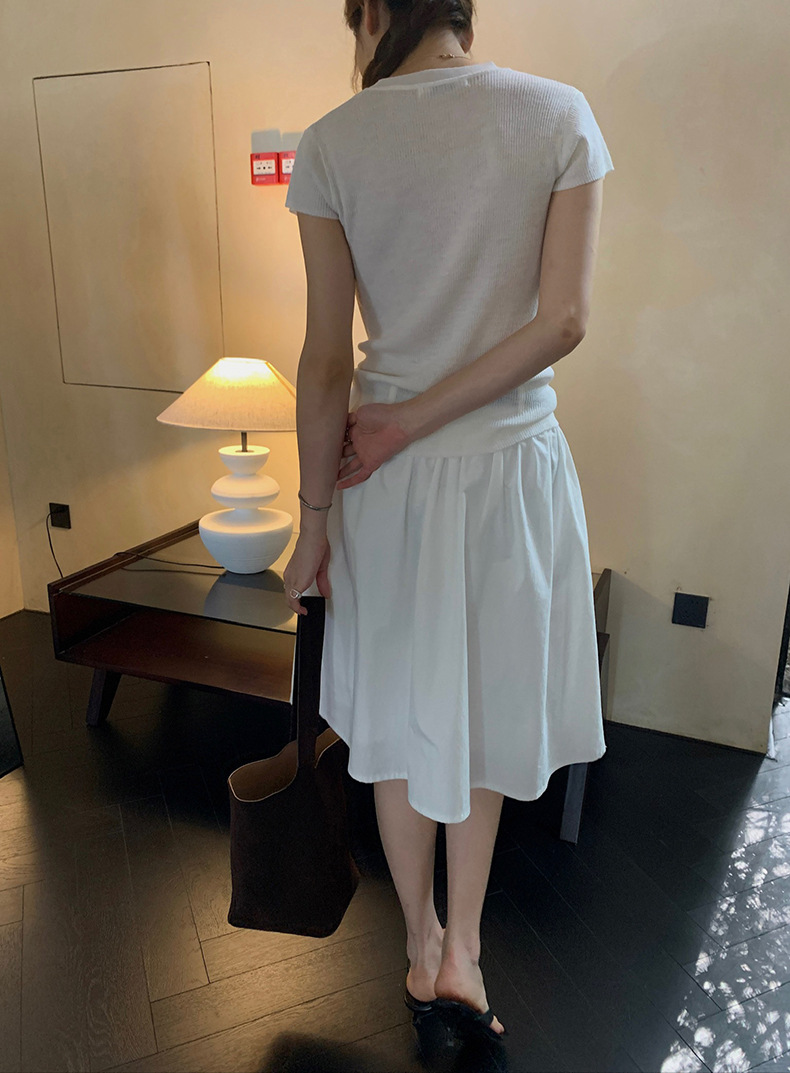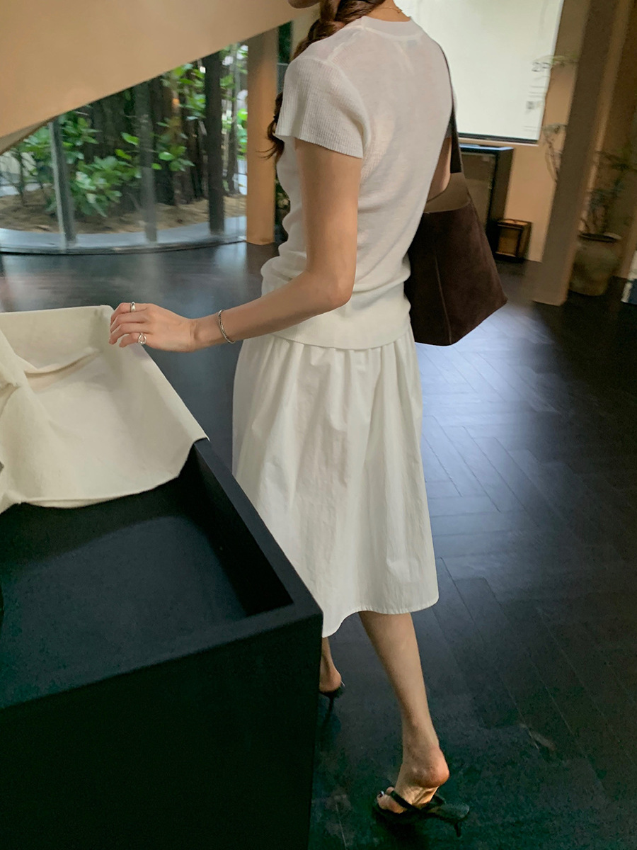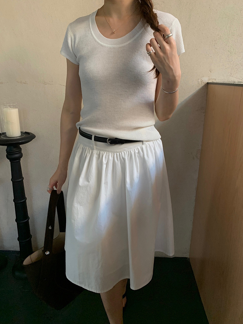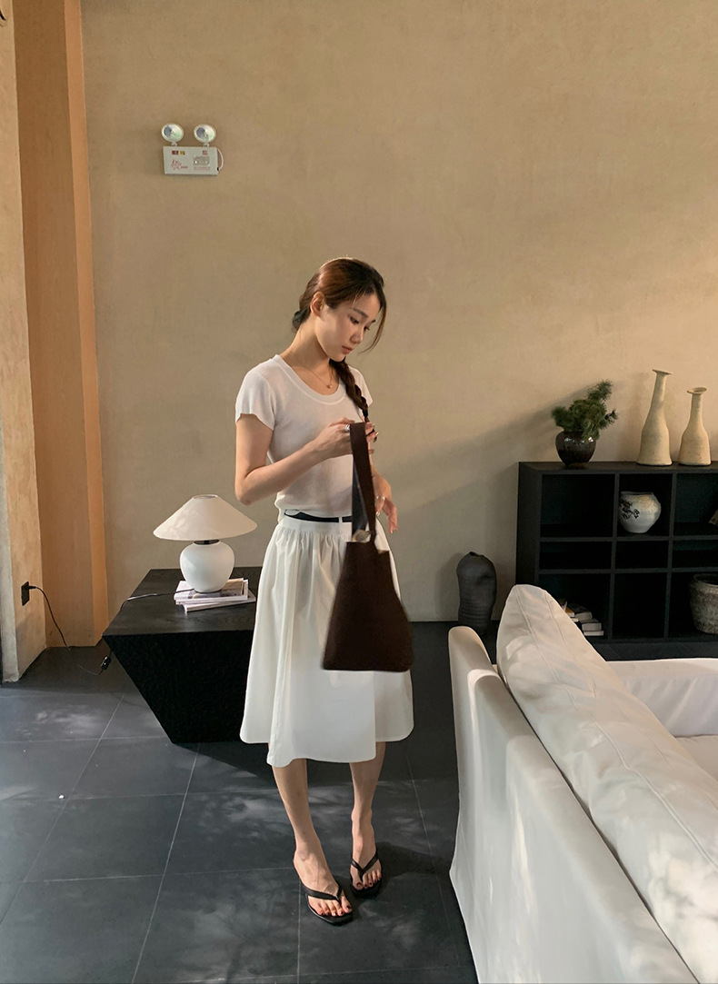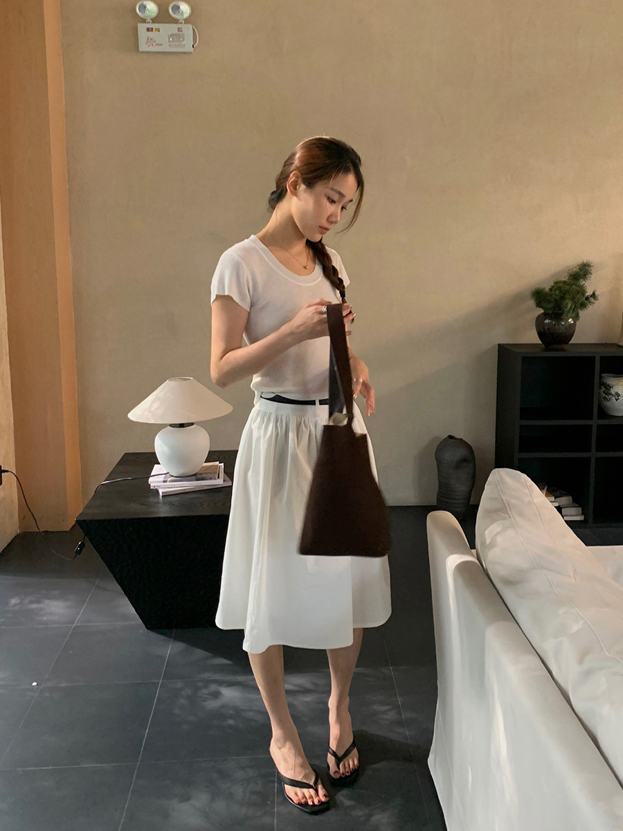 2025夏季新款配腰带法式半身裙休闲褶皱A字中裙A4275