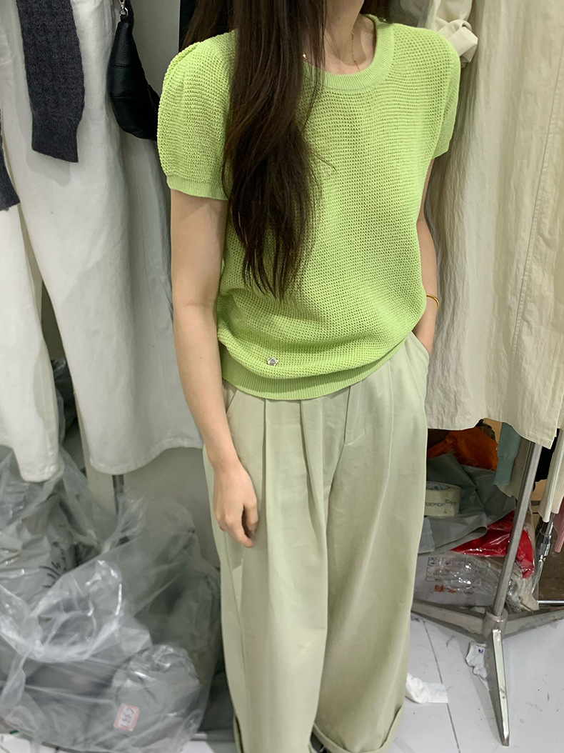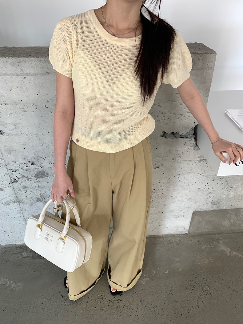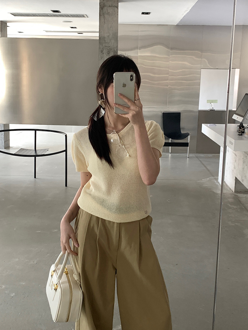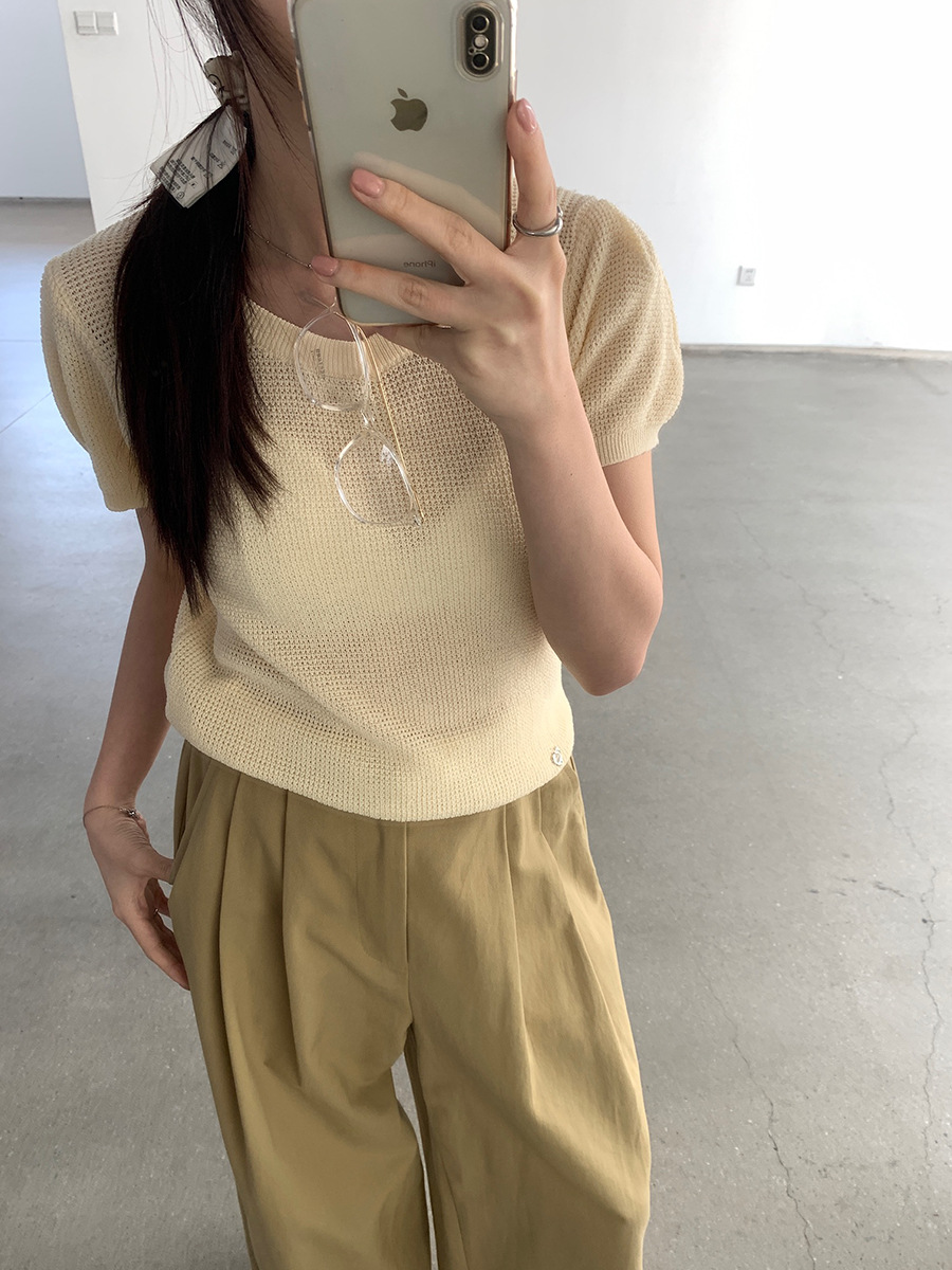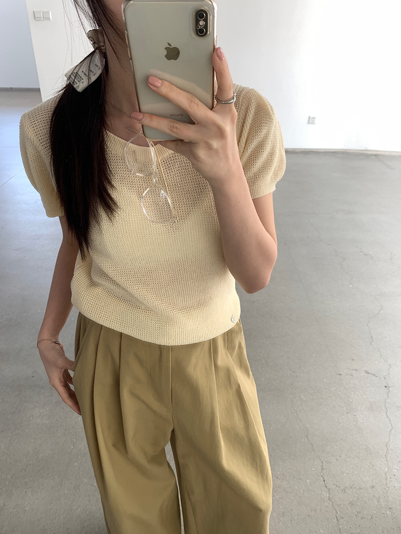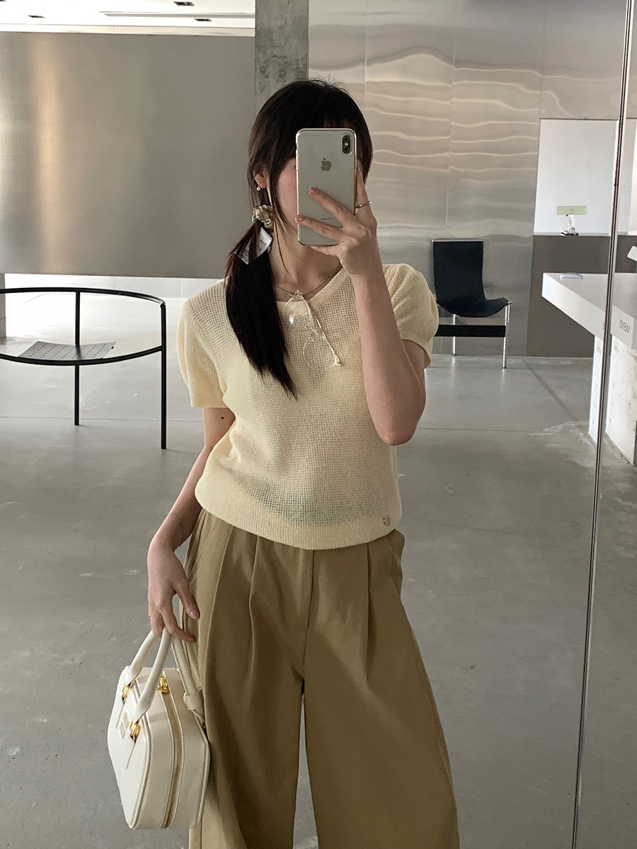 2025夏季新款华夫格短袖针织衫微透套头上衣女W0624