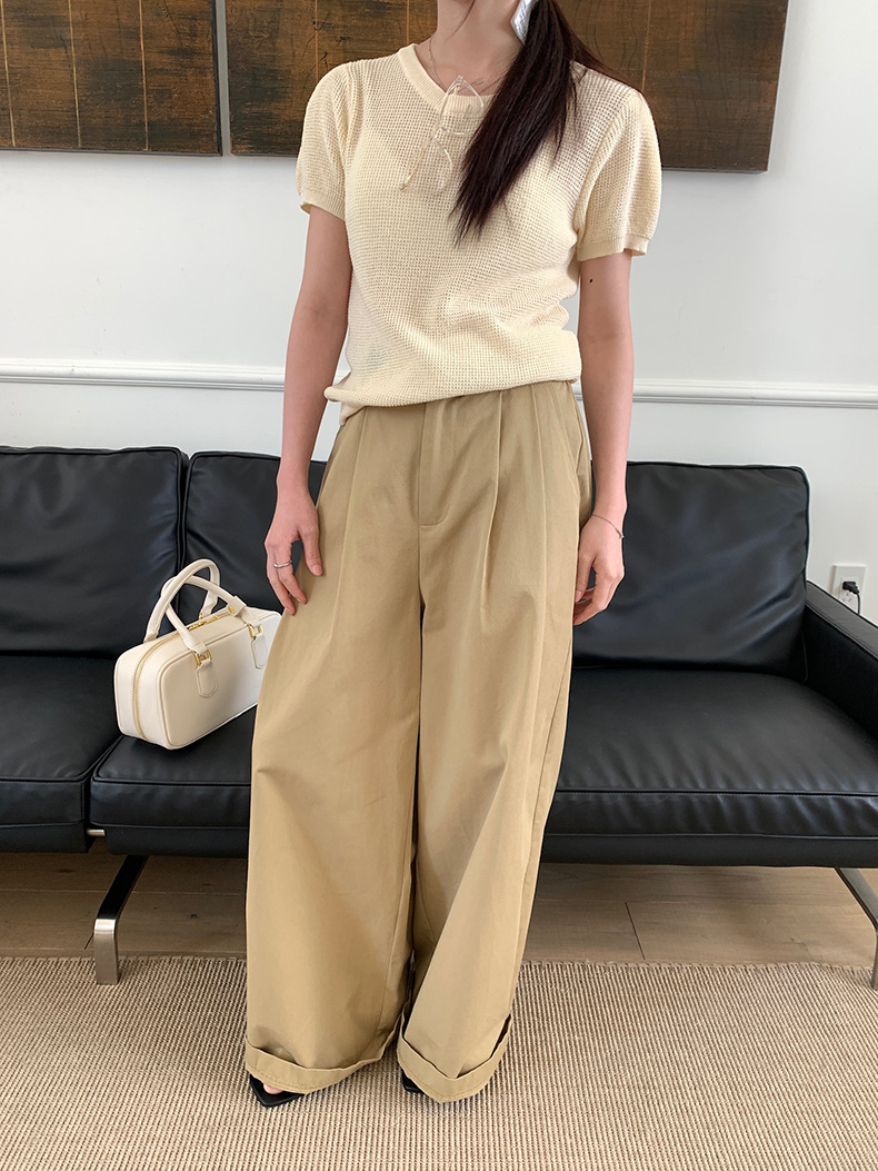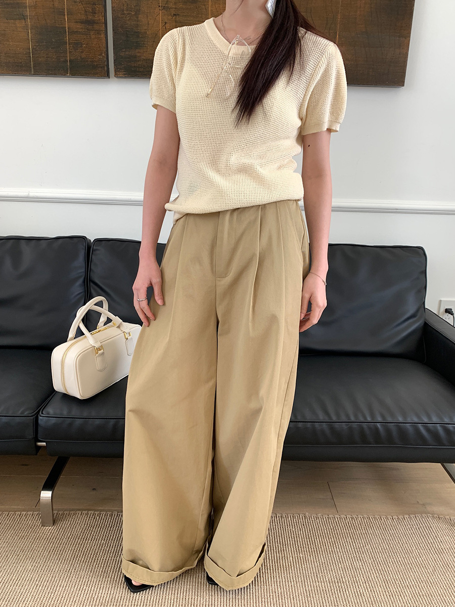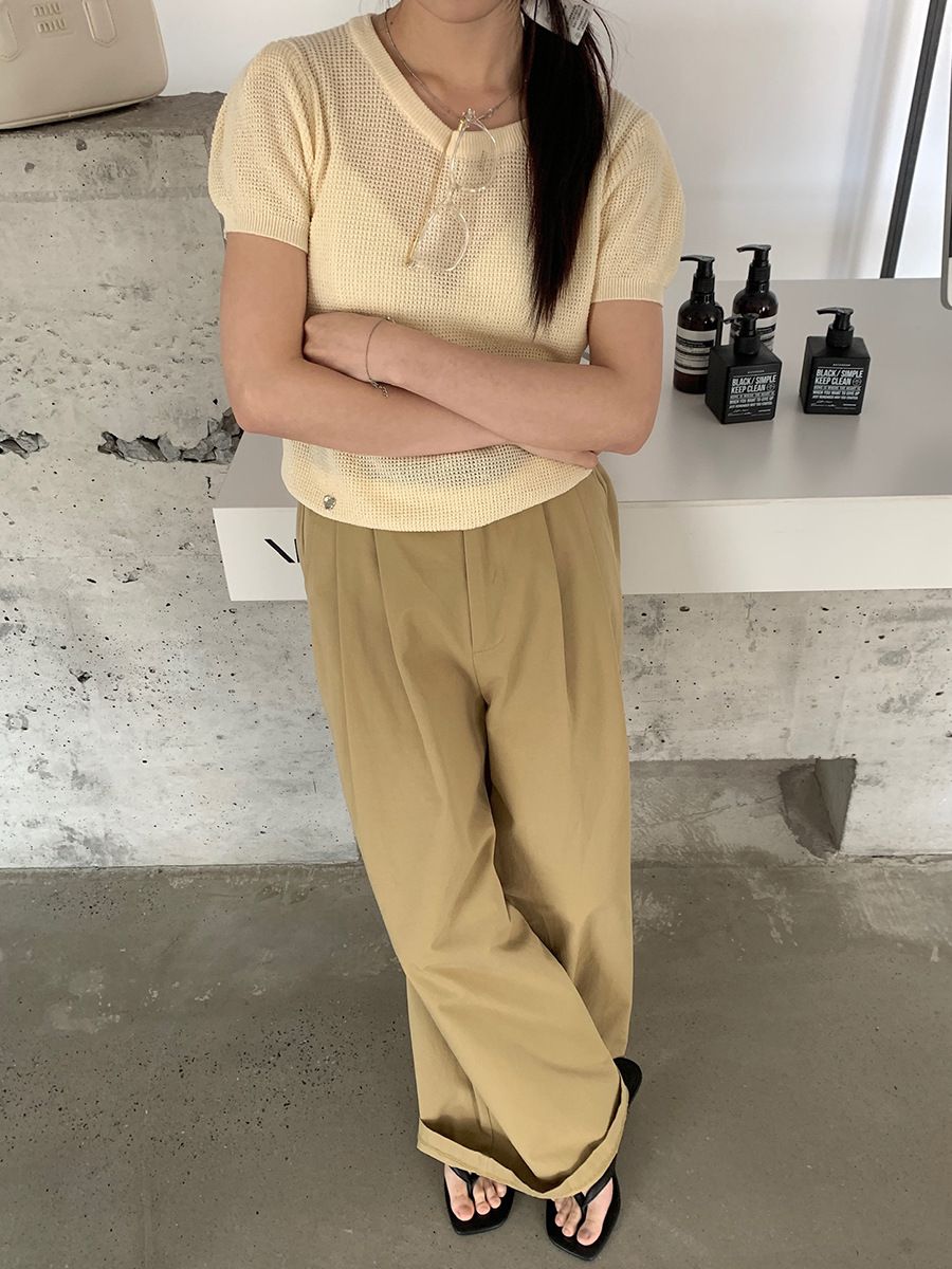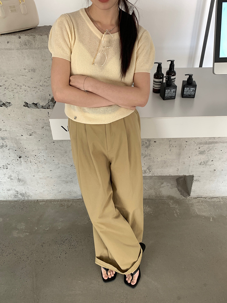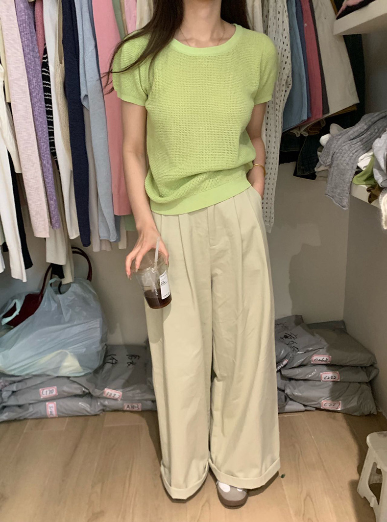 2025夏季新款华夫格短袖针织衫微透套头上衣女W0624