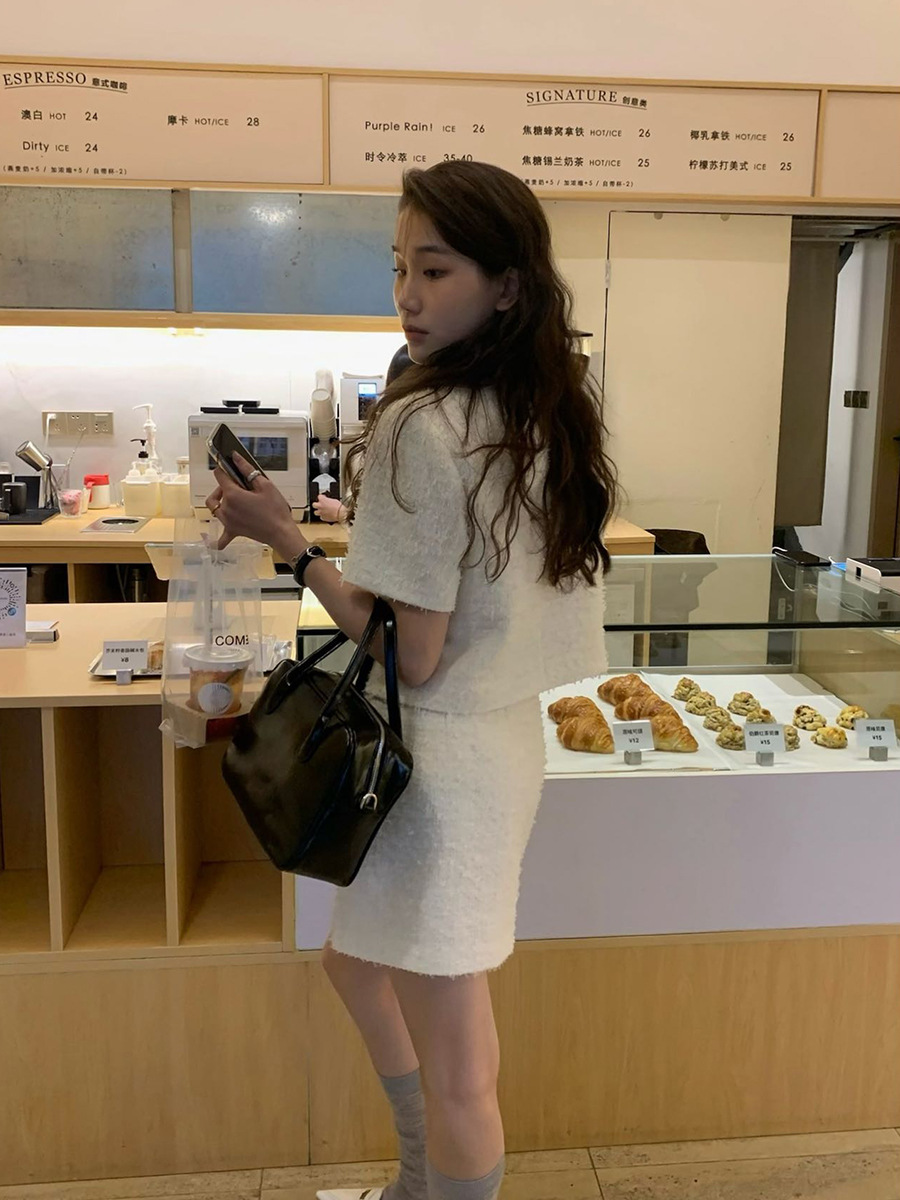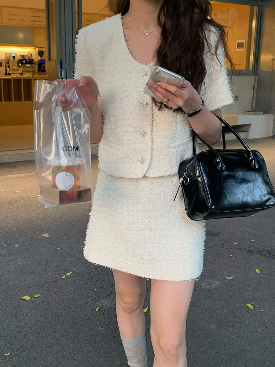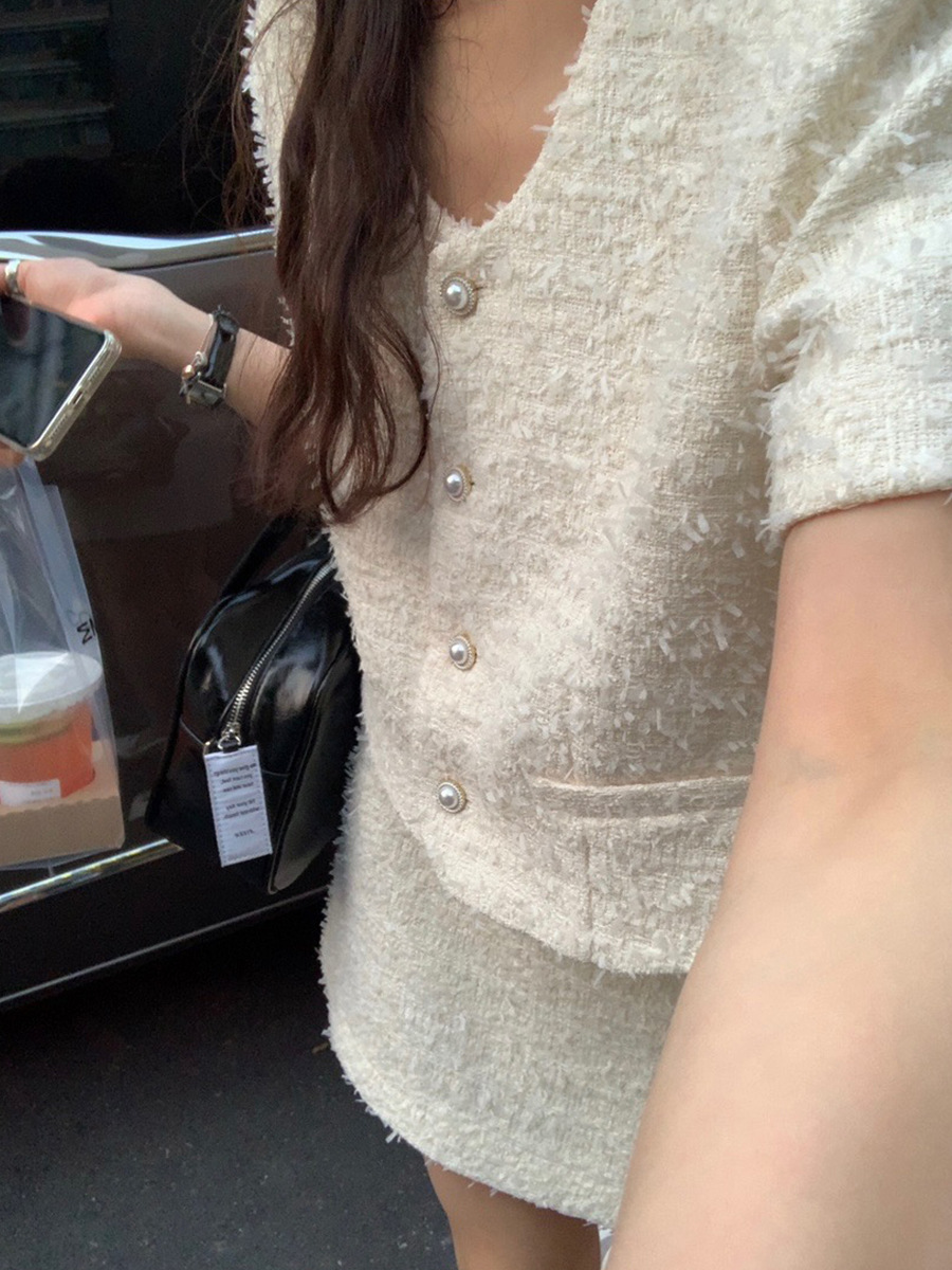 2025夏季气质小香风上衣+A字半身裙AT020-AT021