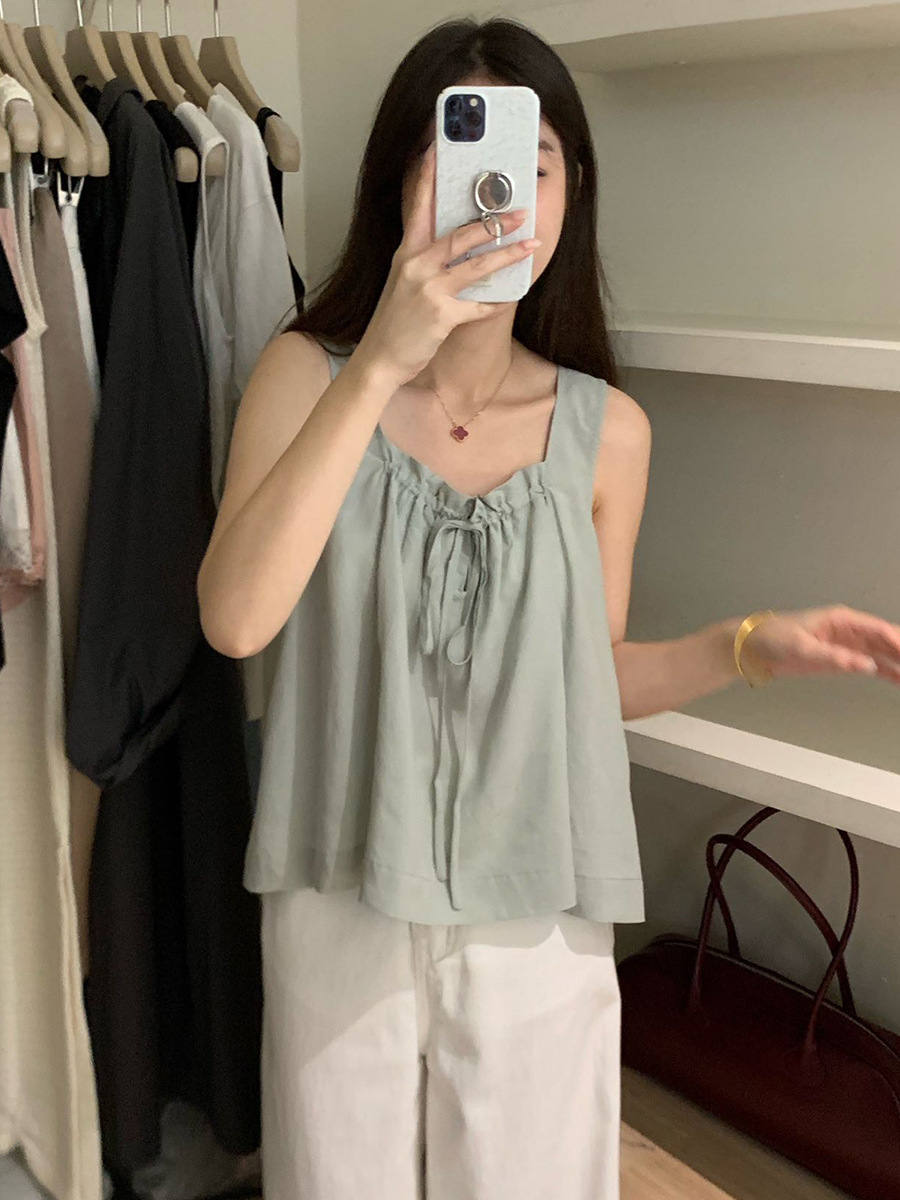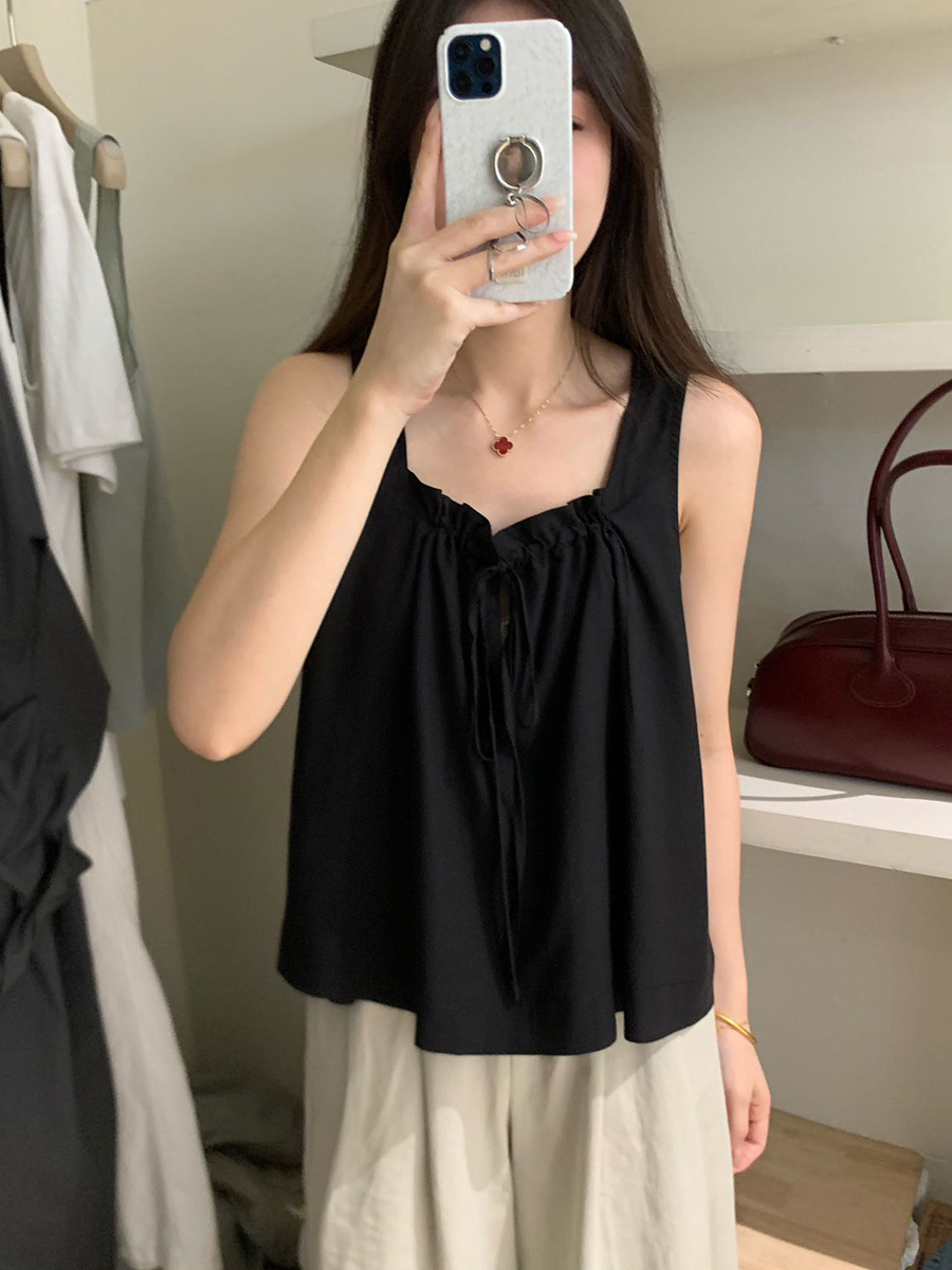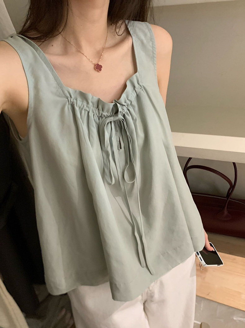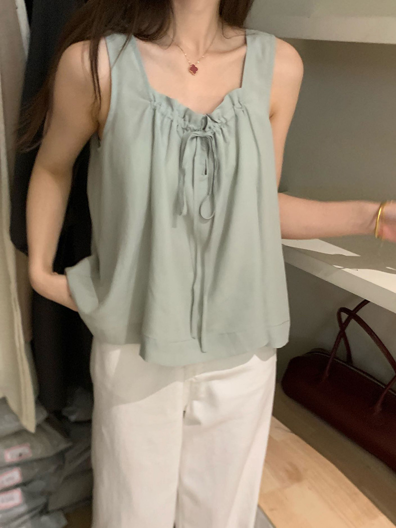 2025夏季新款甜美减龄天丝小衫抽绳无袖上衣女A4291