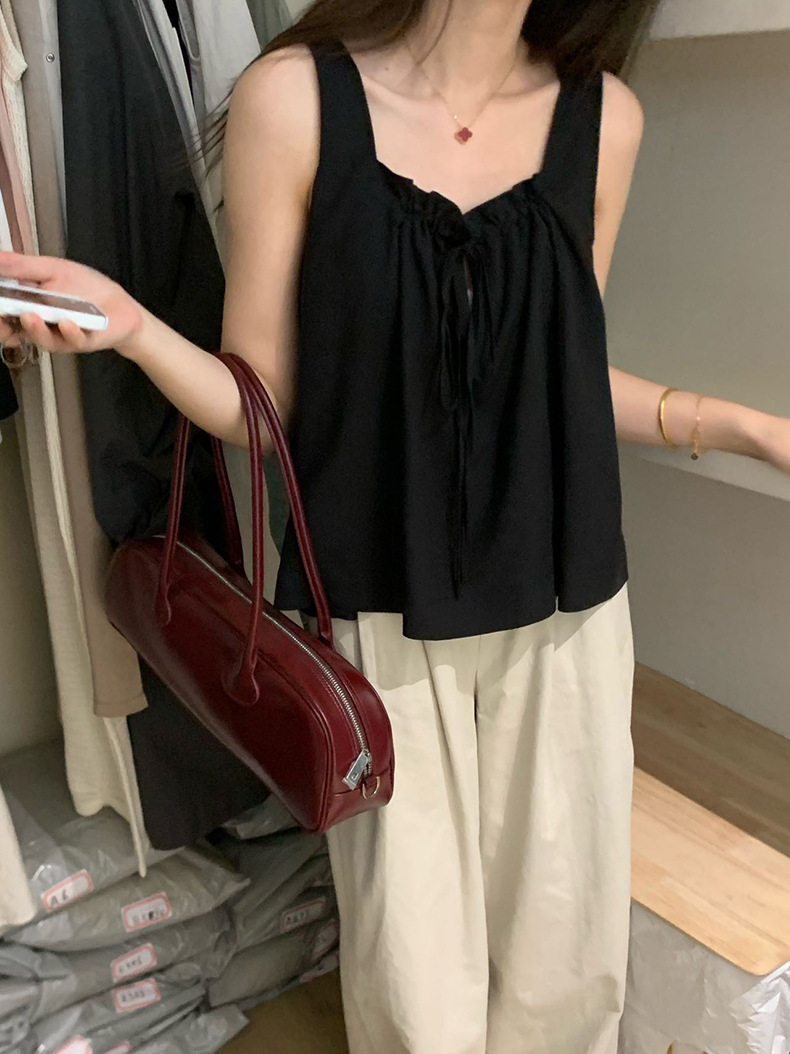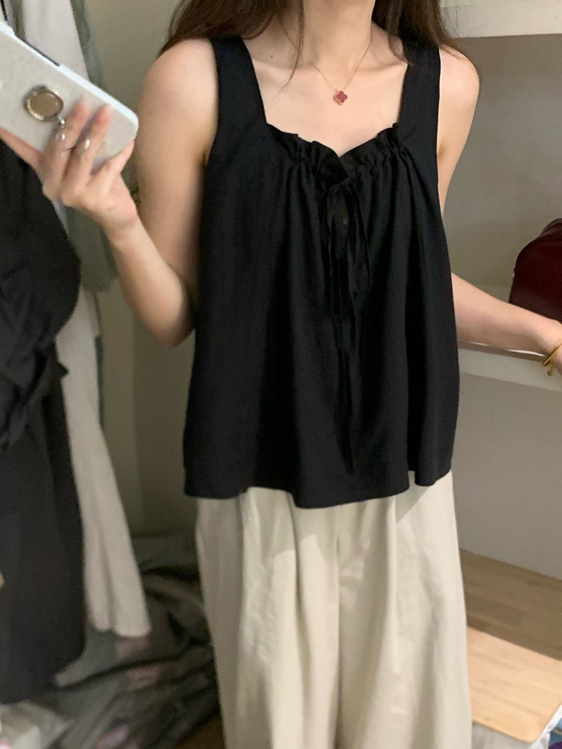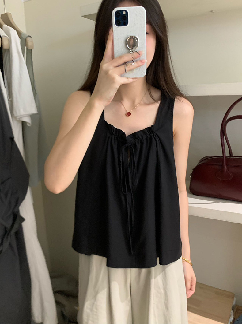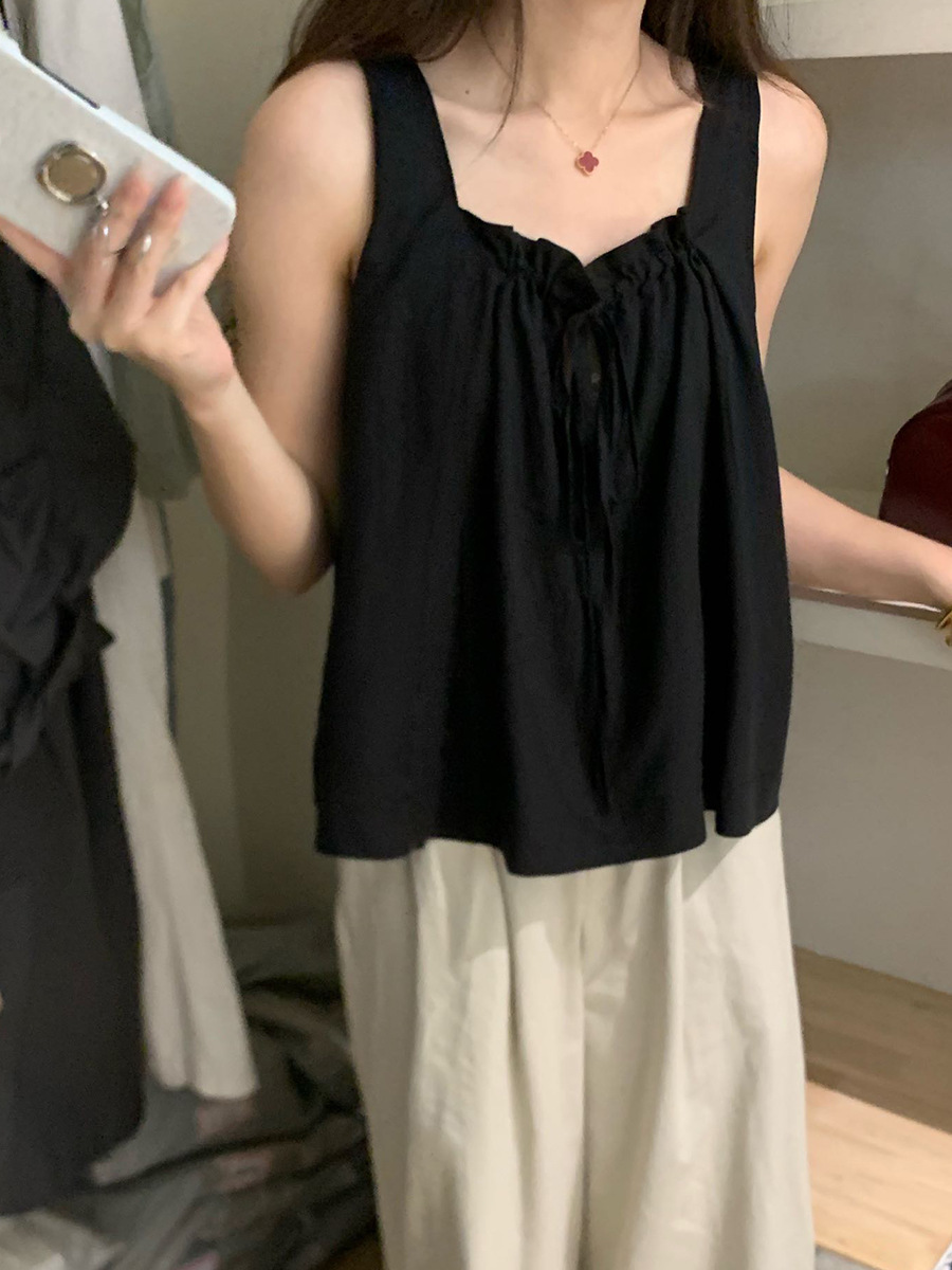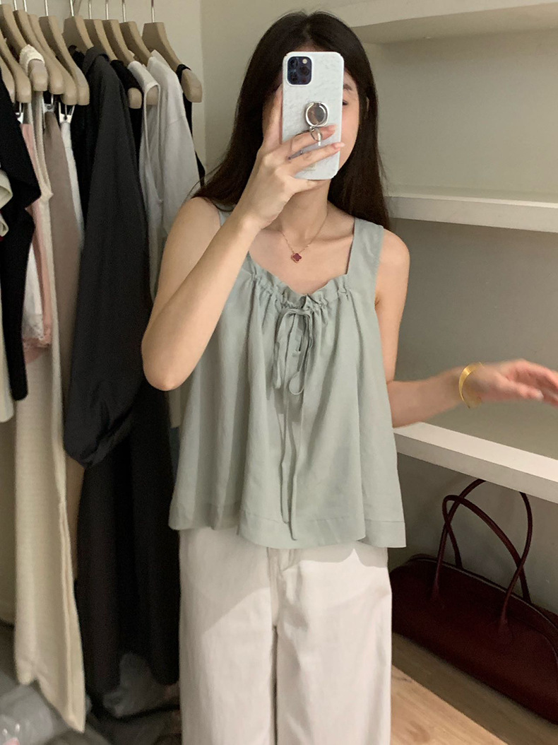 2025夏季新款甜美减龄天丝小衫抽绳无袖上衣女A4291