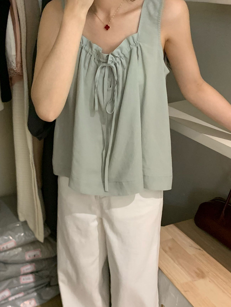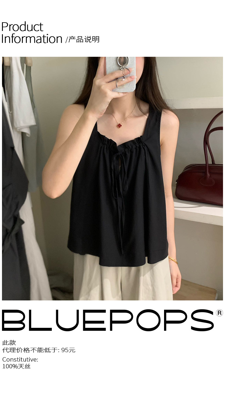 2025夏季新款甜美减龄天丝小衫抽绳无袖上衣女A4291 投诉