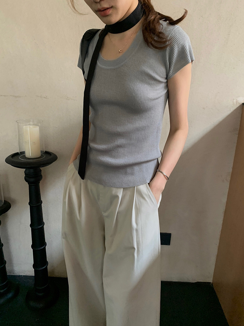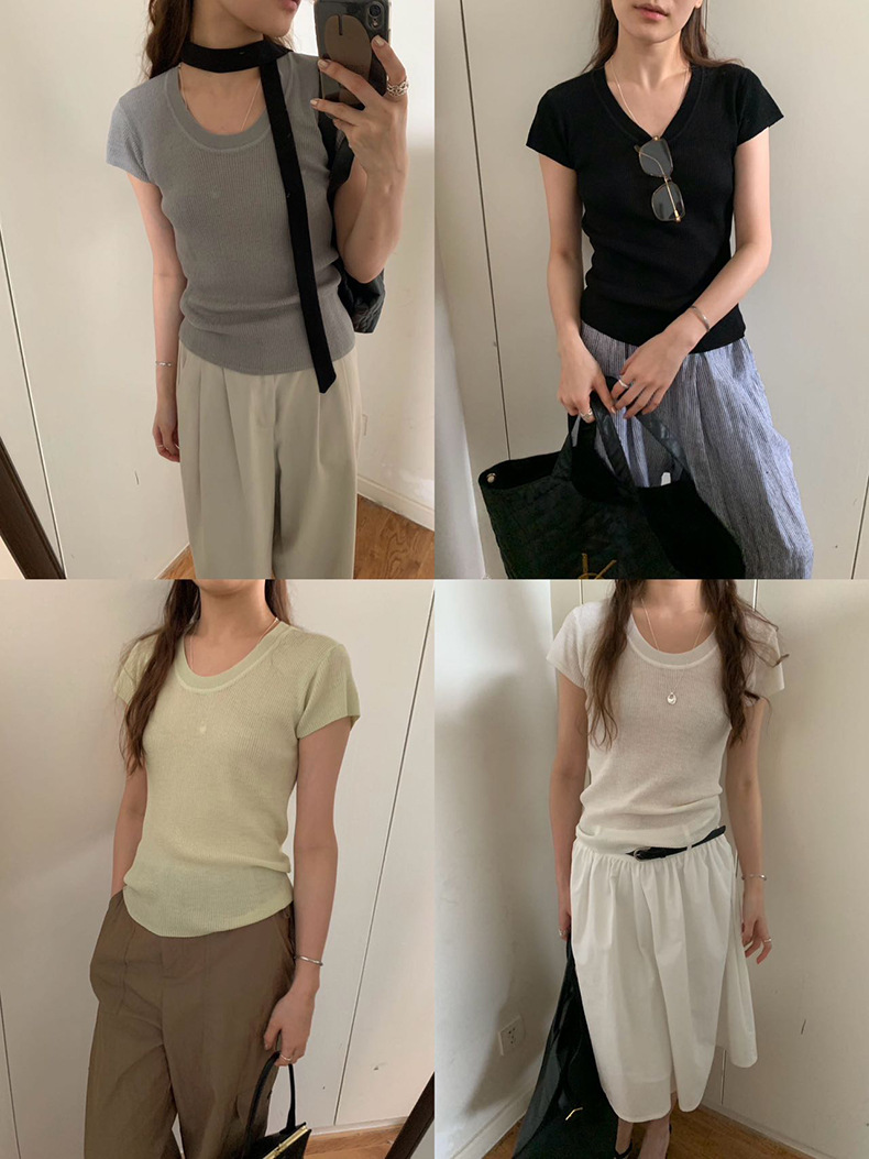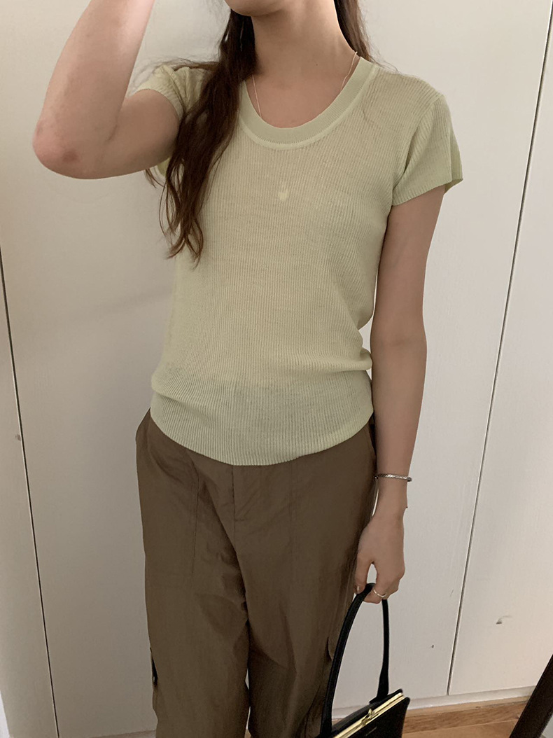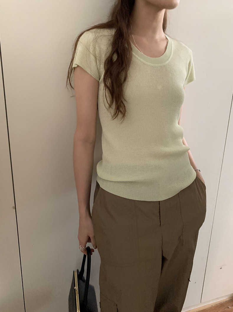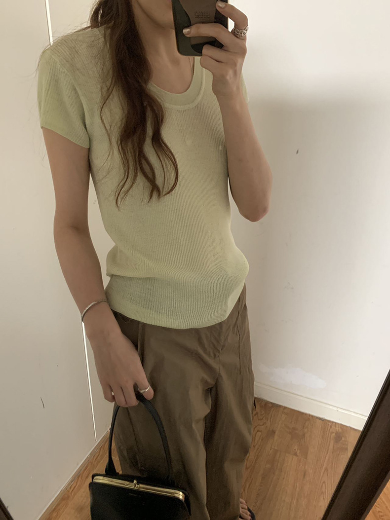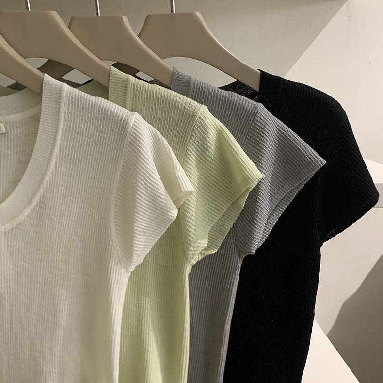 2025夏季新款圆领短袖针织衫修身纯色短袖上衣A4259