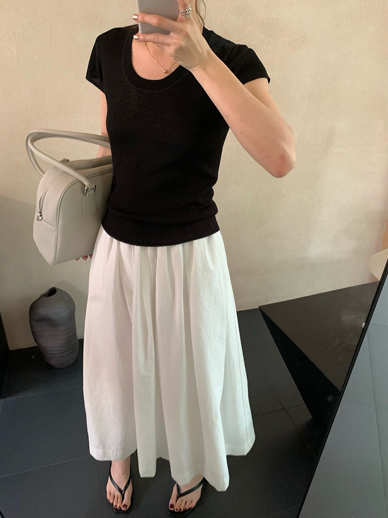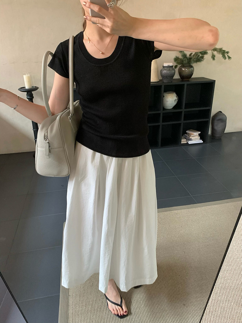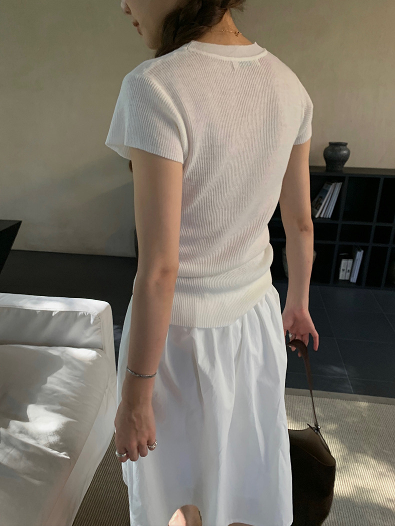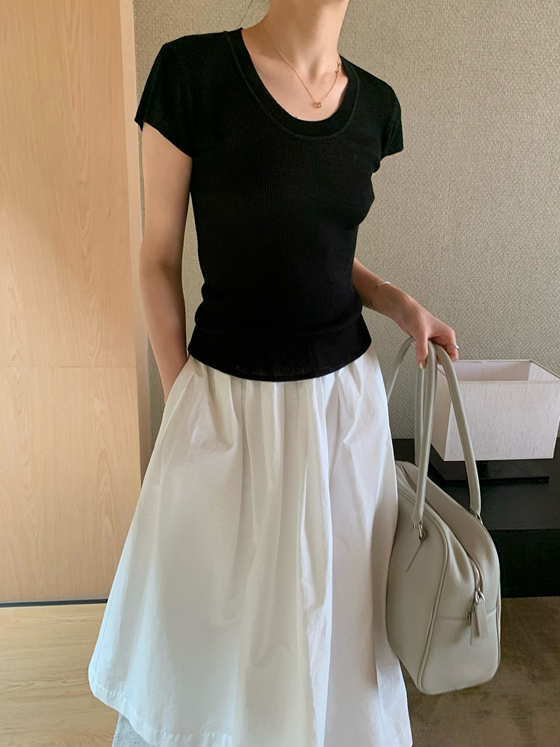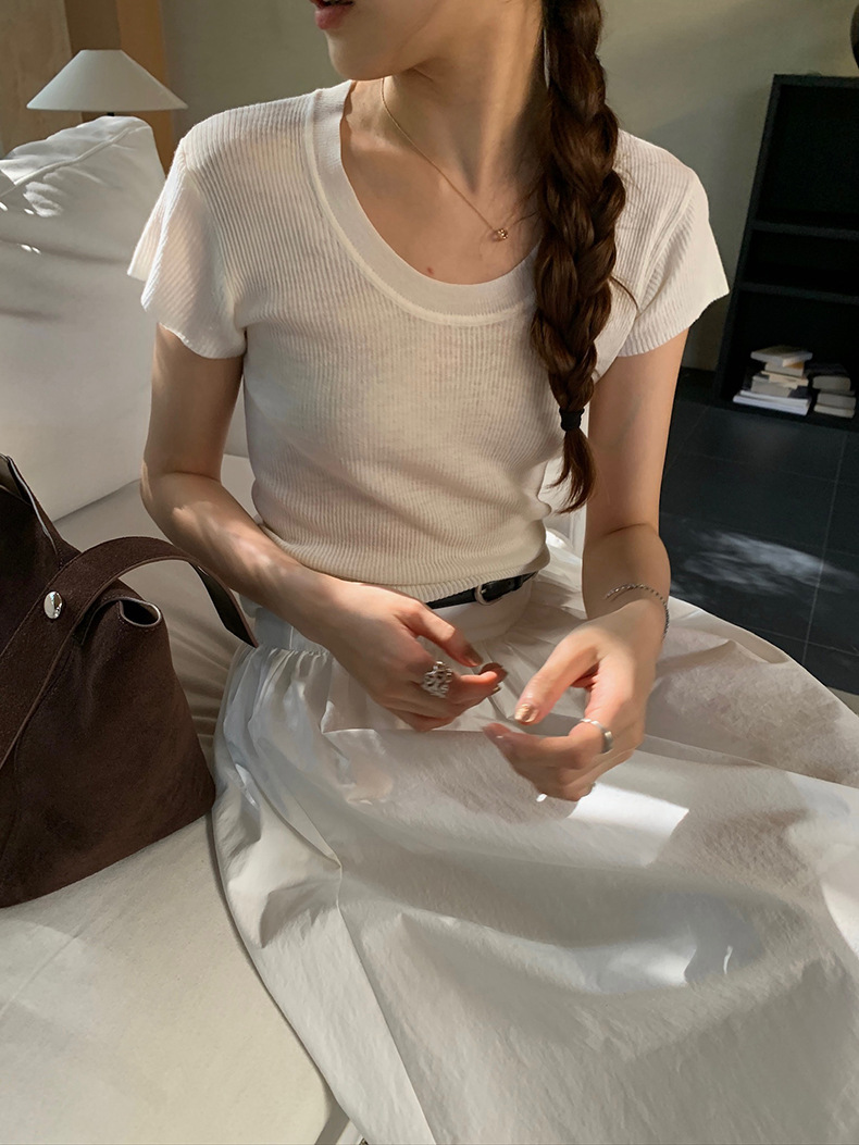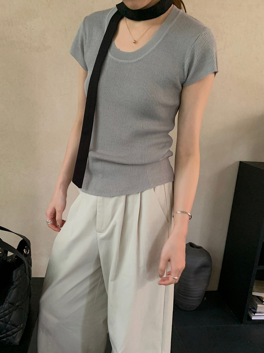 2025夏季新款圆领短袖针织衫修身纯色短袖上衣A4259