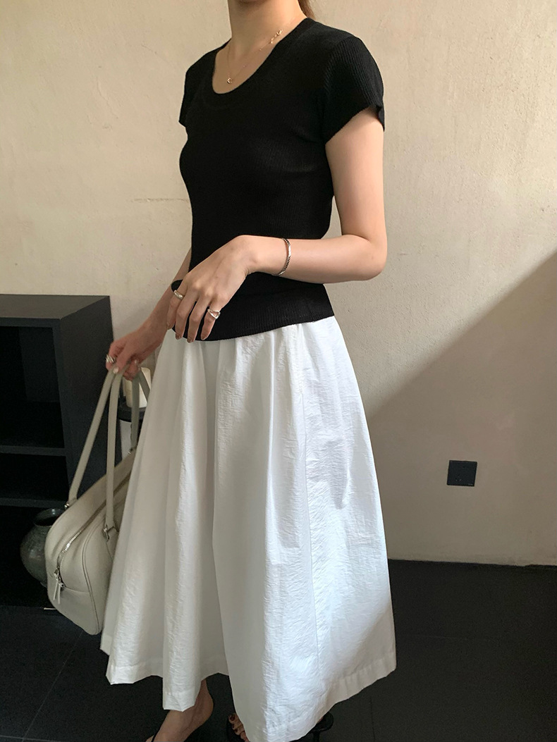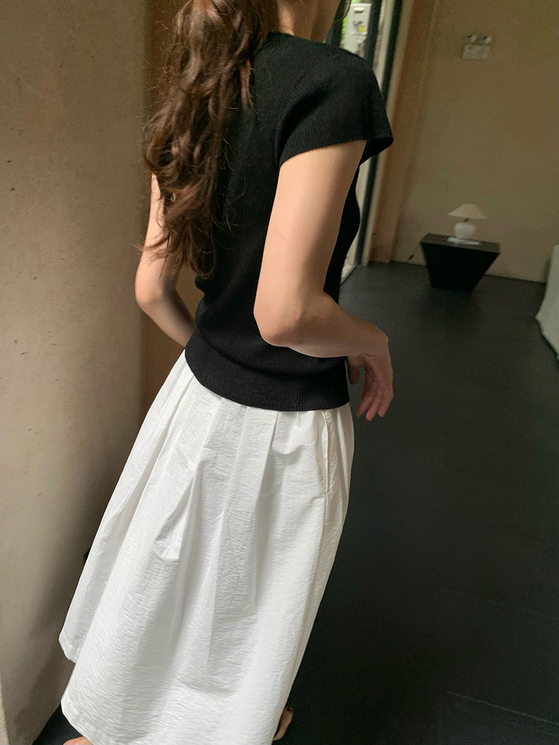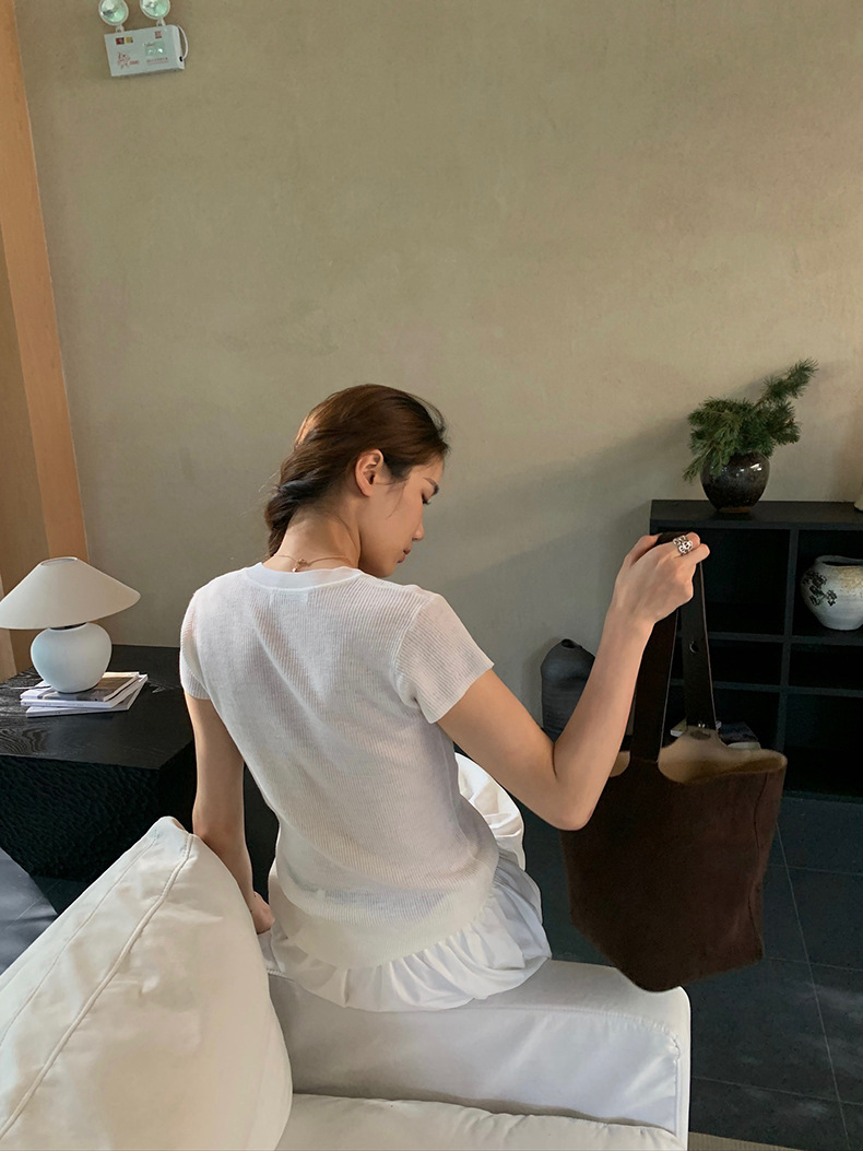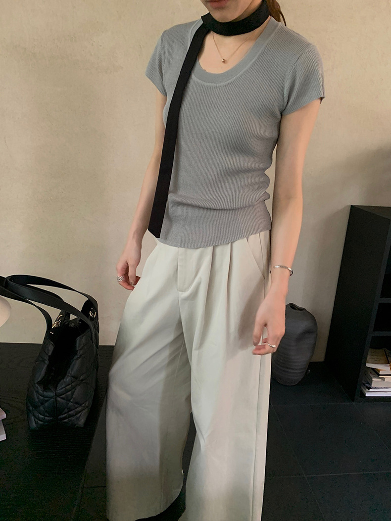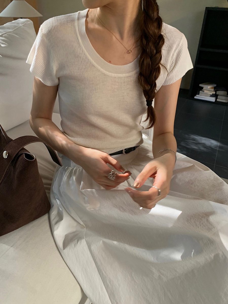 2025夏季新款圆领短袖针织衫修身纯色短袖上衣A4259
