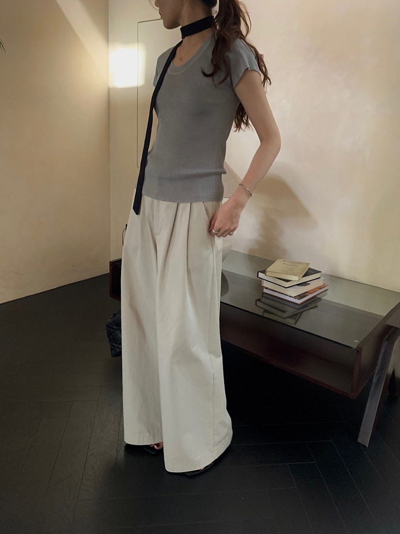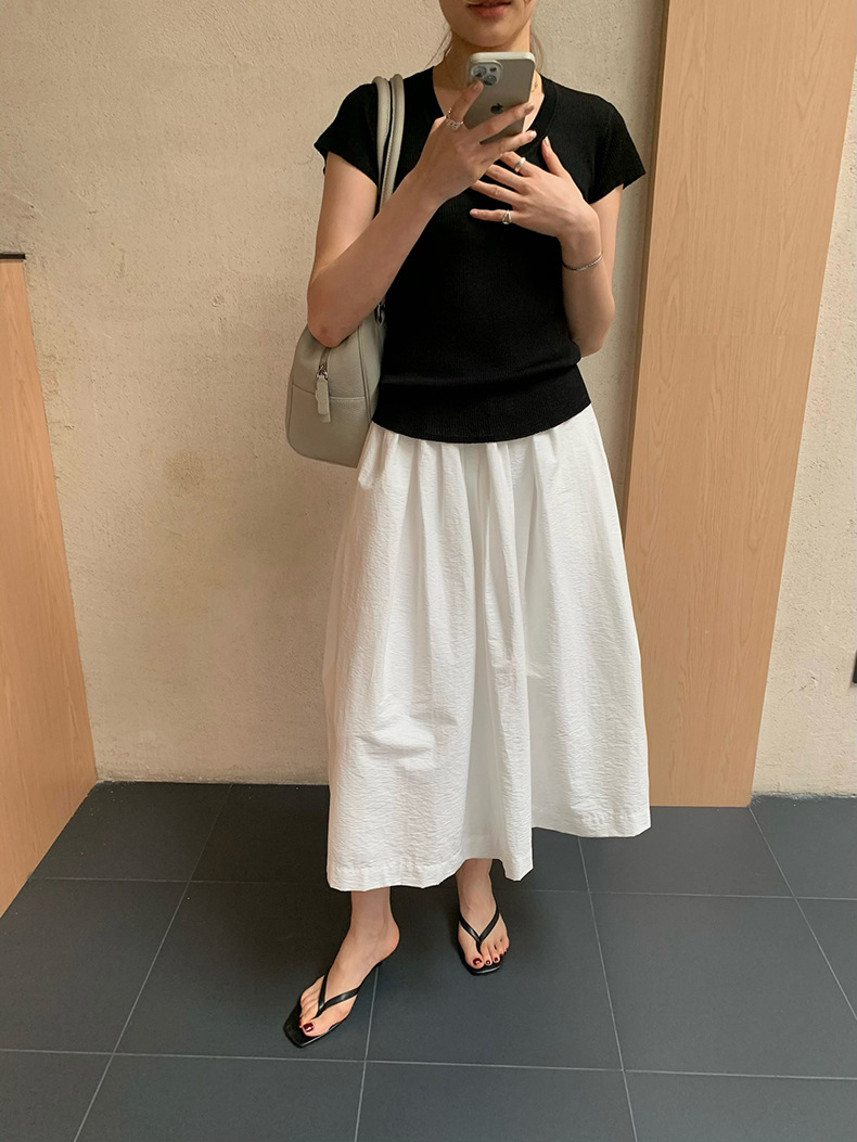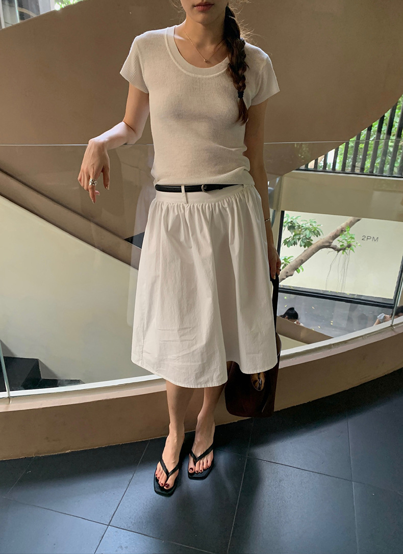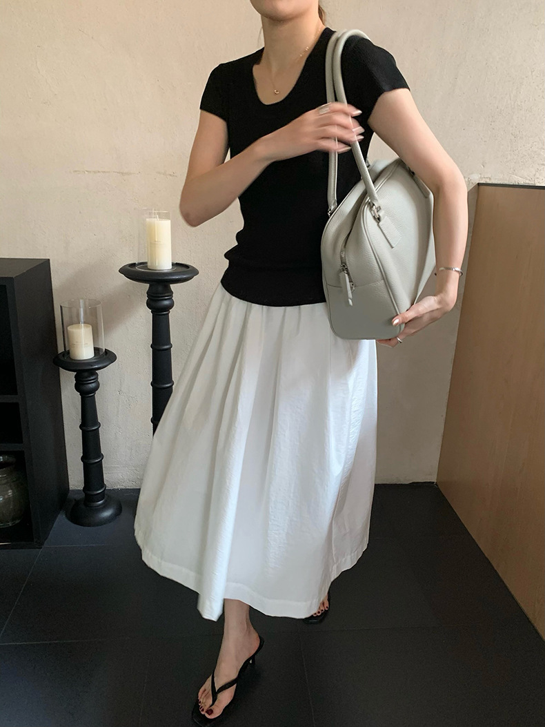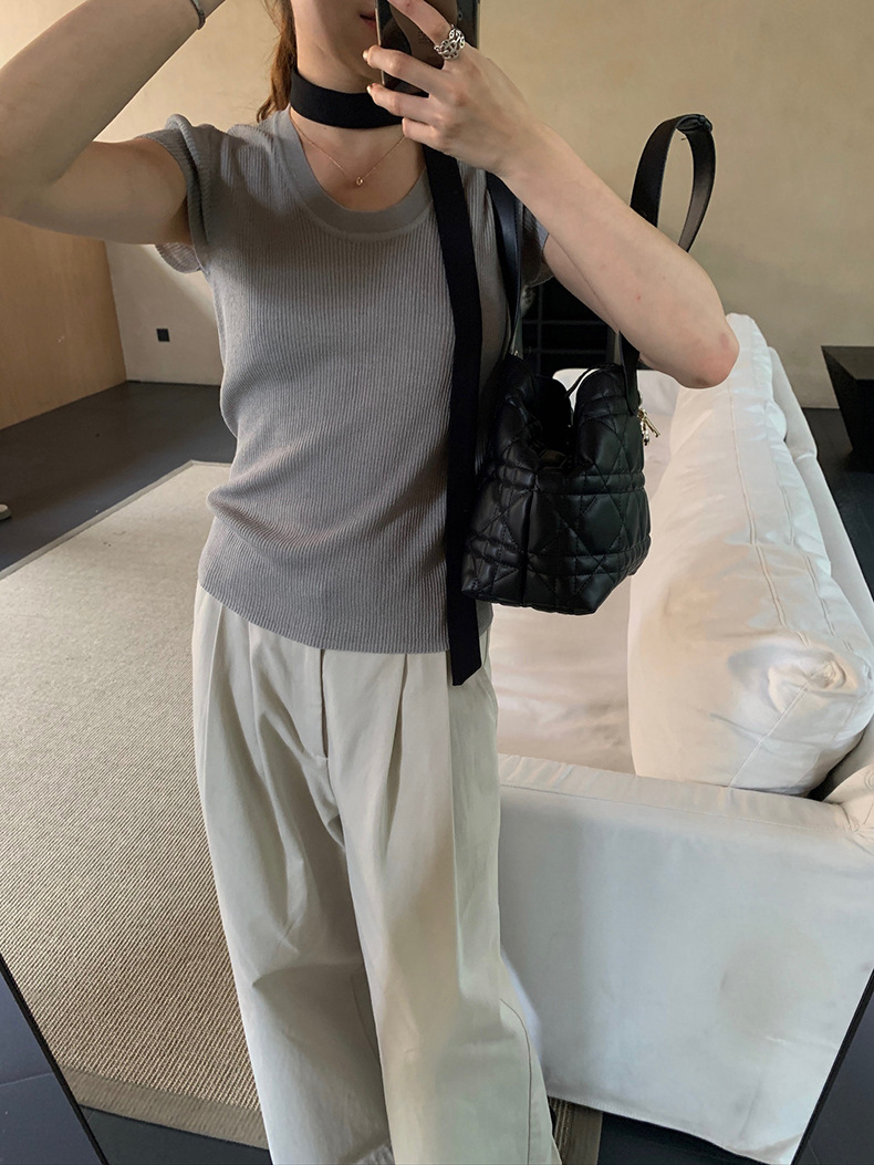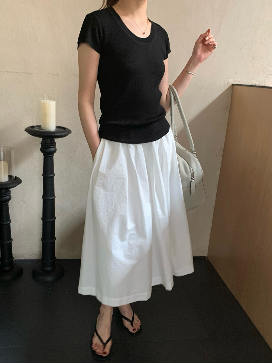 2025夏季新款圆领短袖针织衫修身纯色短袖上衣A4259