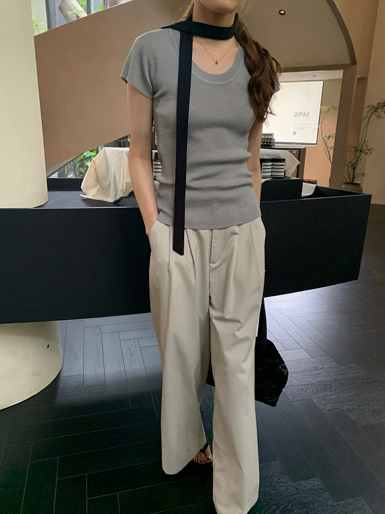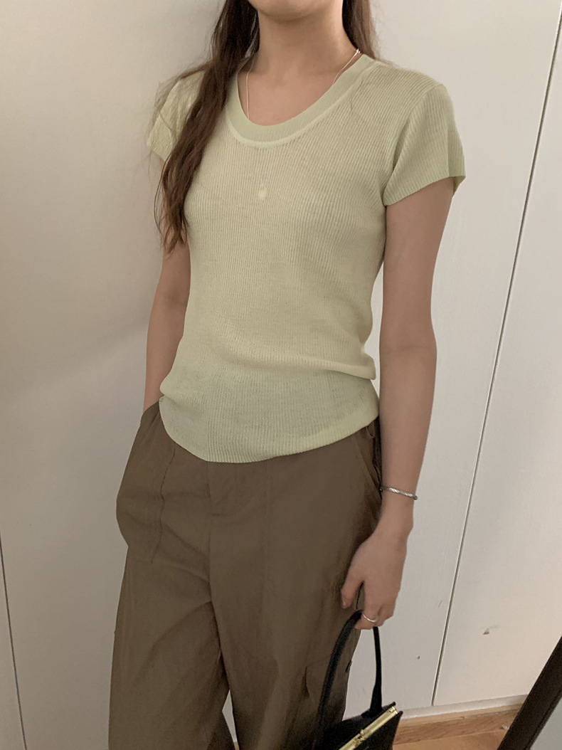 2025夏季新款圆领短袖针织衫修身纯色短袖上衣A4259 投诉