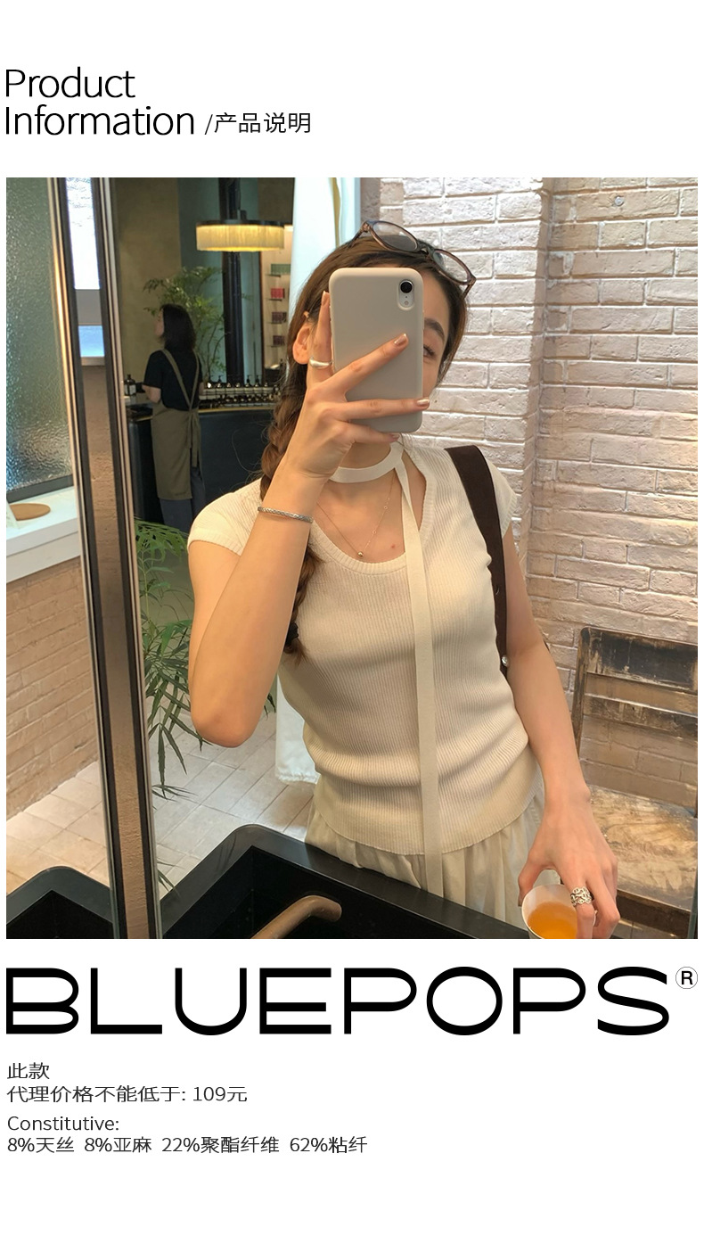 2025夏季新款天丝短袖针织衫飘带修身气质上衣A4258 投诉