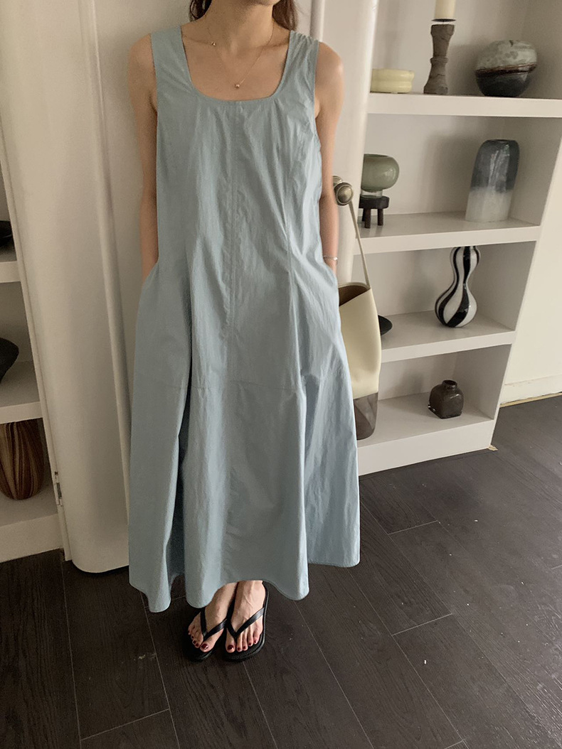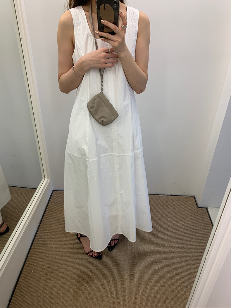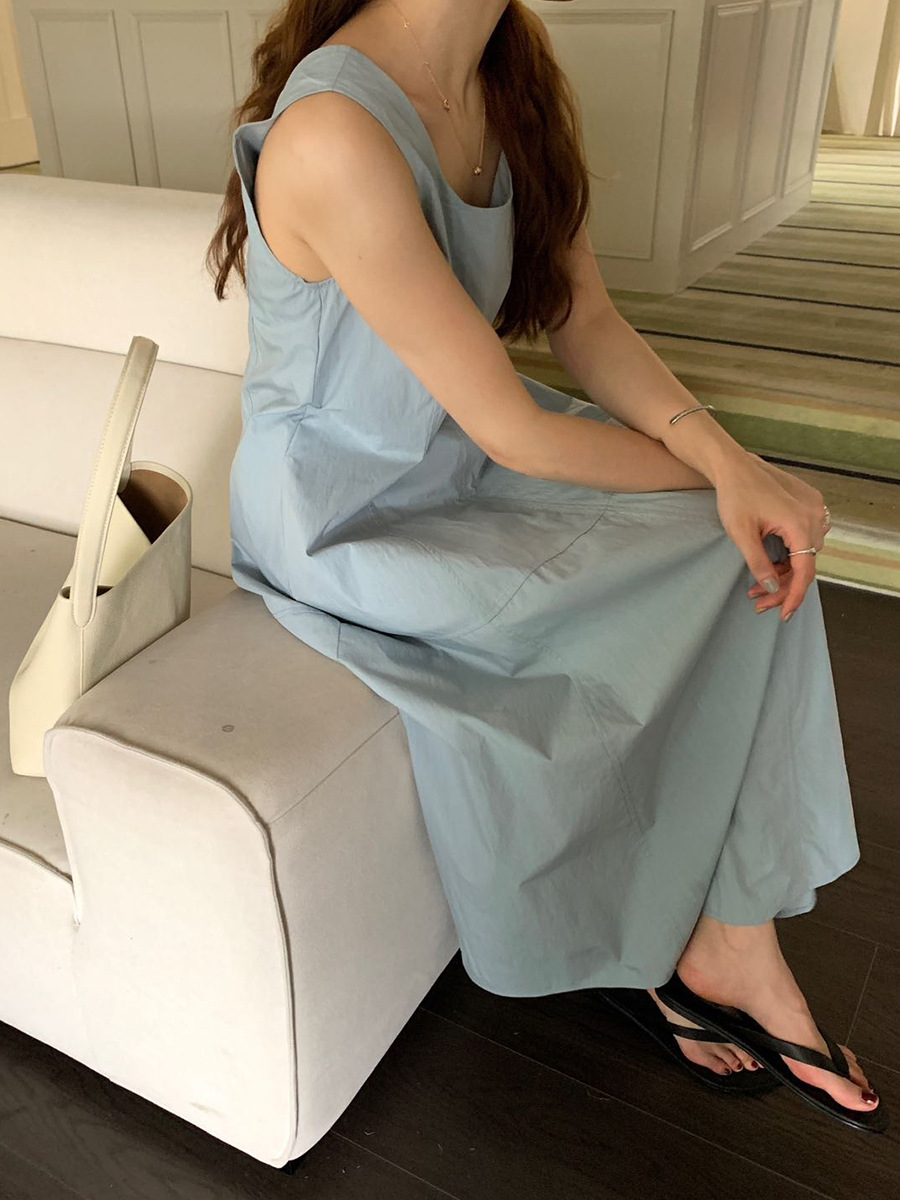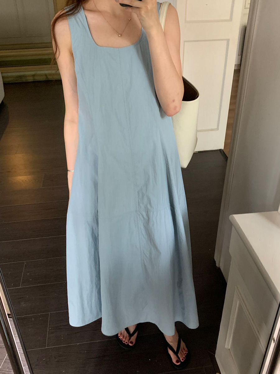 2025夏季新款法式无袖连衣裙U领大摆围显瘦长裙A4244