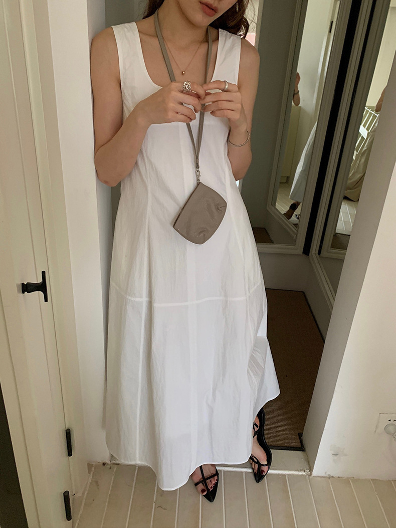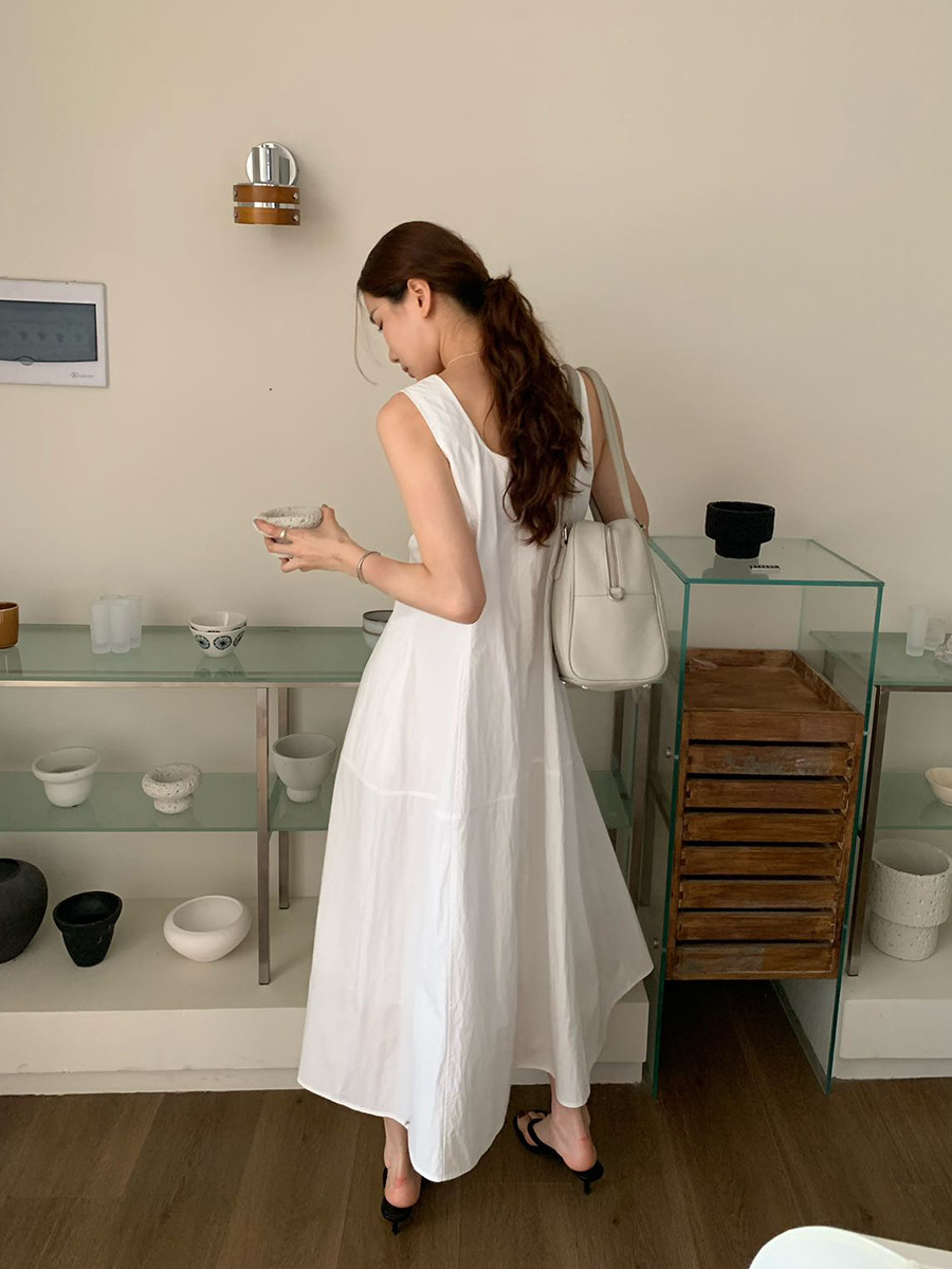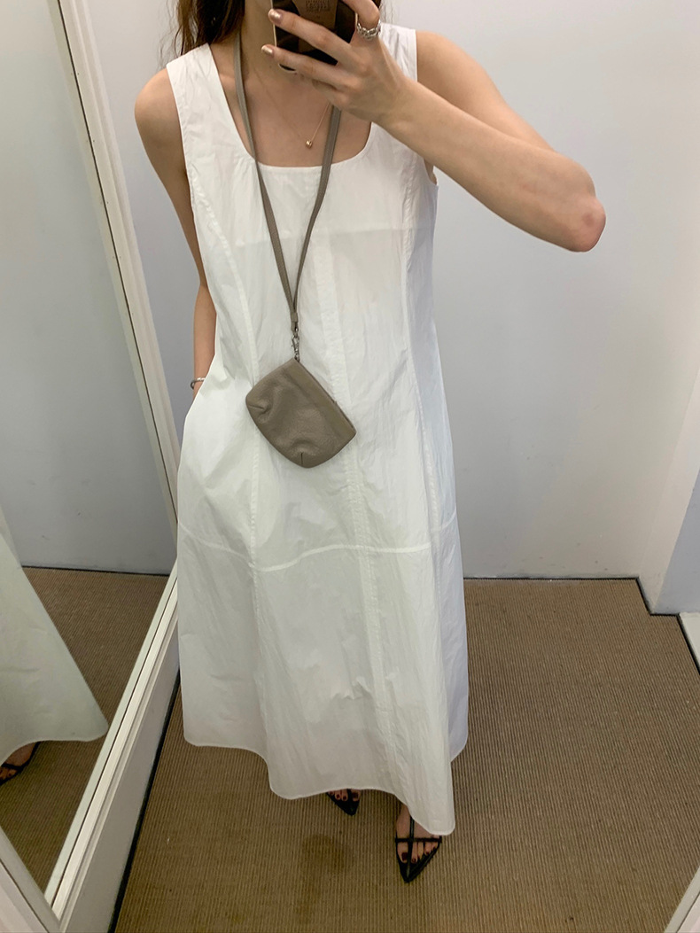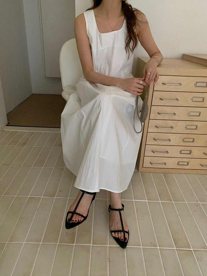 2025夏季新款法式无袖连衣裙U领大摆围显瘦长裙A4244