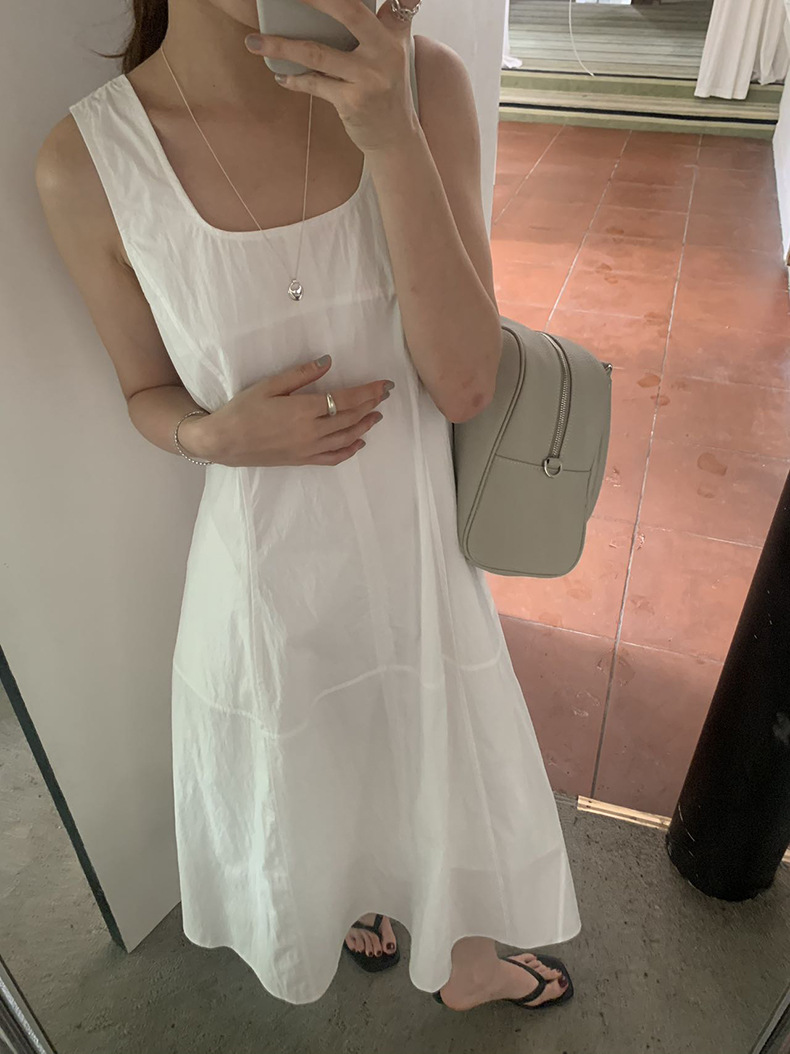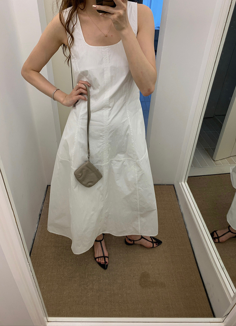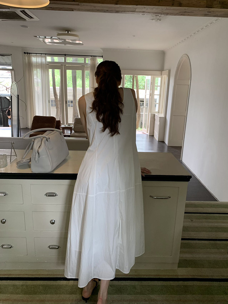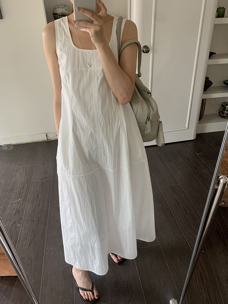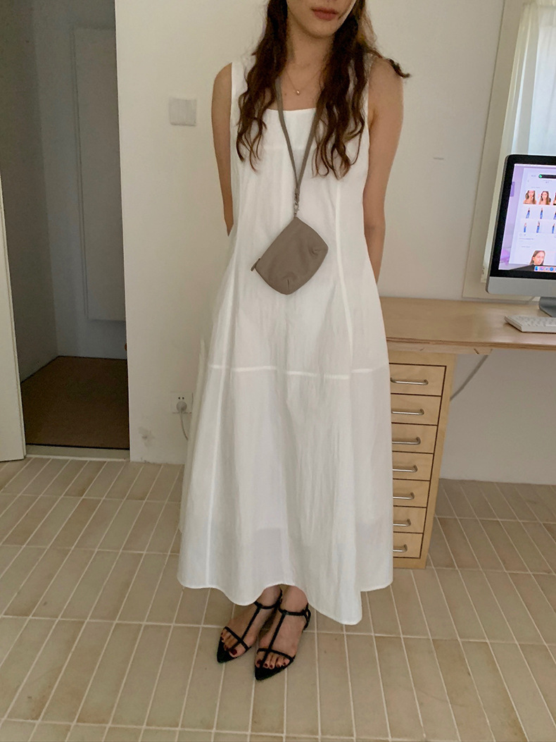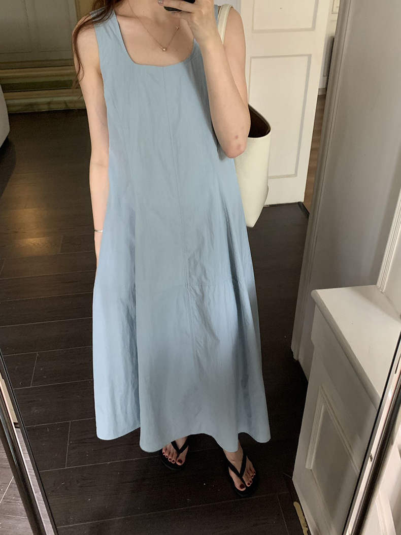 2025夏季新款法式无袖连衣裙U领大摆围显瘦长裙A4244 投诉
