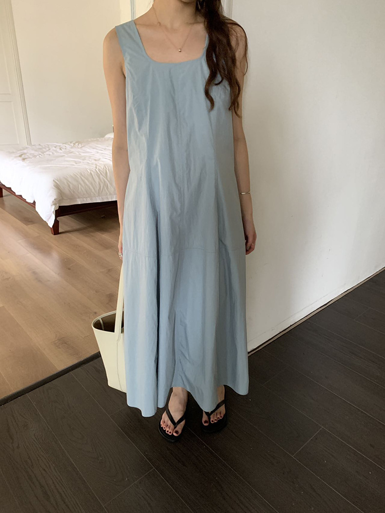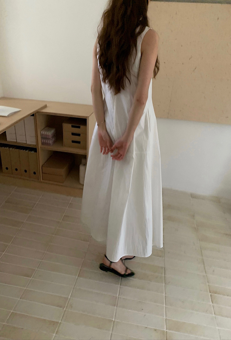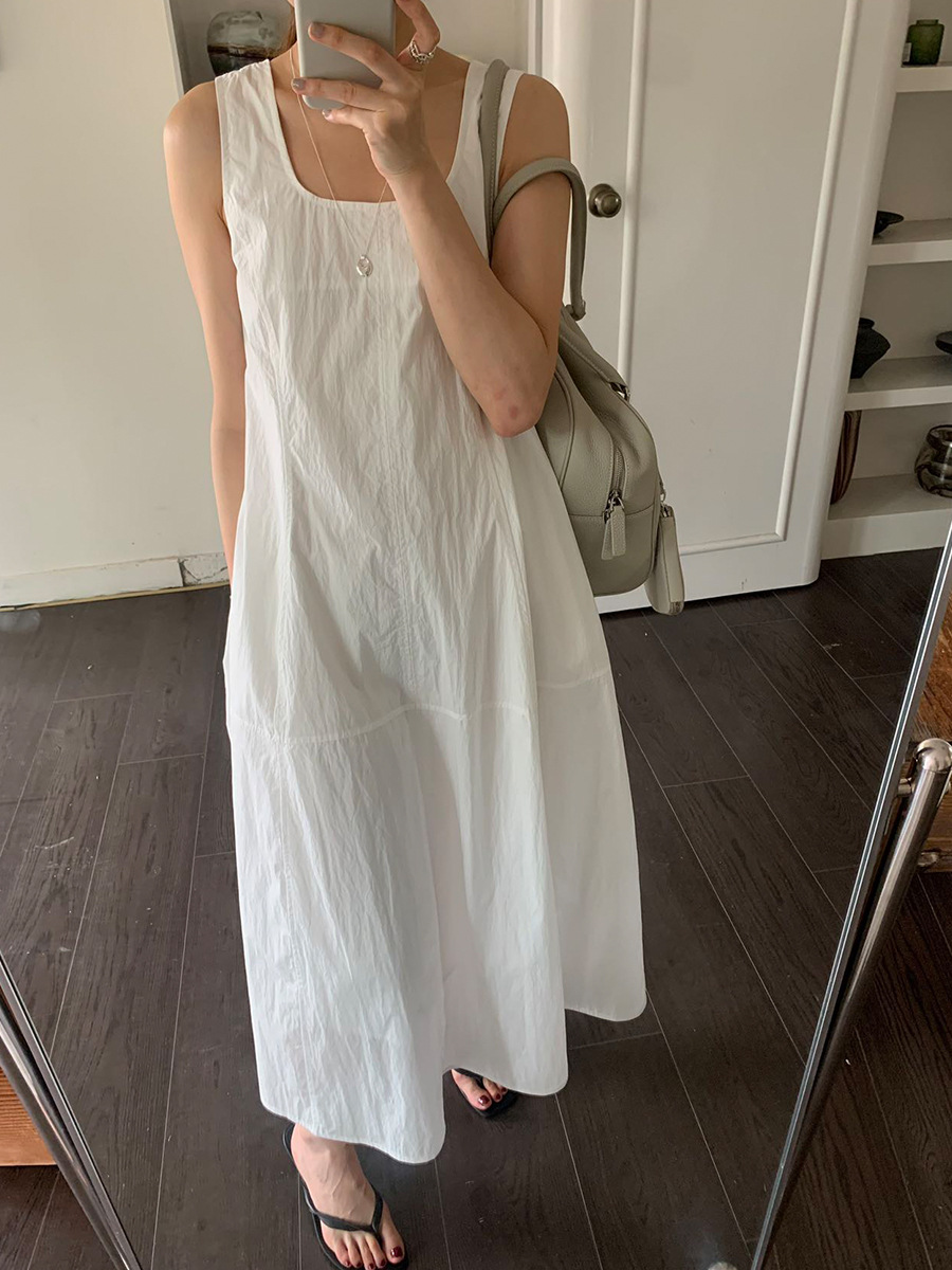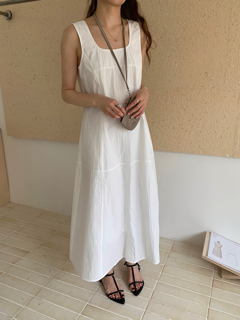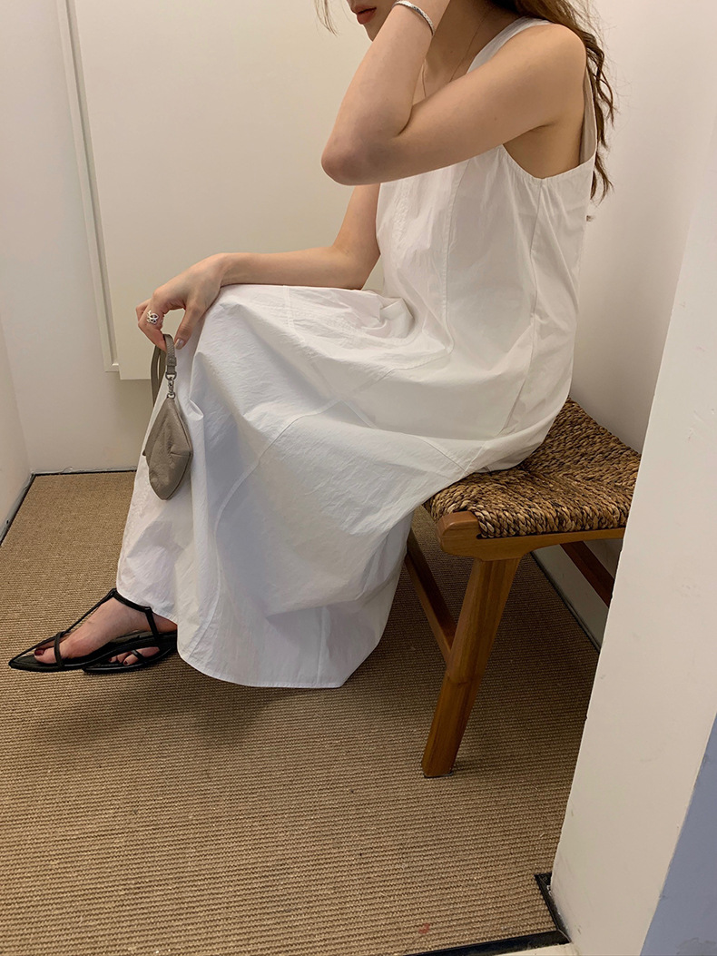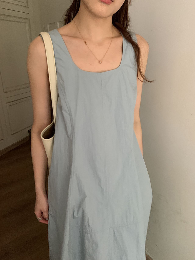2025夏季新款法式无袖连衣裙U领大摆围显瘦长裙A4244 投诉