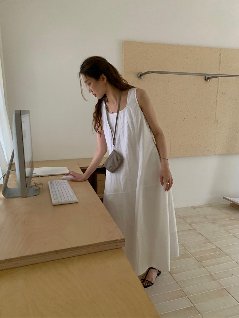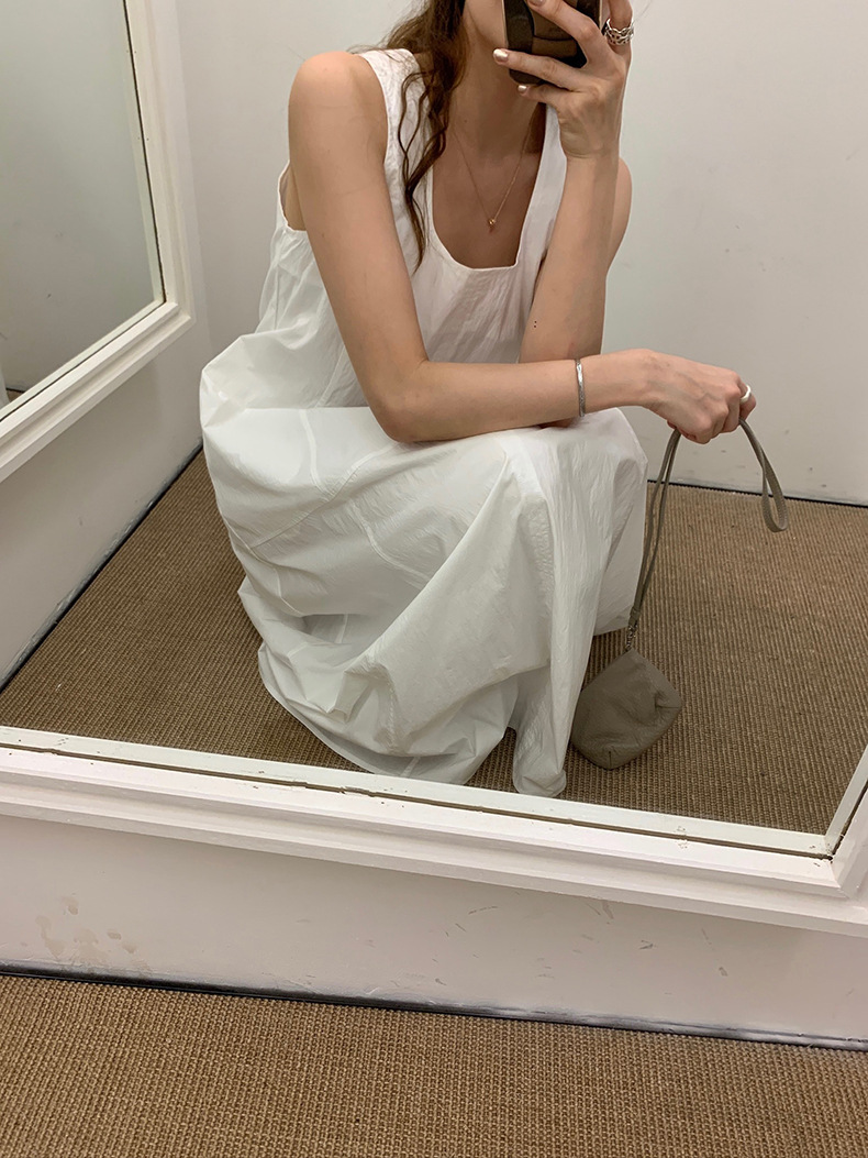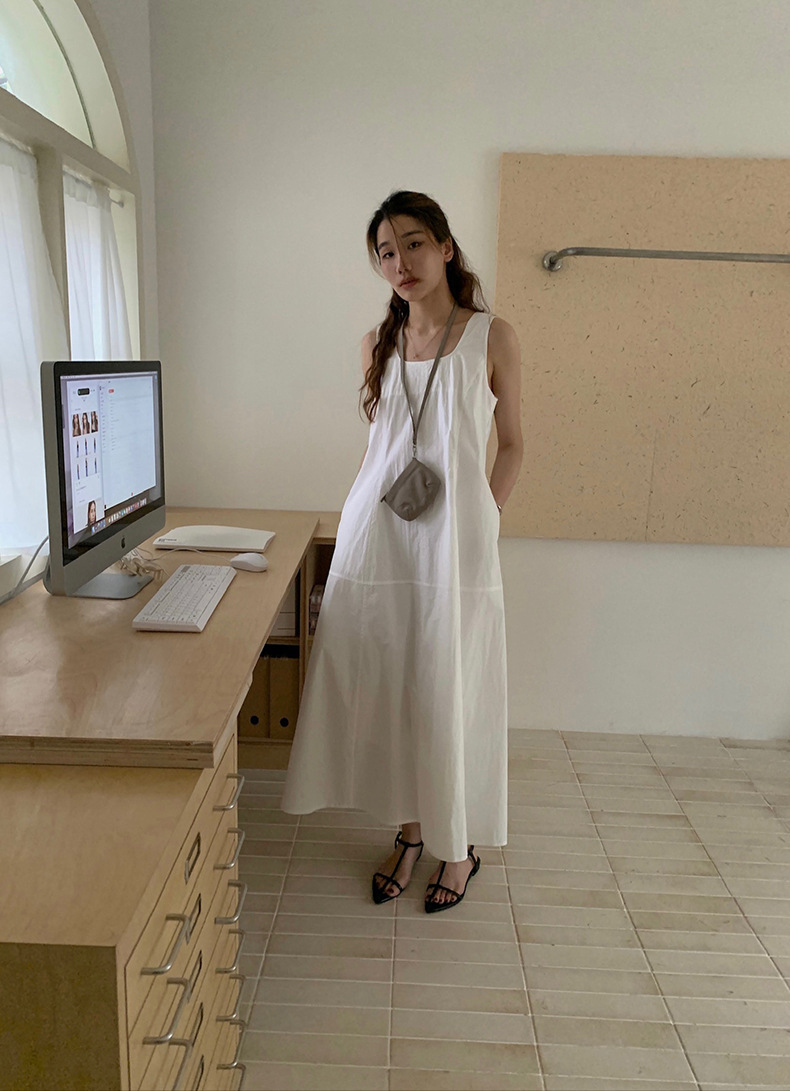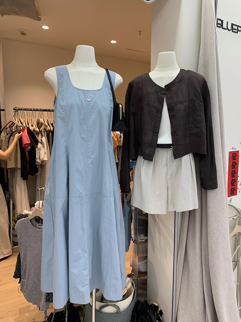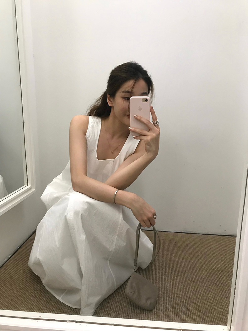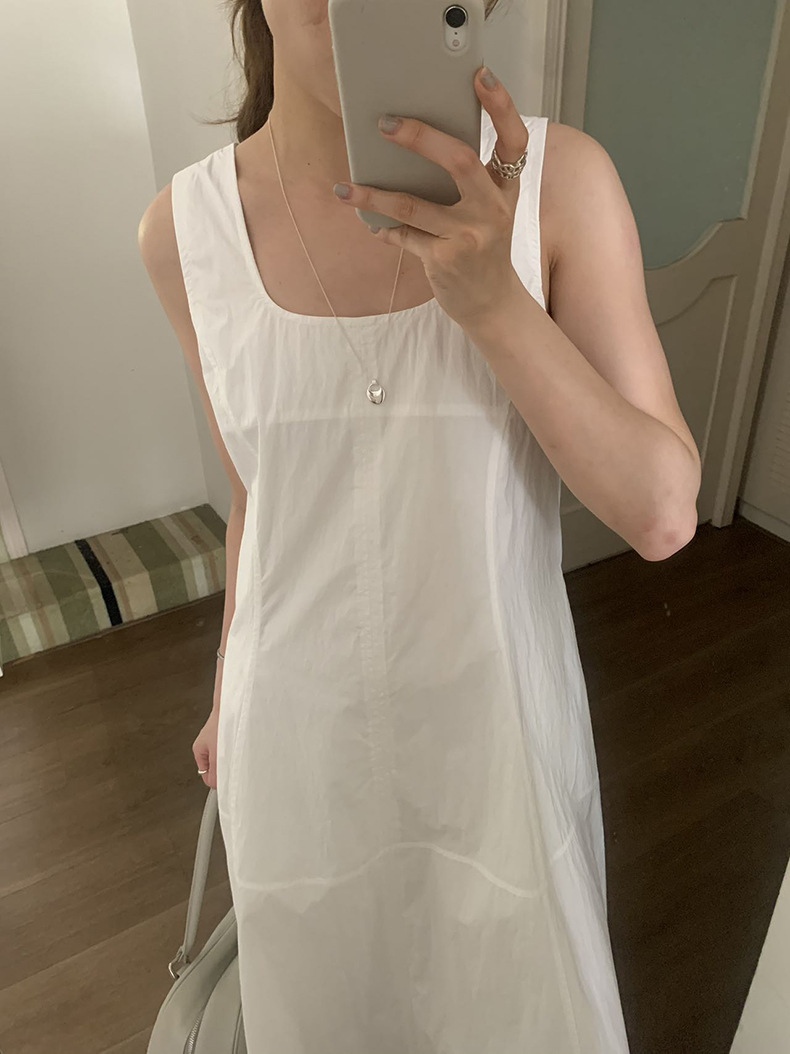 2025夏季新款法式无袖连衣裙U领大摆围显瘦长裙A4244 投诉