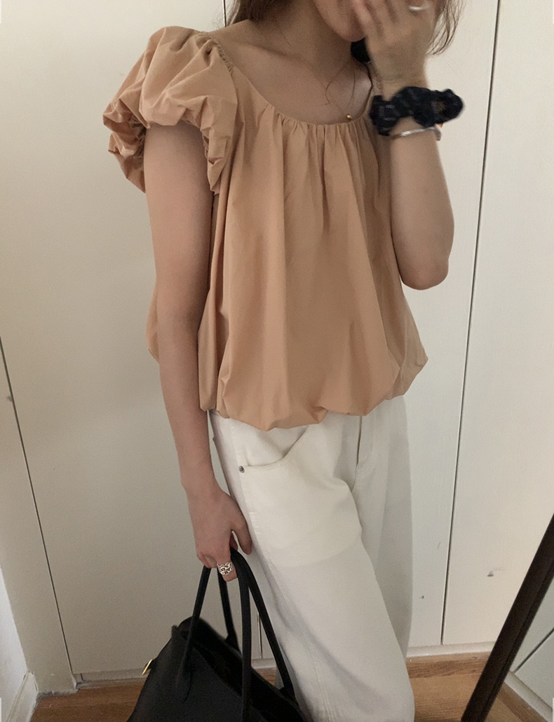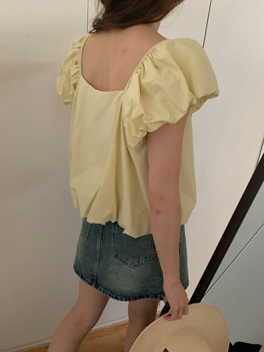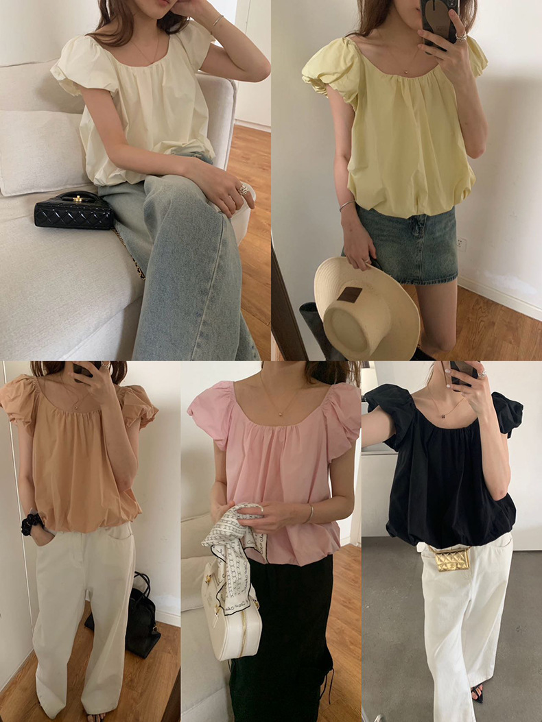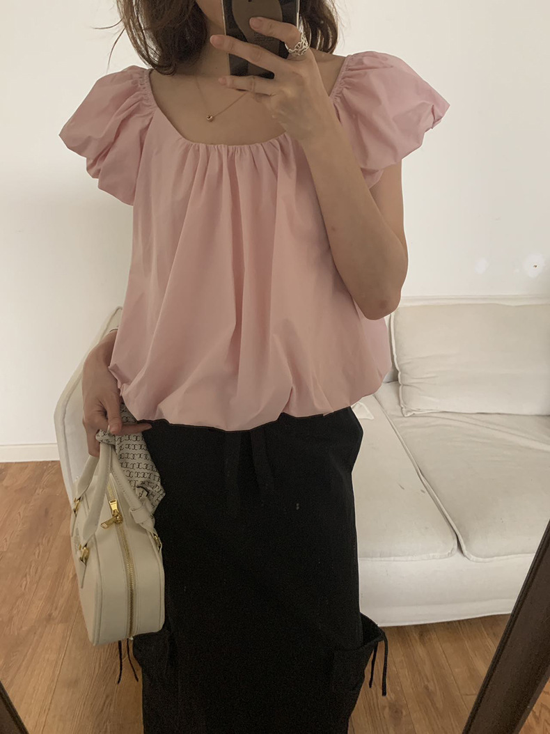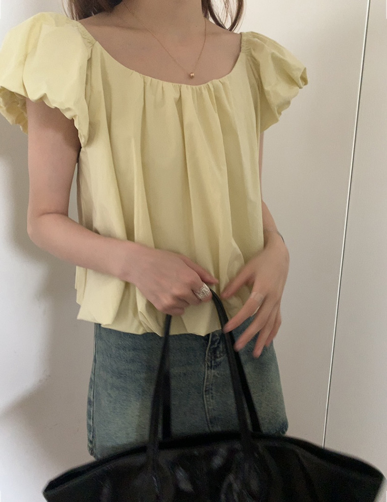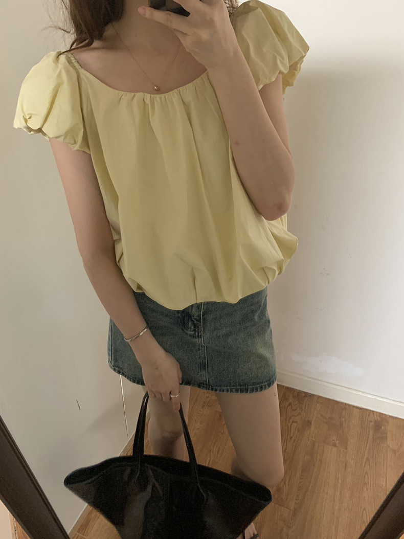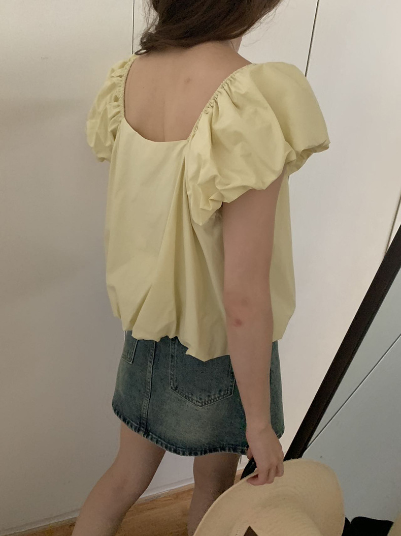 2025夏季新款糖果色泡泡袖小衫宽松短款上衣女W0574