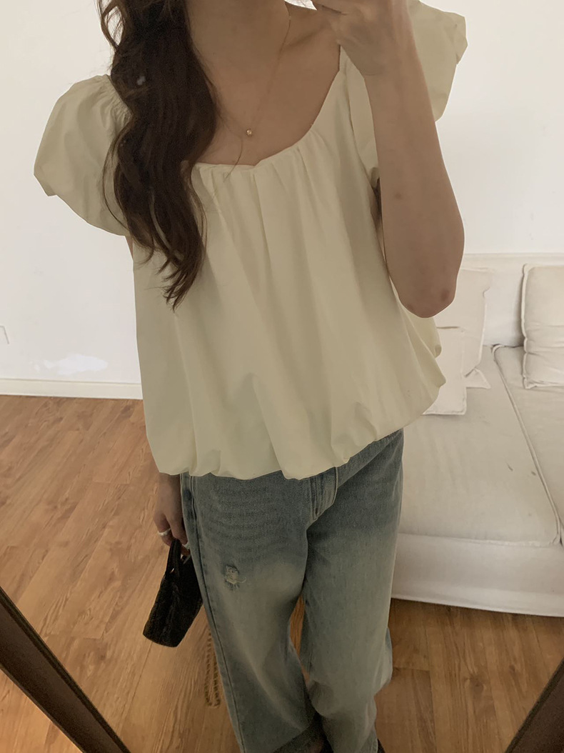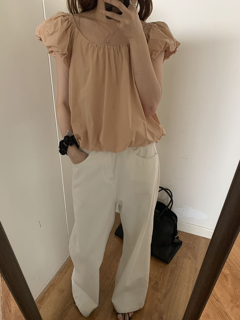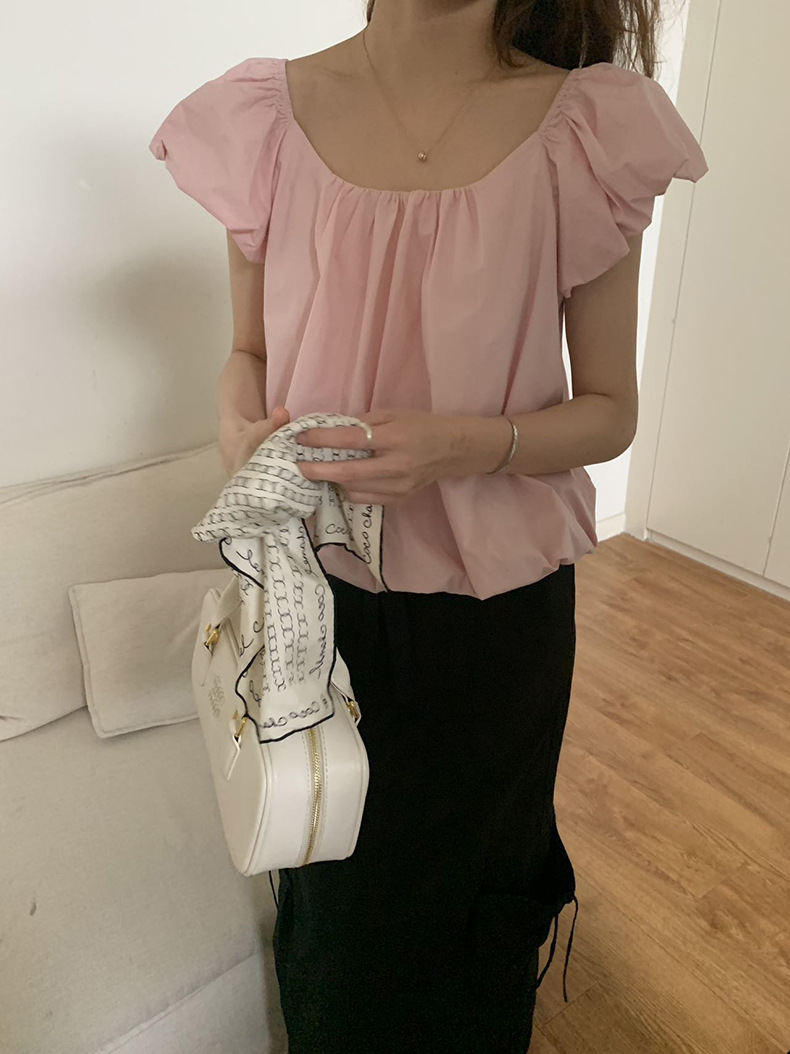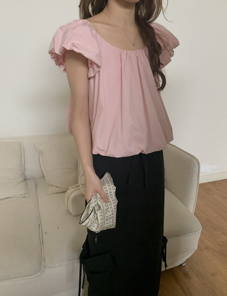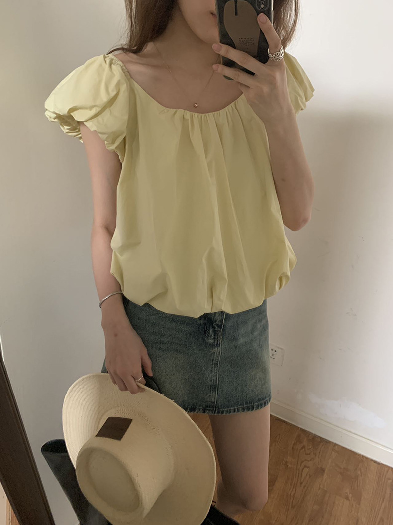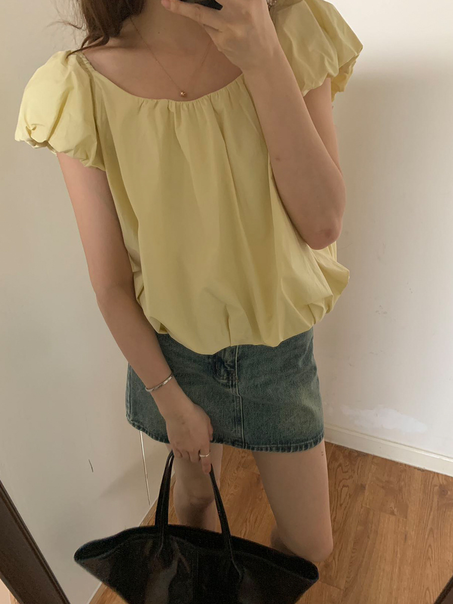 2025夏季新款糖果色泡泡袖小衫宽松短款上衣女W0574