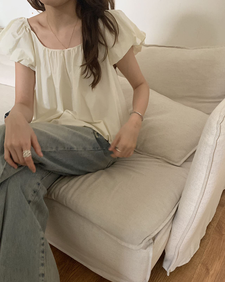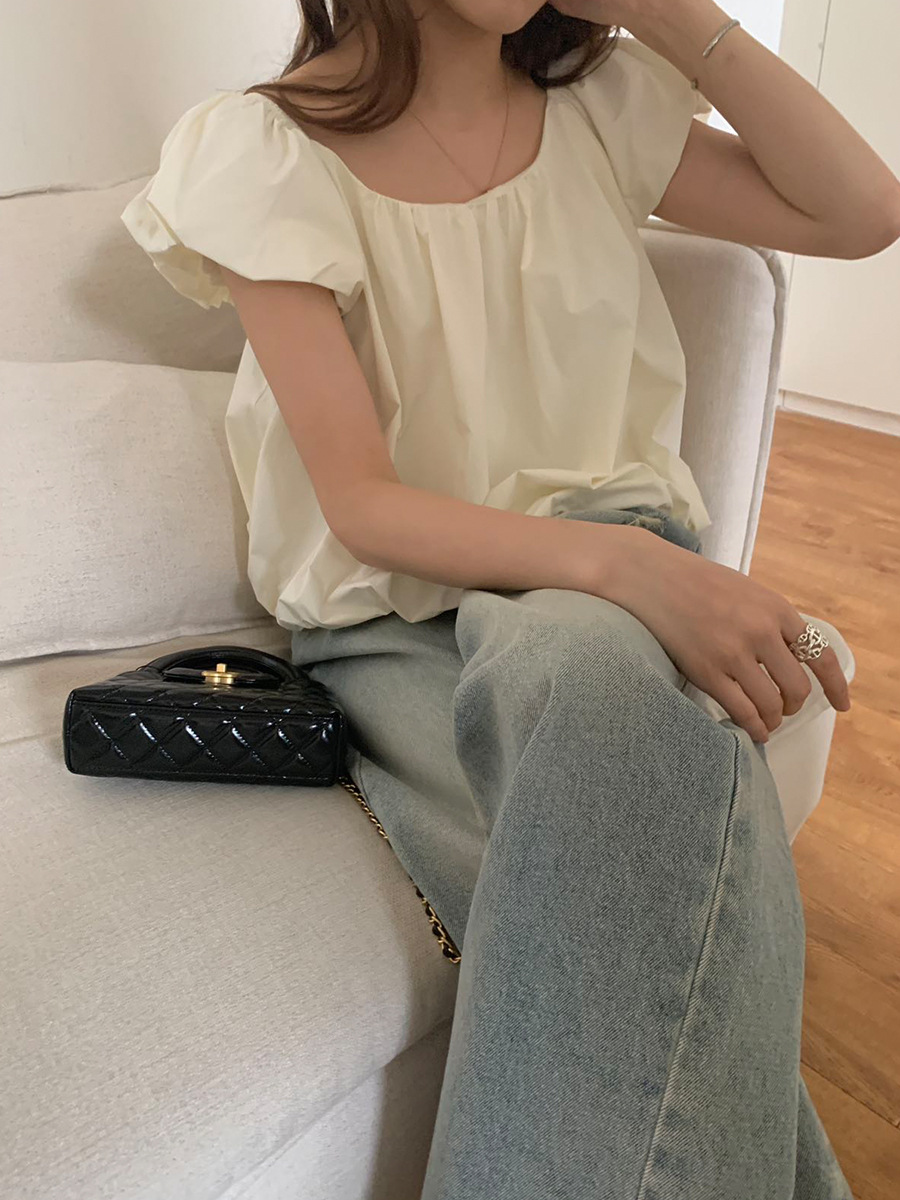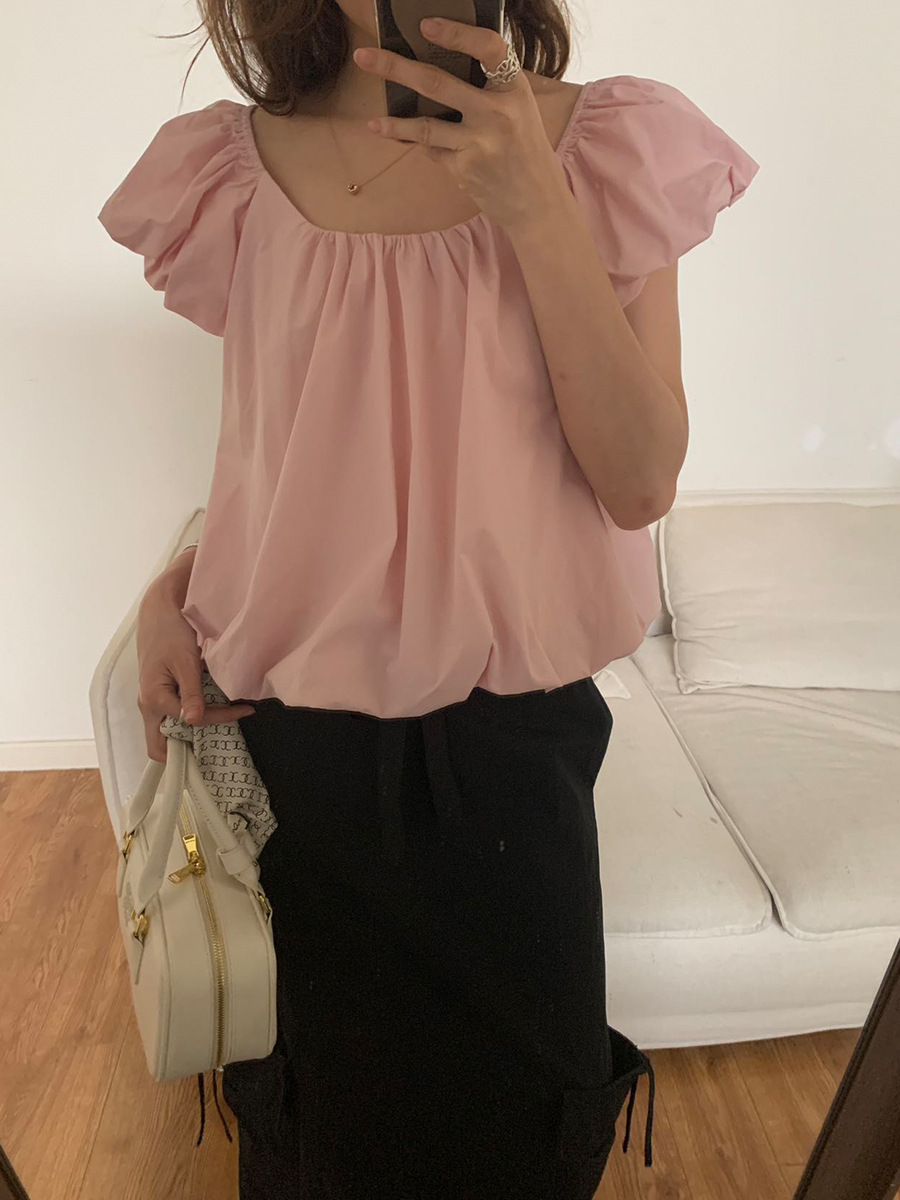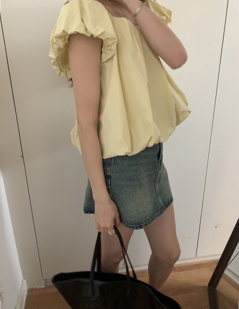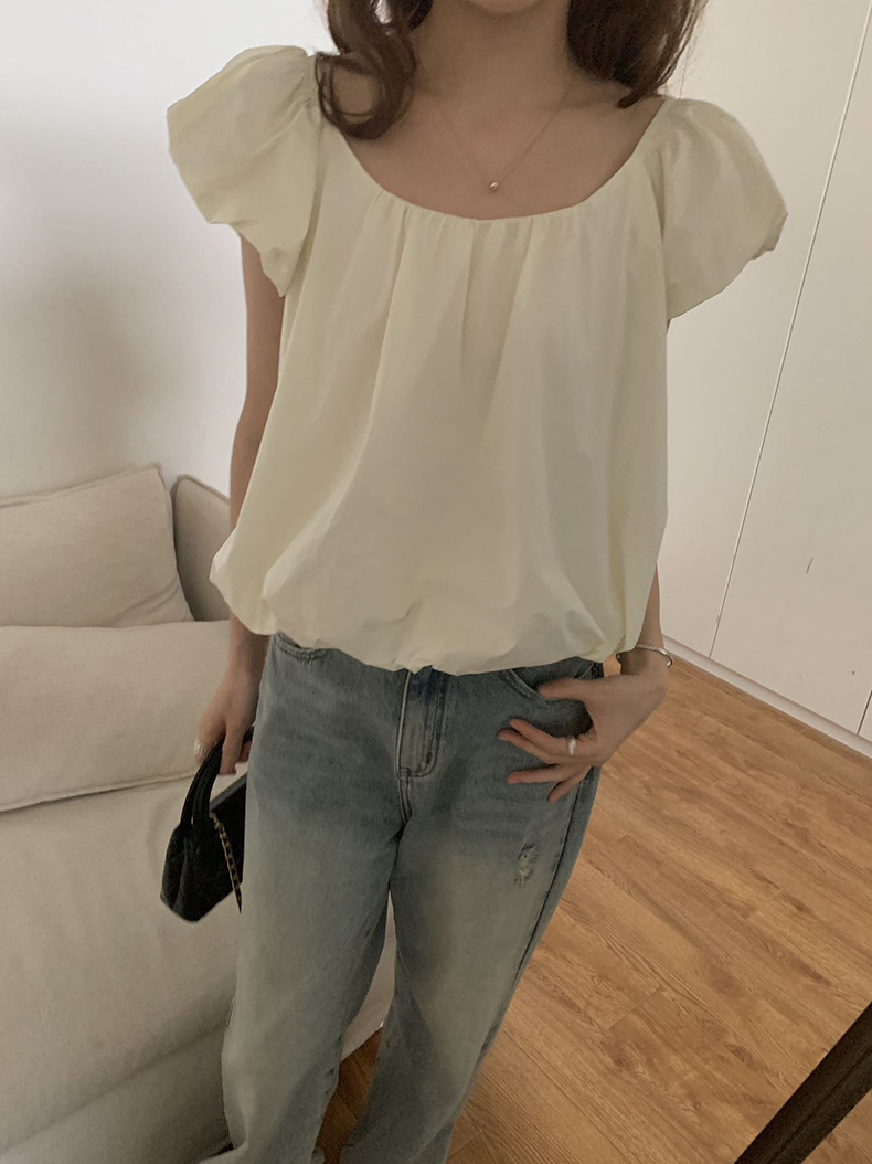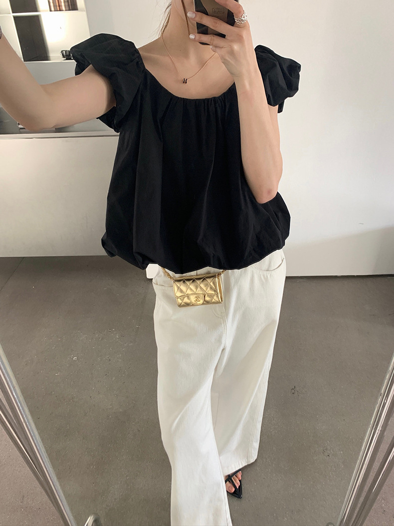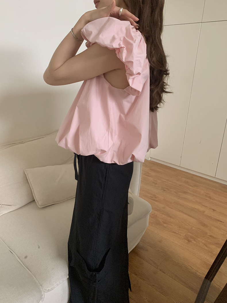 2025夏季新款糖果色泡泡袖小衫宽松短款上衣女W0574