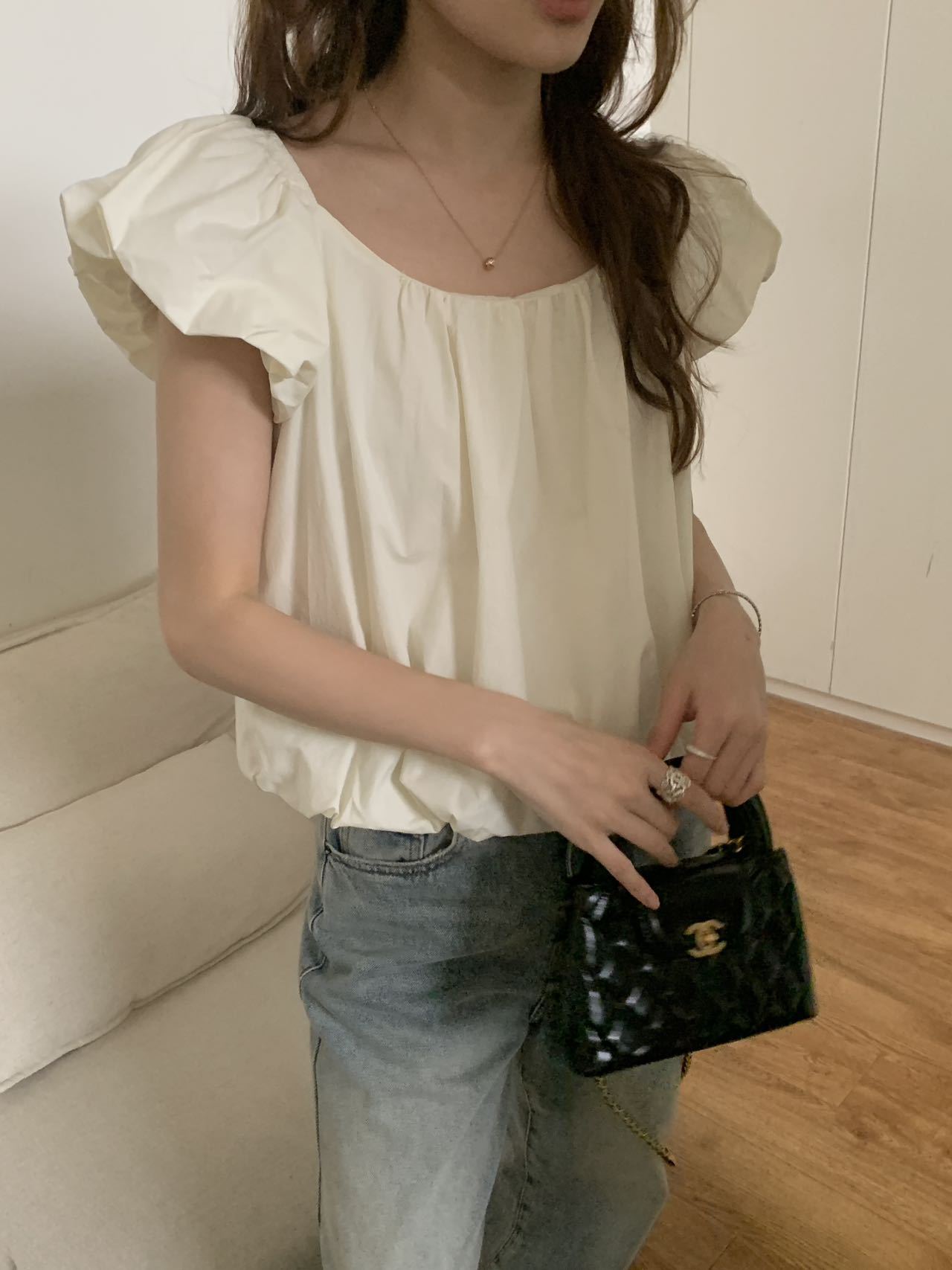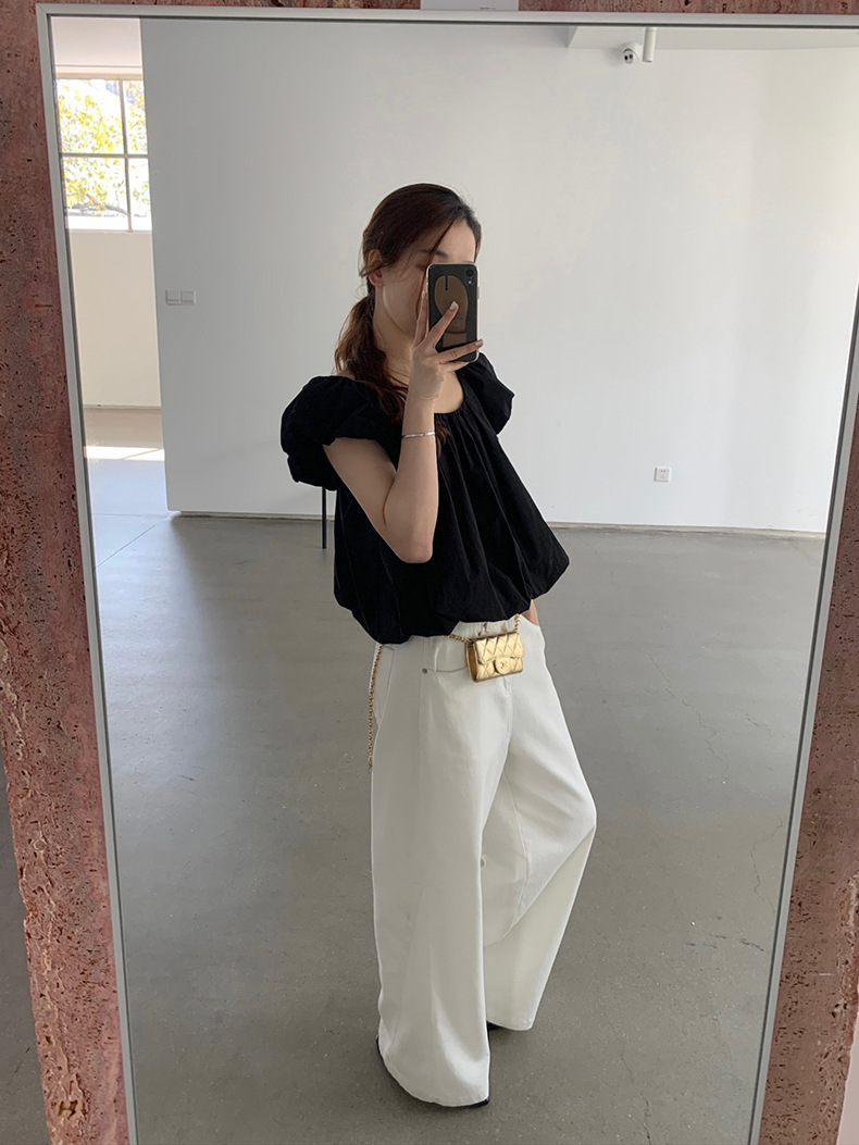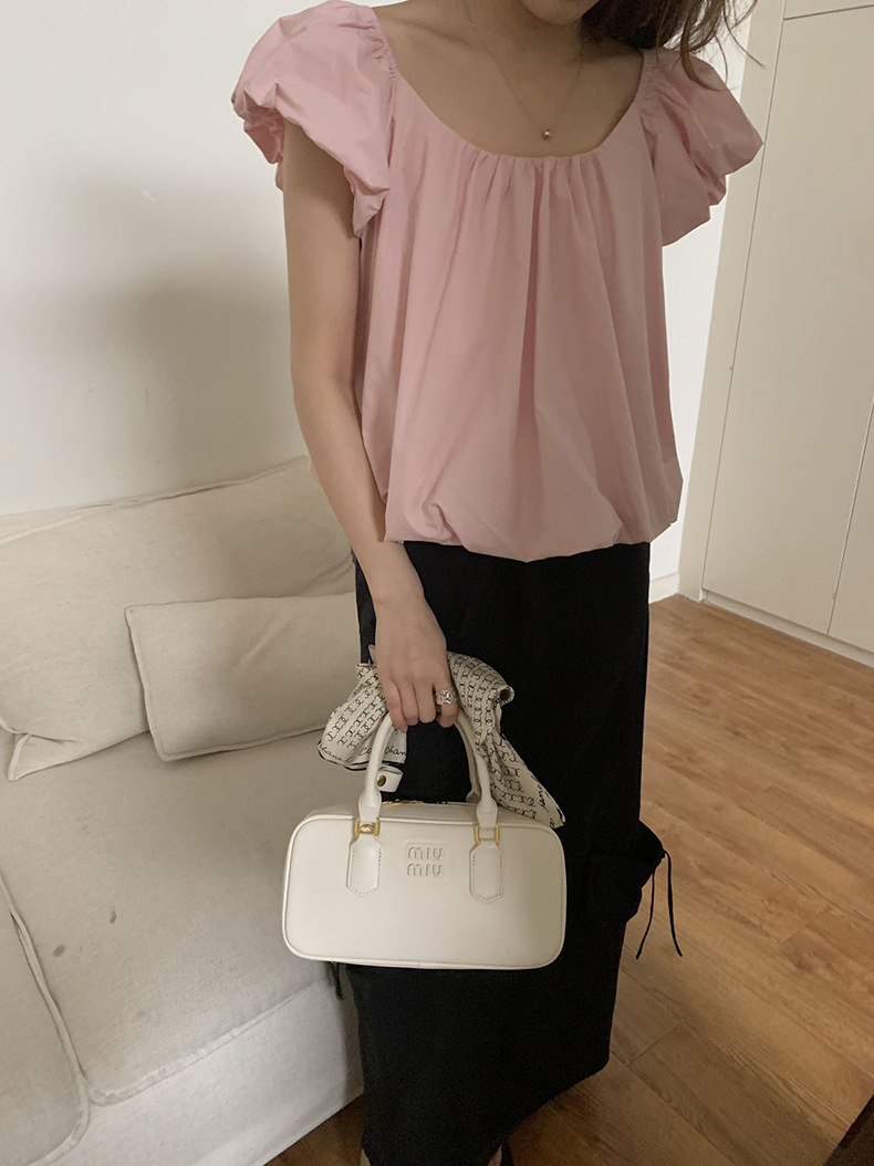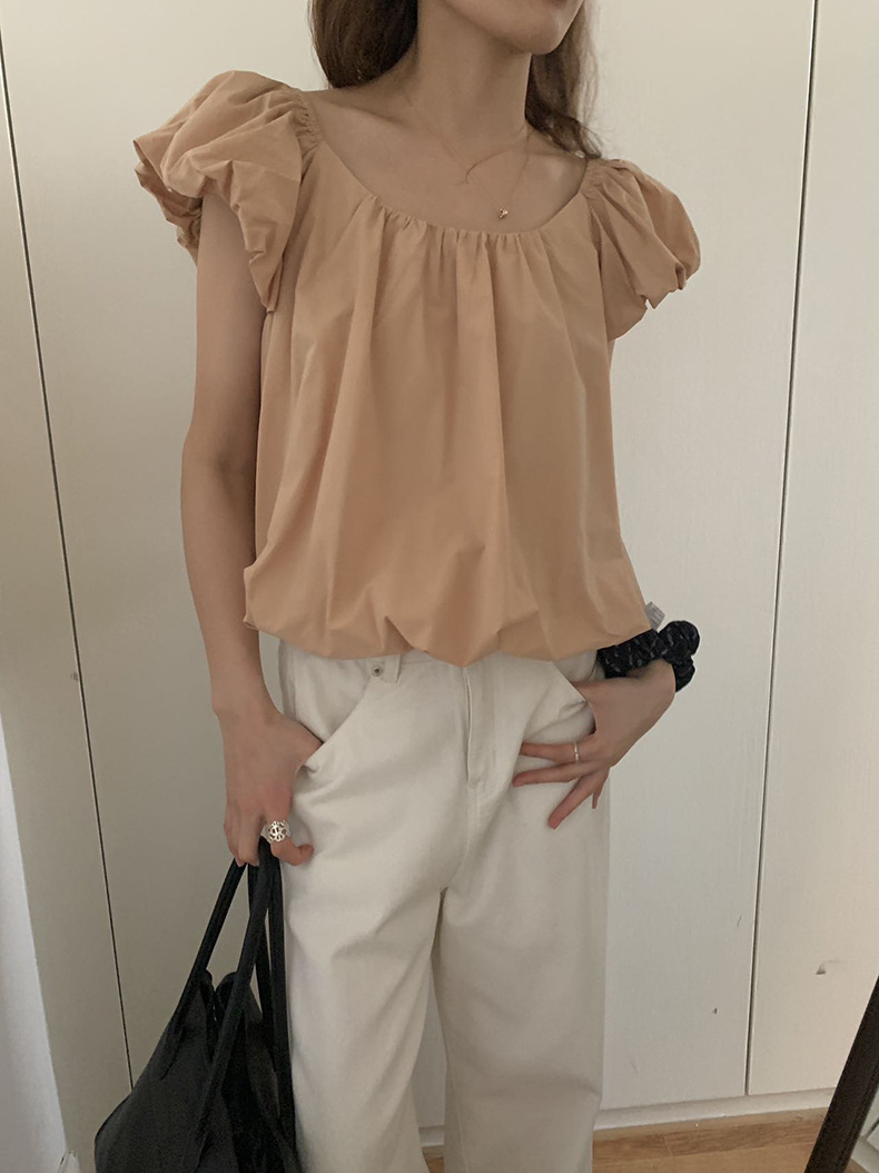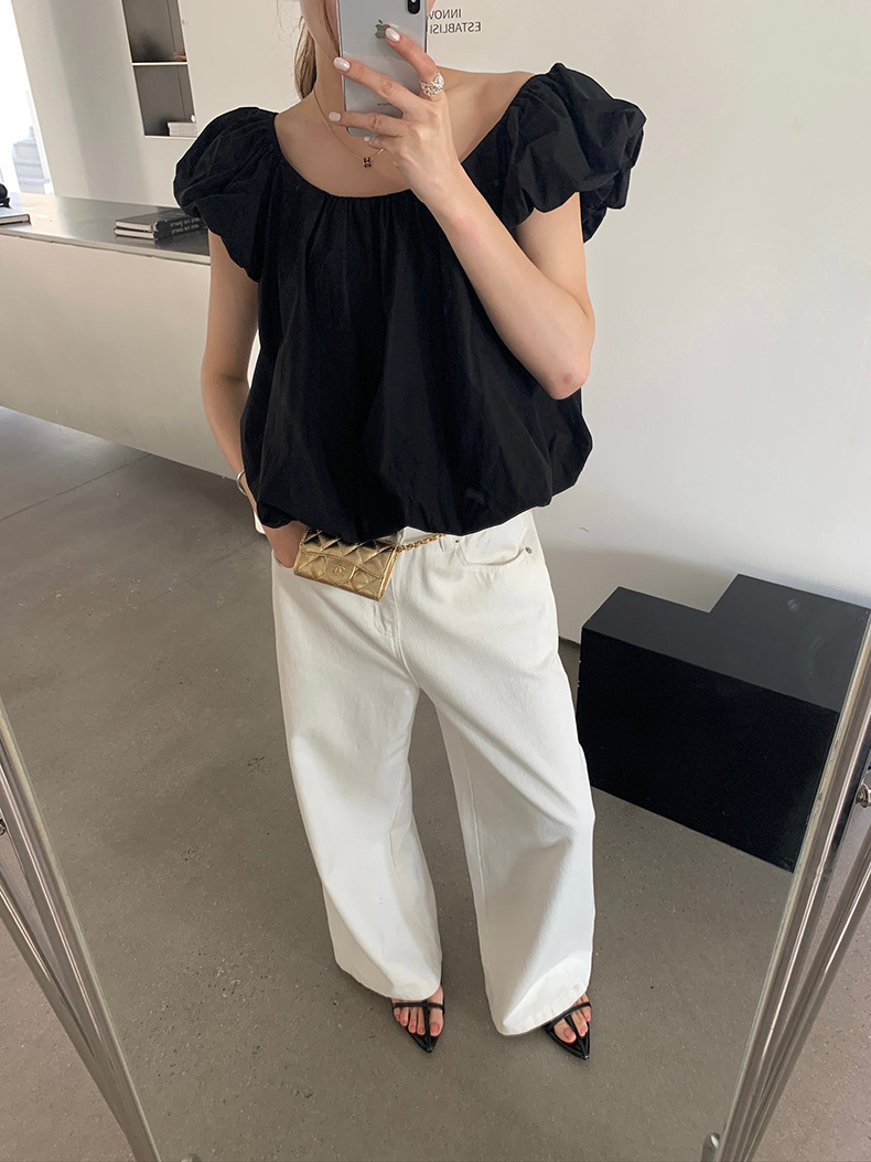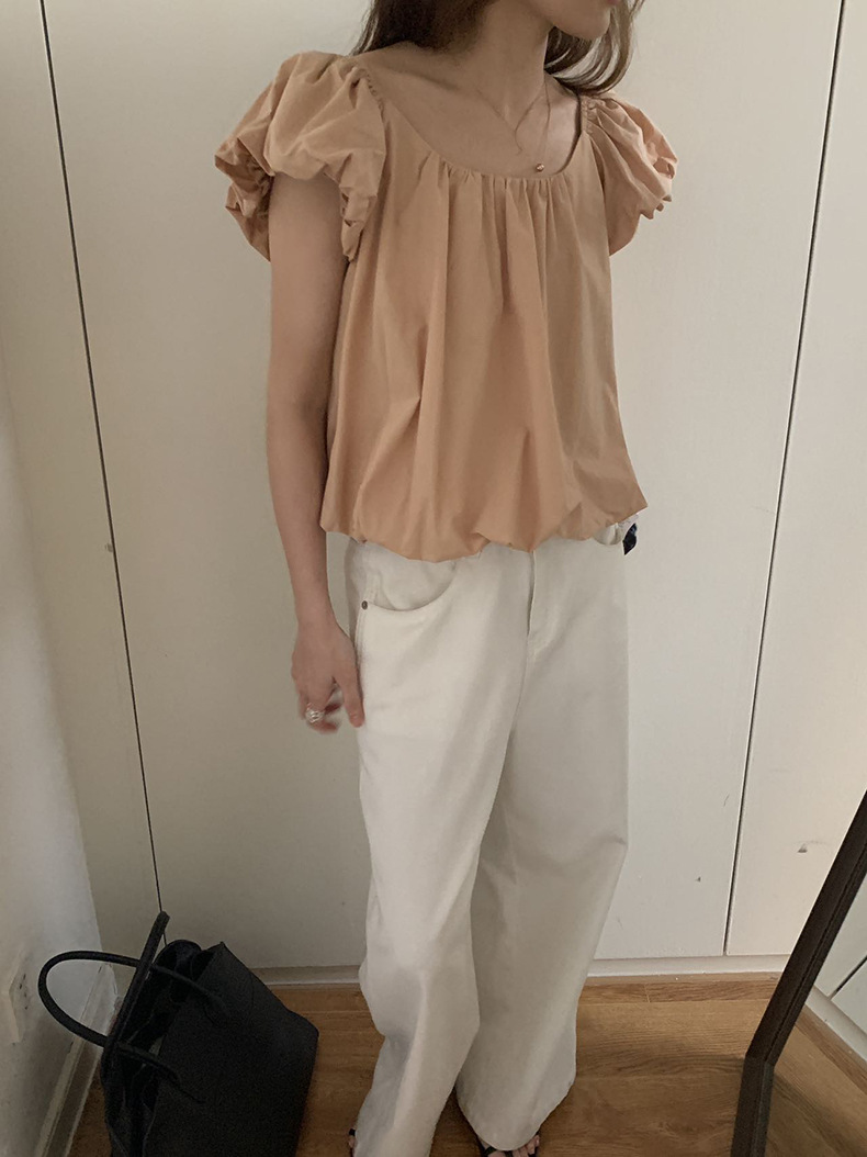 2025夏季新款糖果色泡泡袖小衫宽松短款上衣女W0574