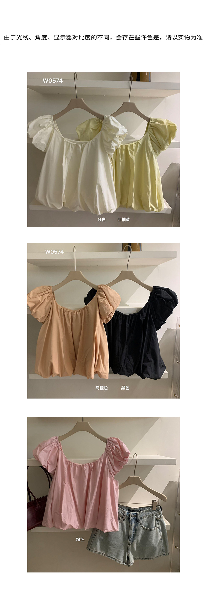 2025夏季新款糖果色泡泡袖小衫宽松短款上衣女W0574 投诉