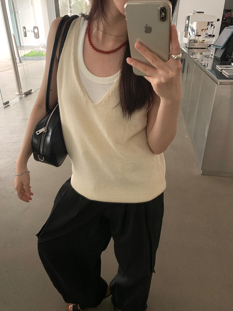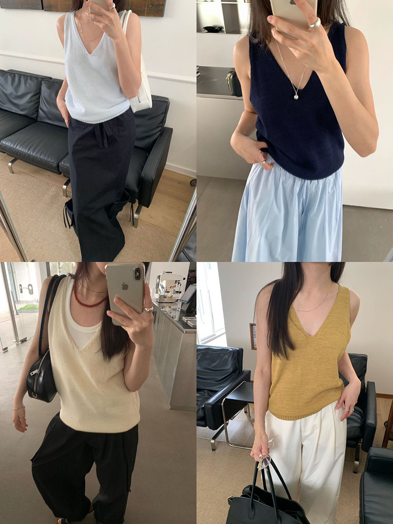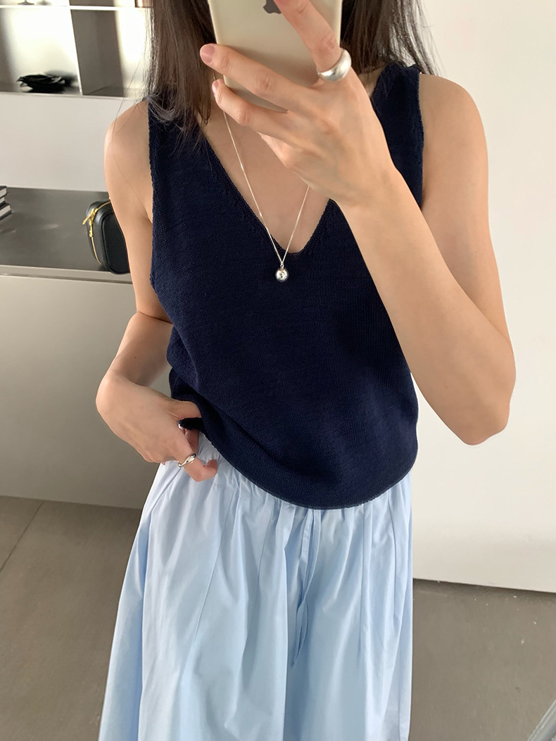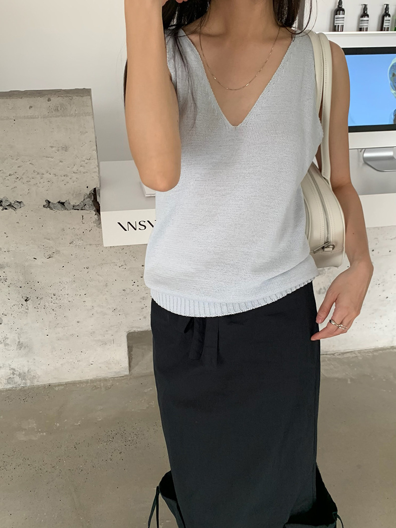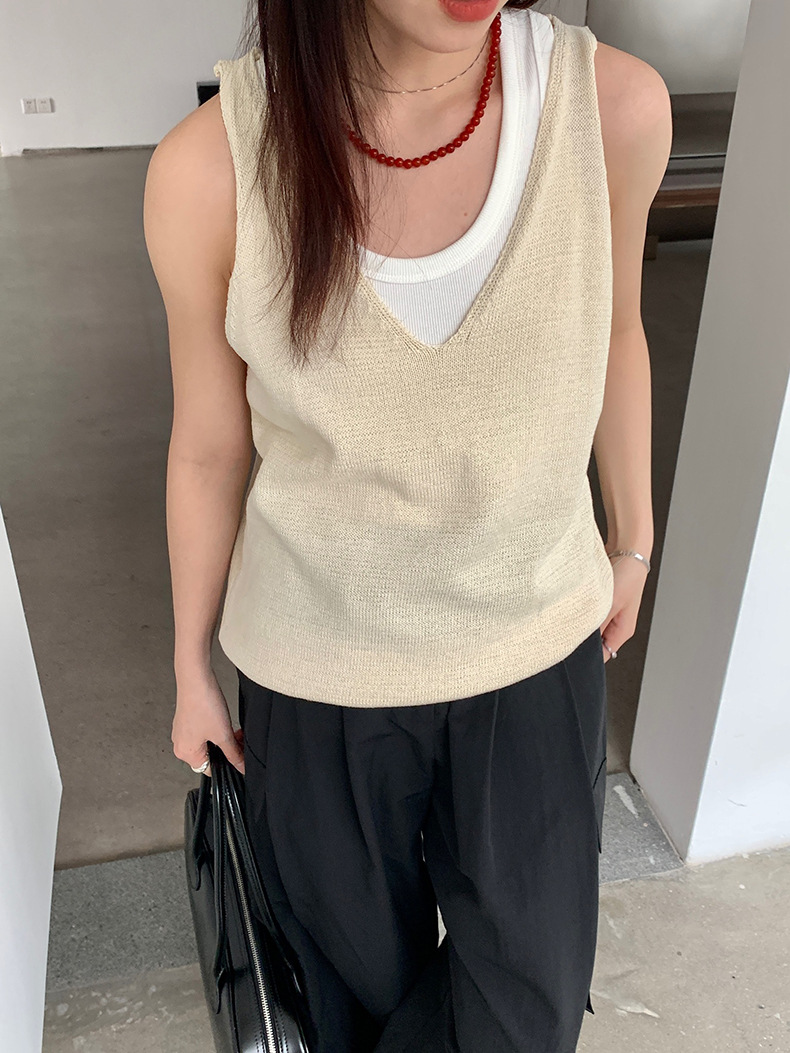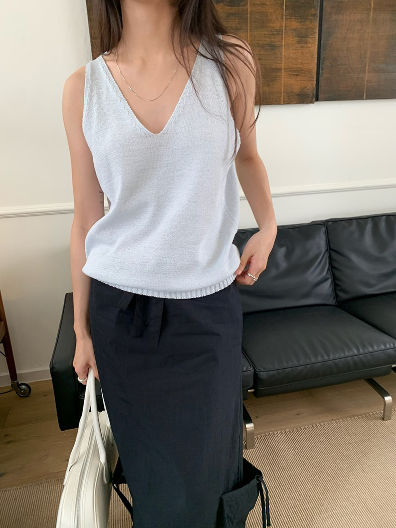2025夏季新款休闲V领吊带背心慵懒无袖针织衫女A4129