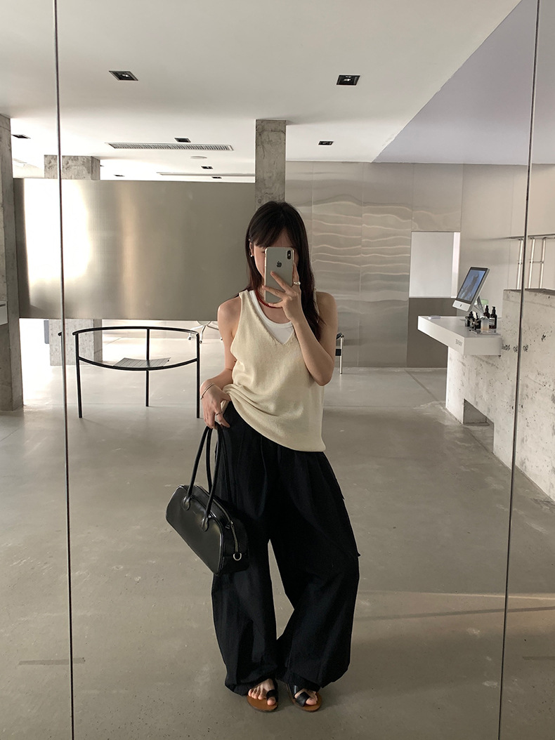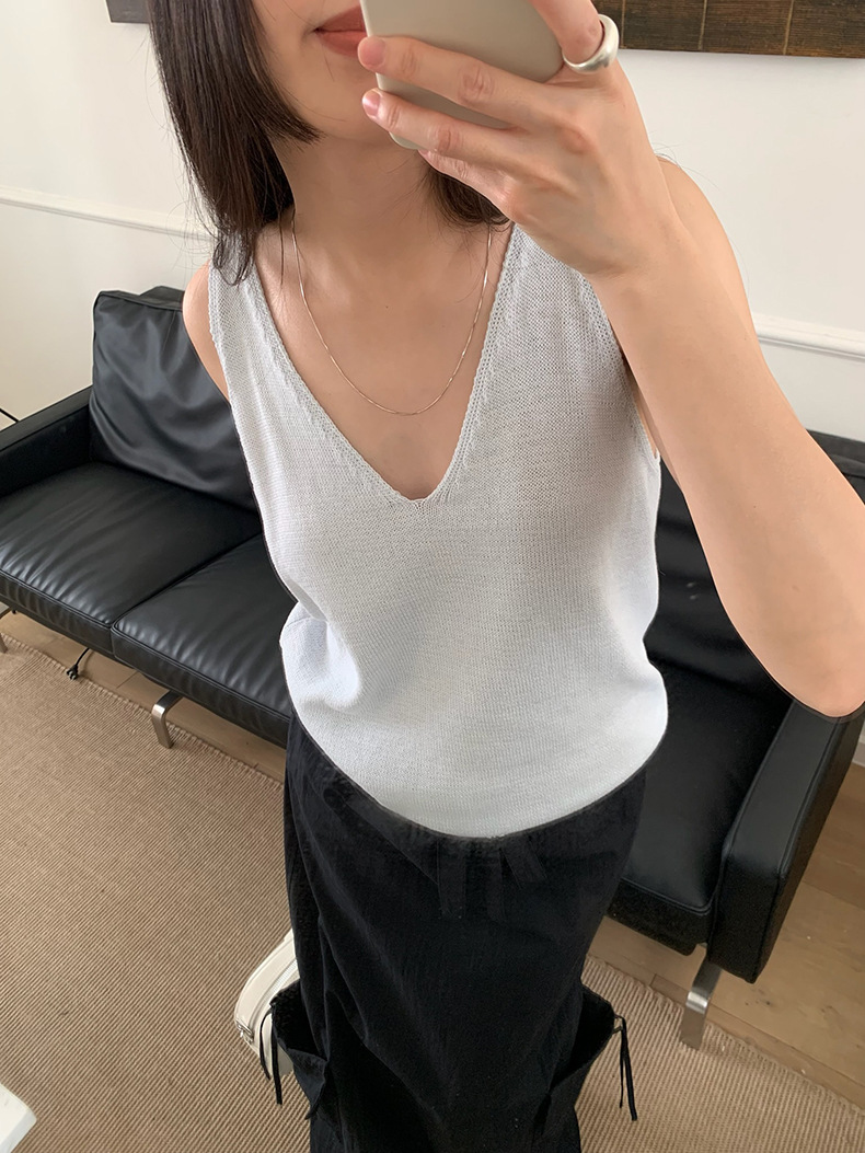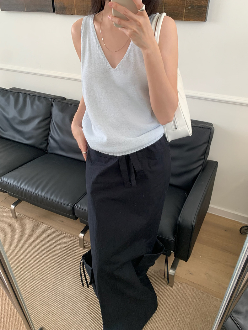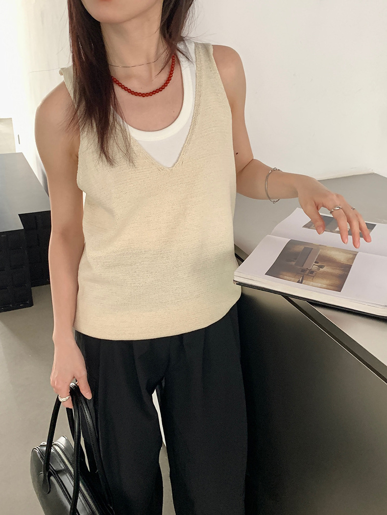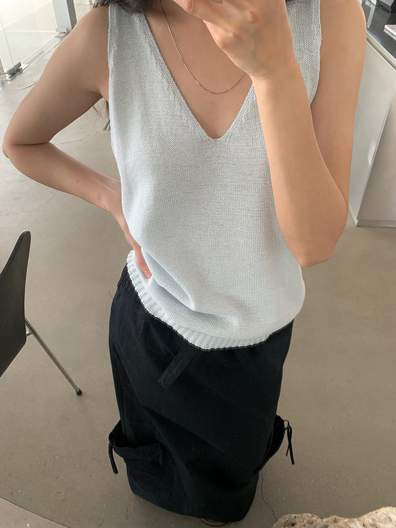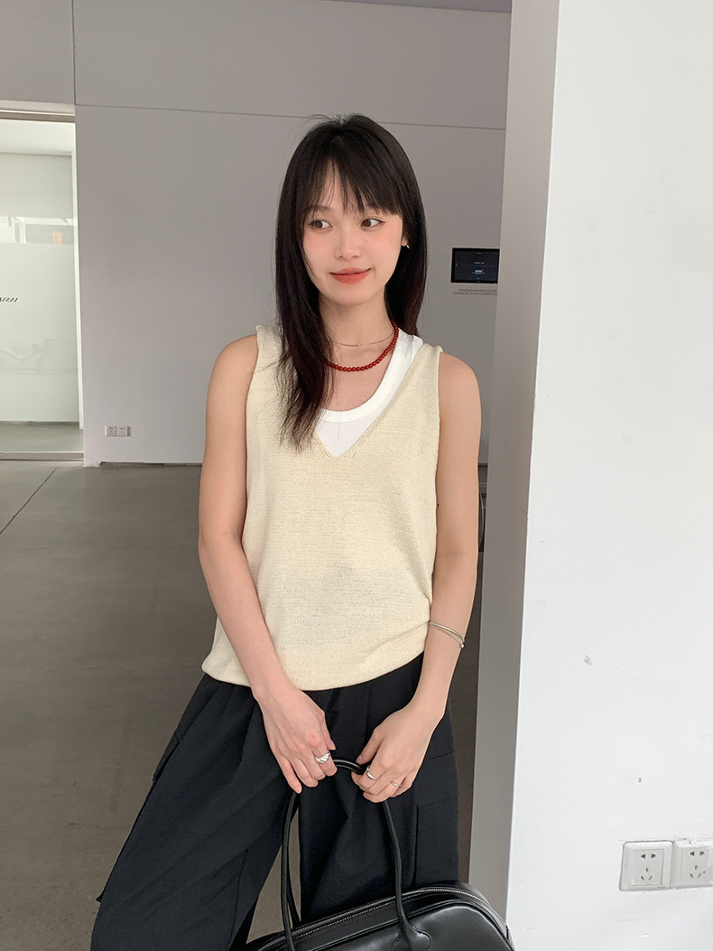 2025夏季新款休闲V领吊带背心慵懒无袖针织衫女A4129