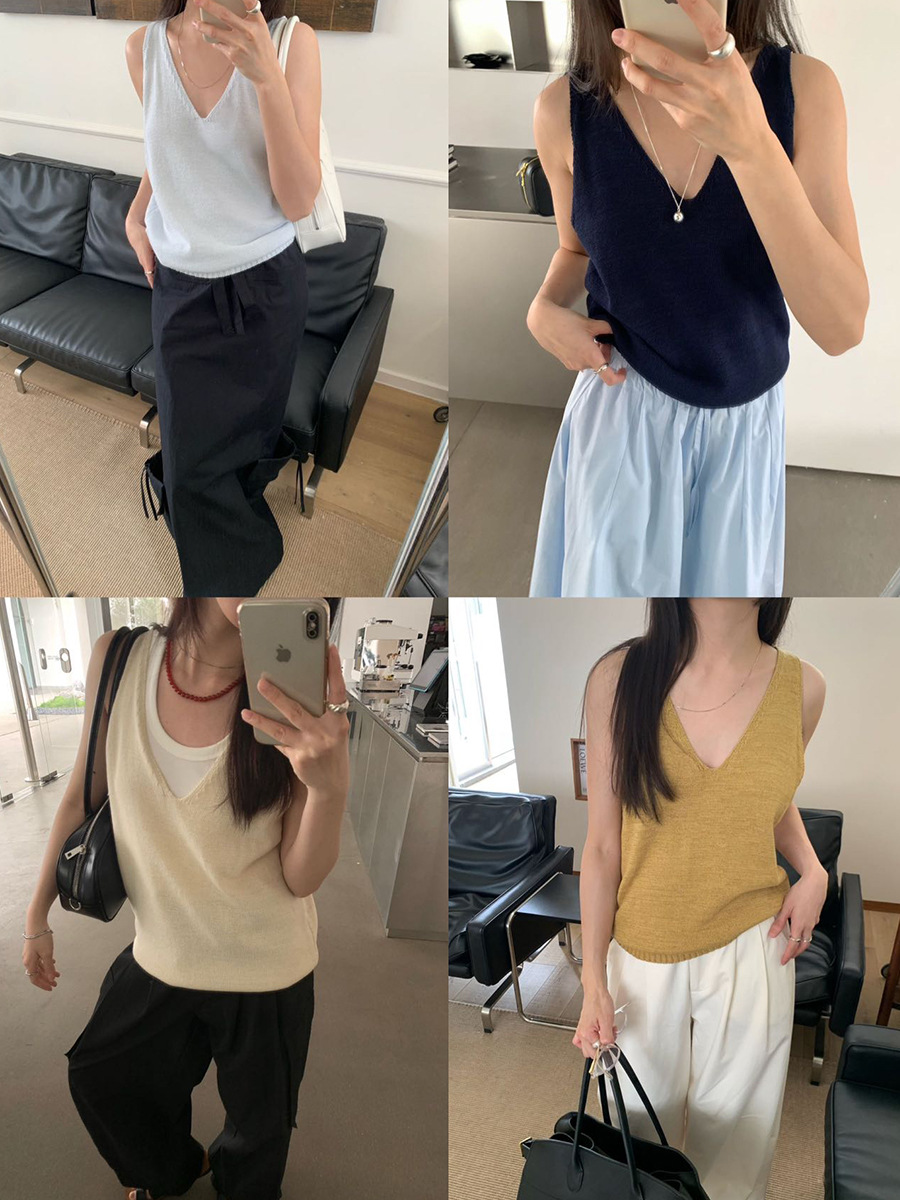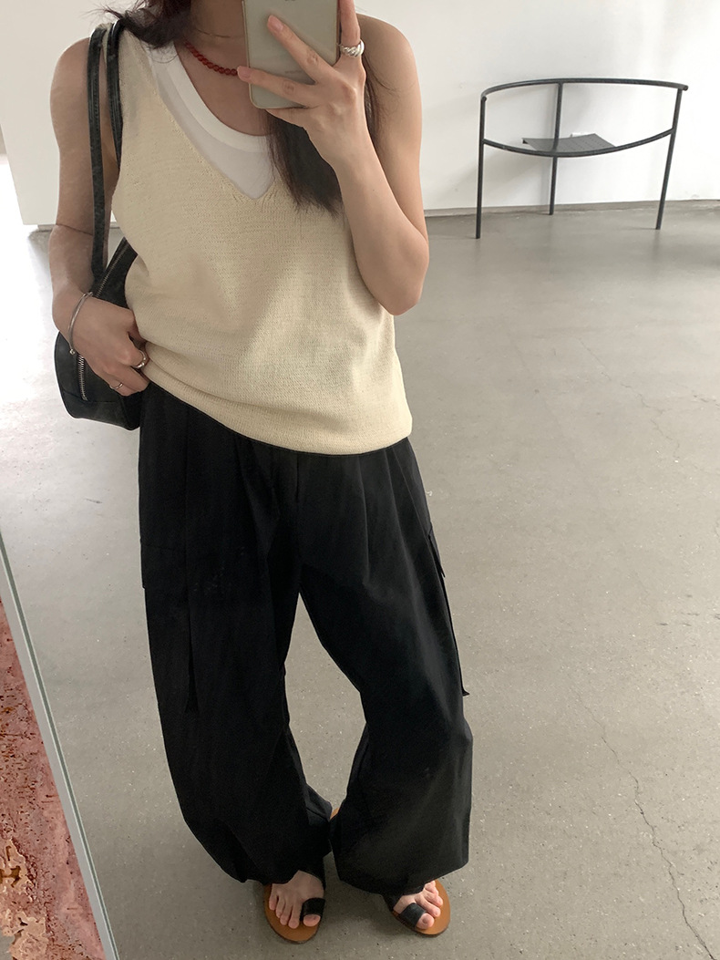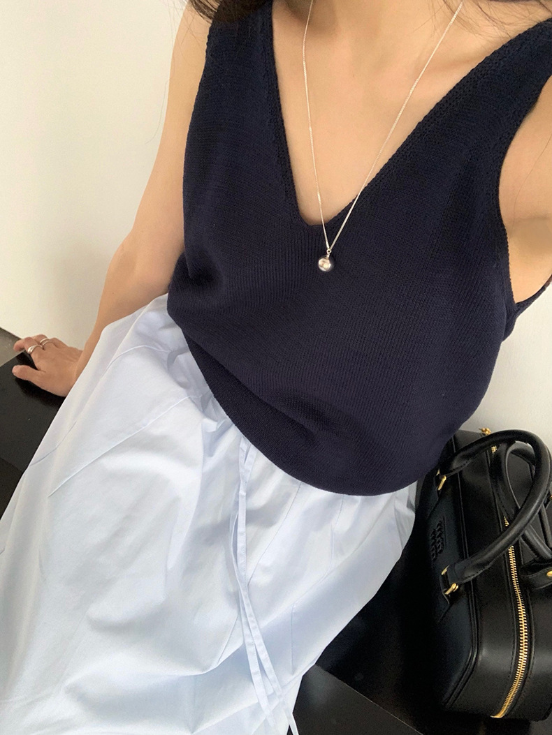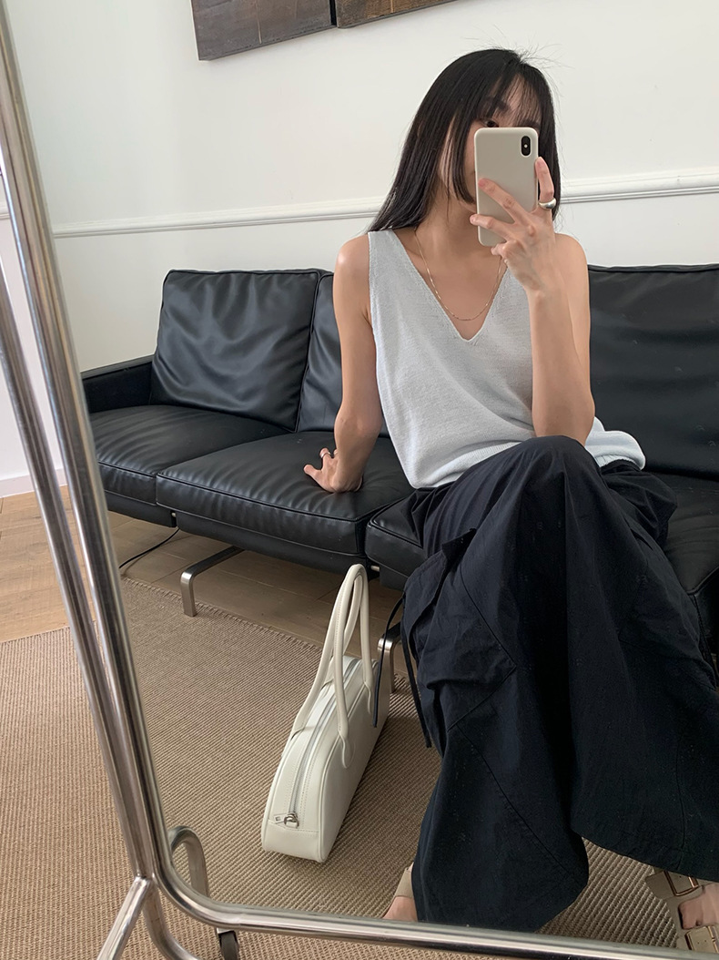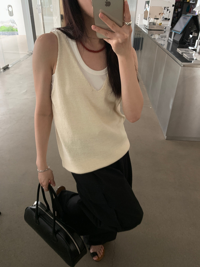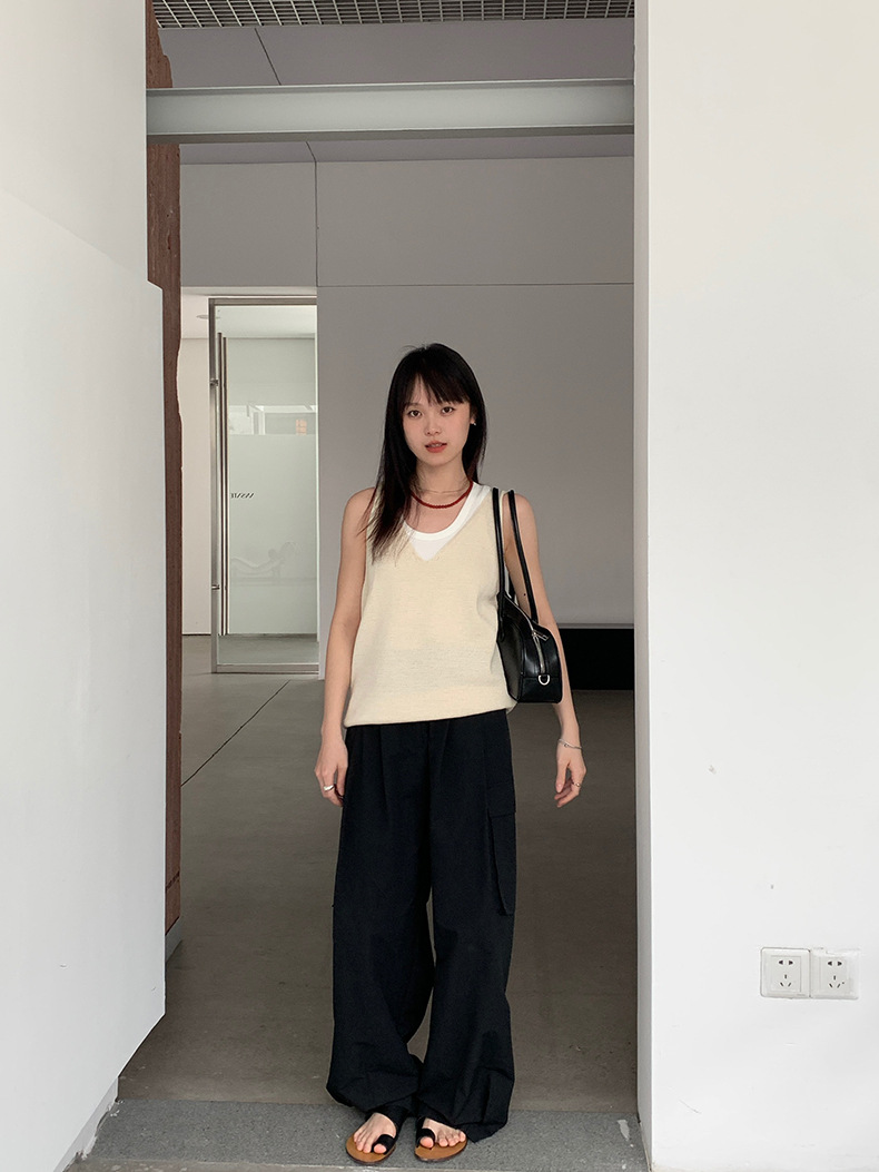 2025夏季新款休闲V领吊带背心慵懒无袖针织衫女A4129