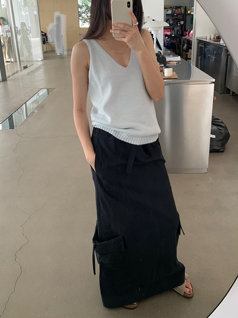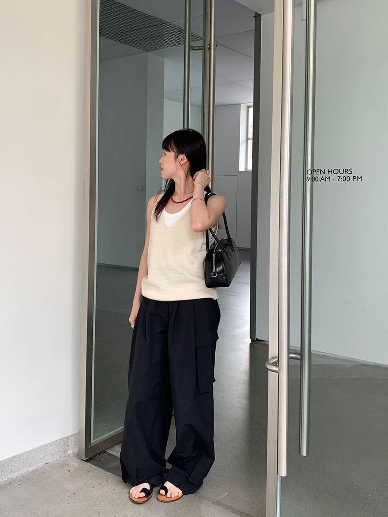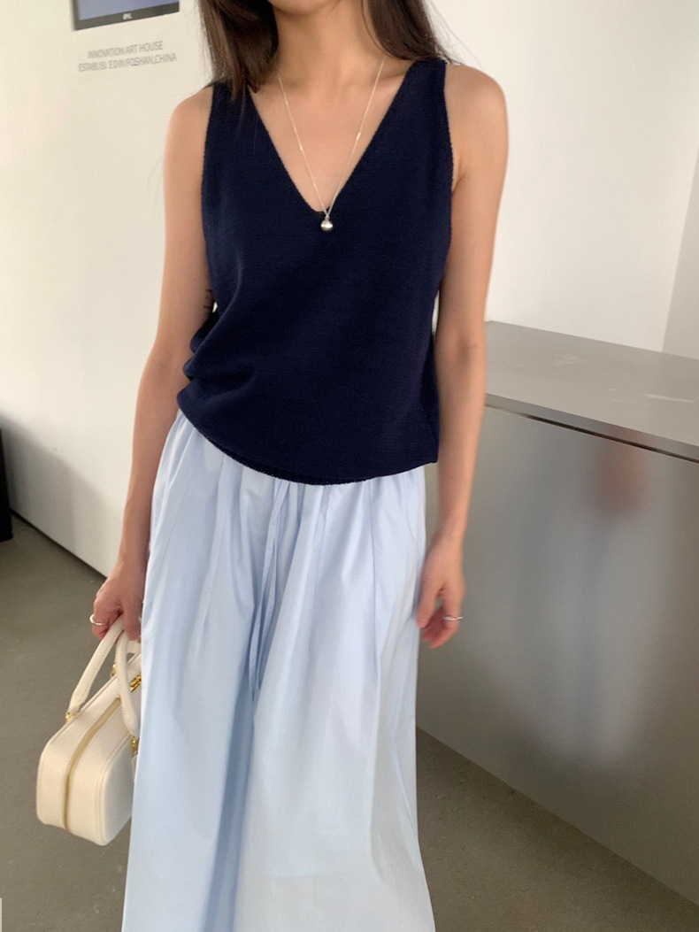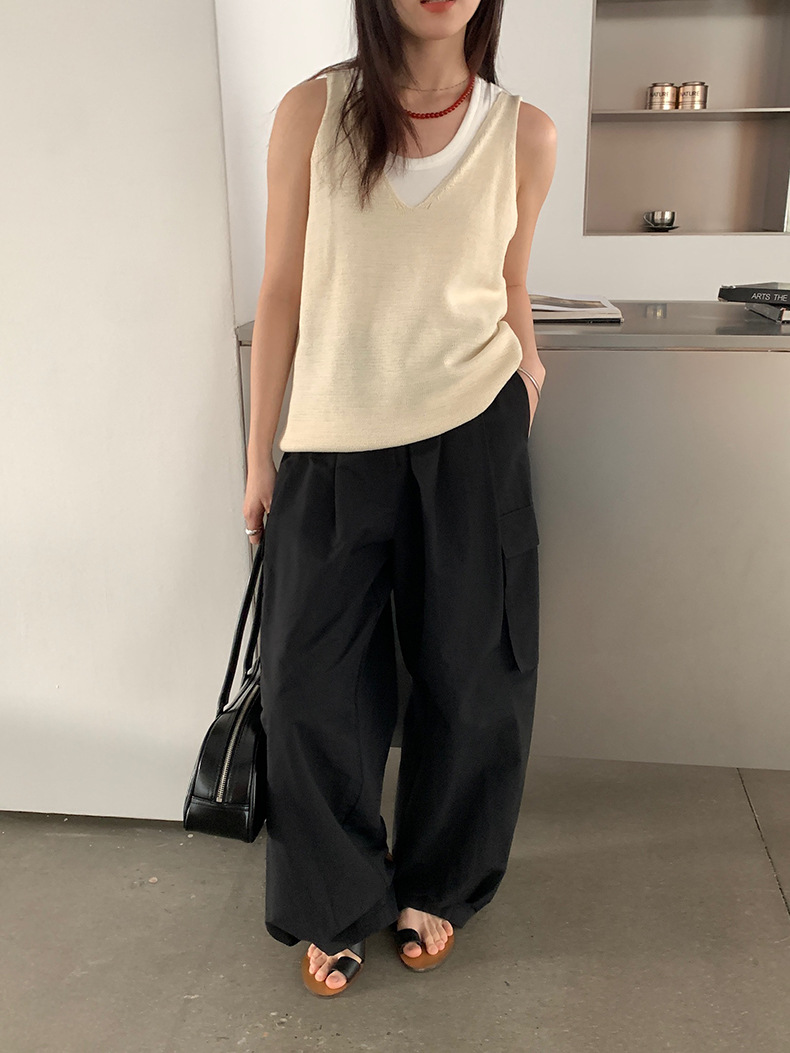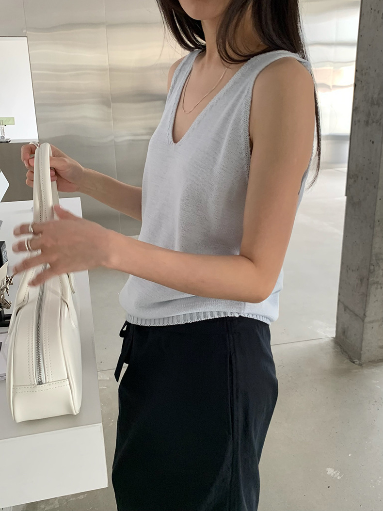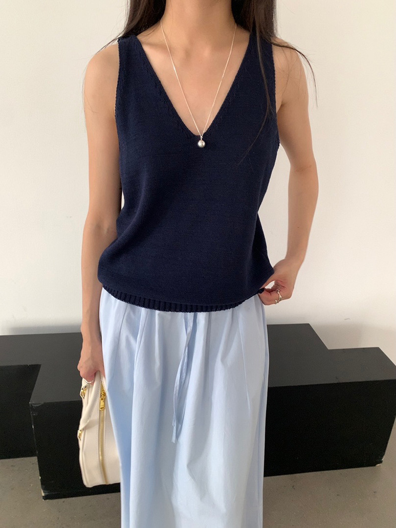 2025夏季新款休闲V领吊带背心慵懒无袖针织衫女A4129