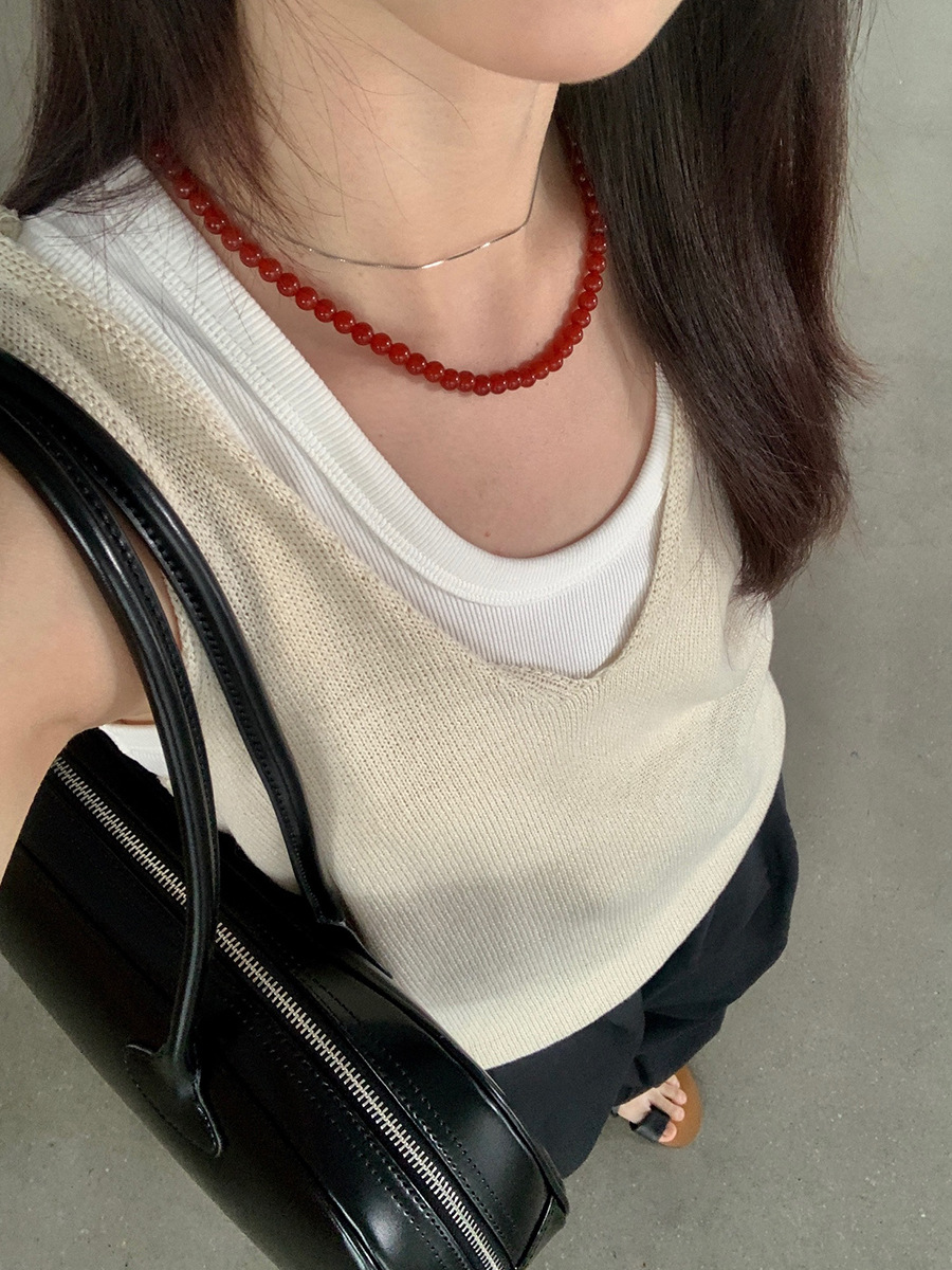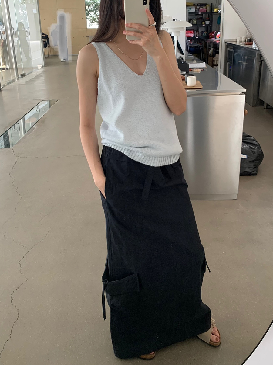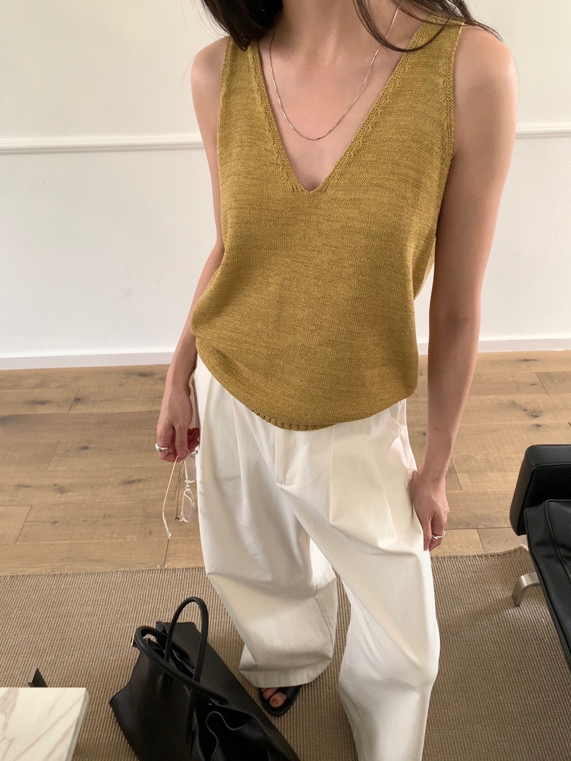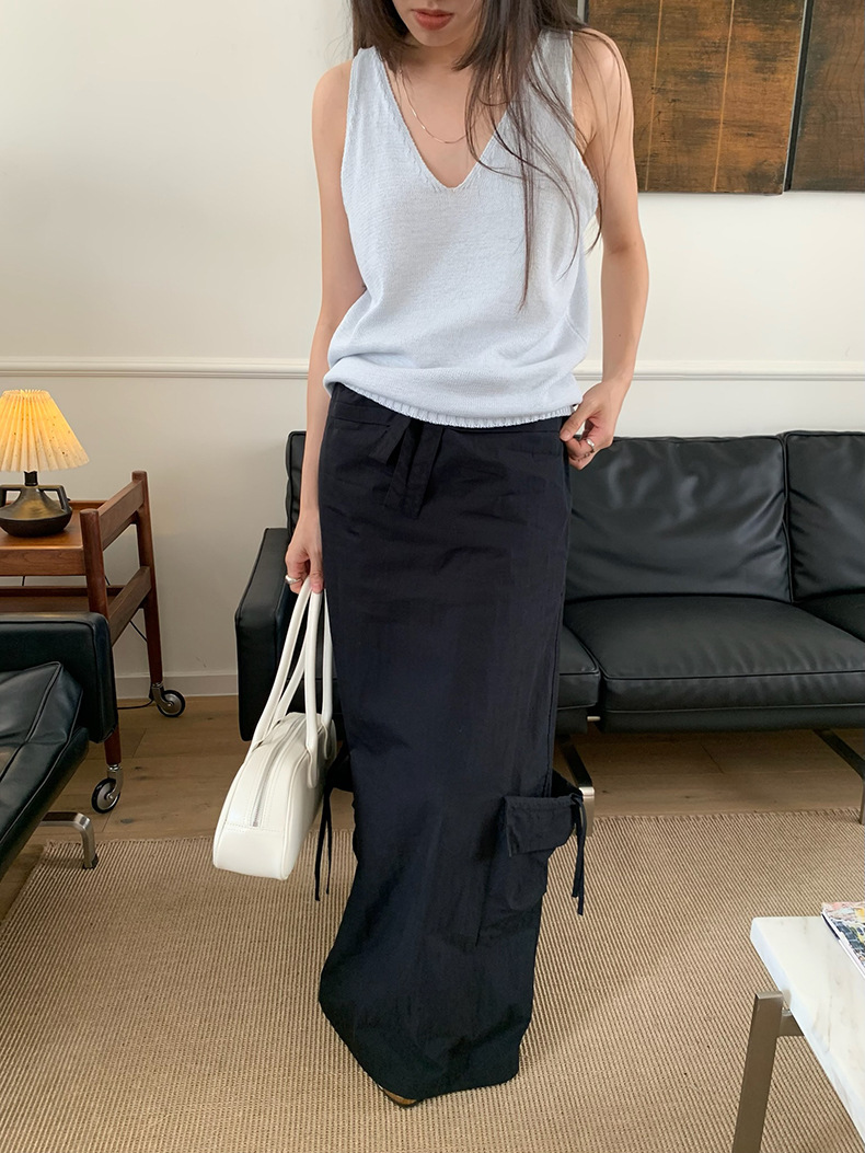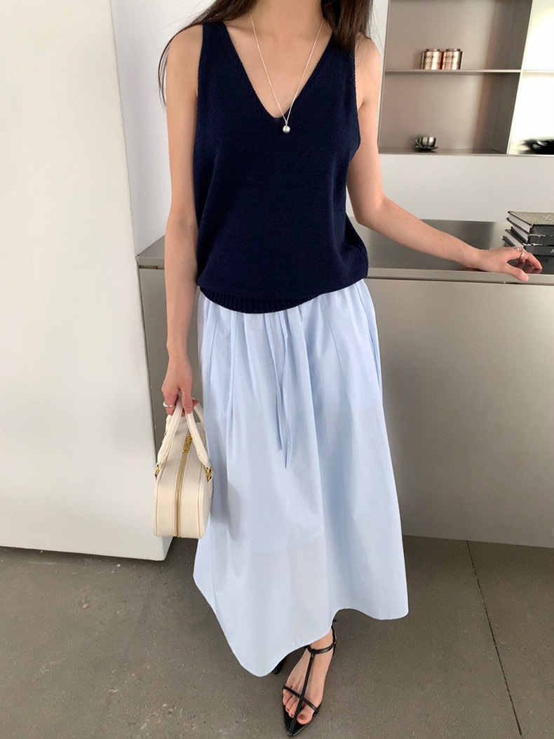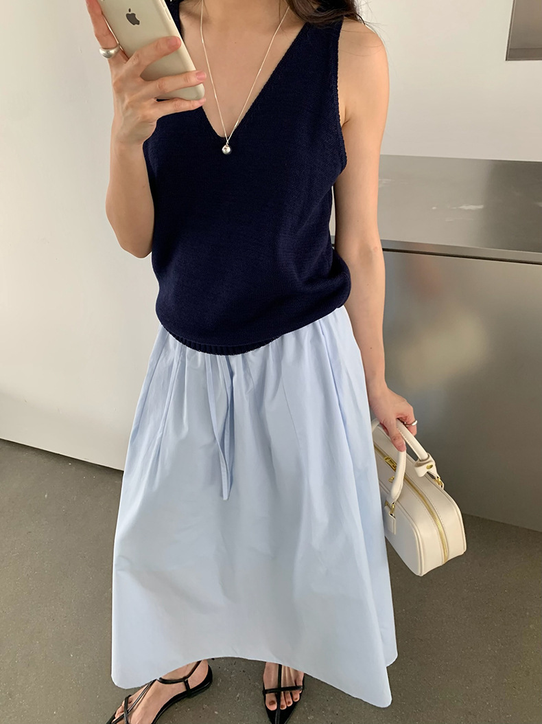2025夏季新款休闲V领吊带背心慵懒无袖针织衫女A4129