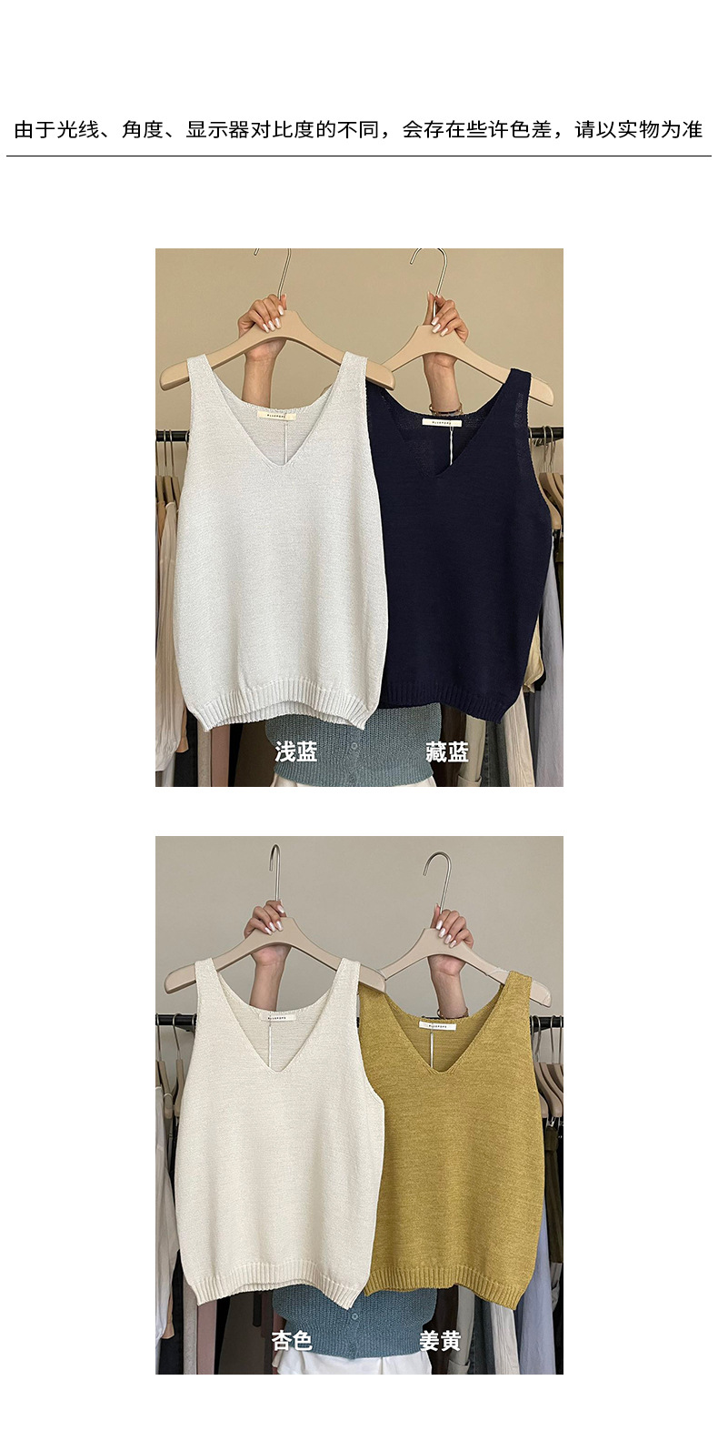 2025夏季新款休闲V领吊带背心慵懒无袖针织衫女A4129 投诉