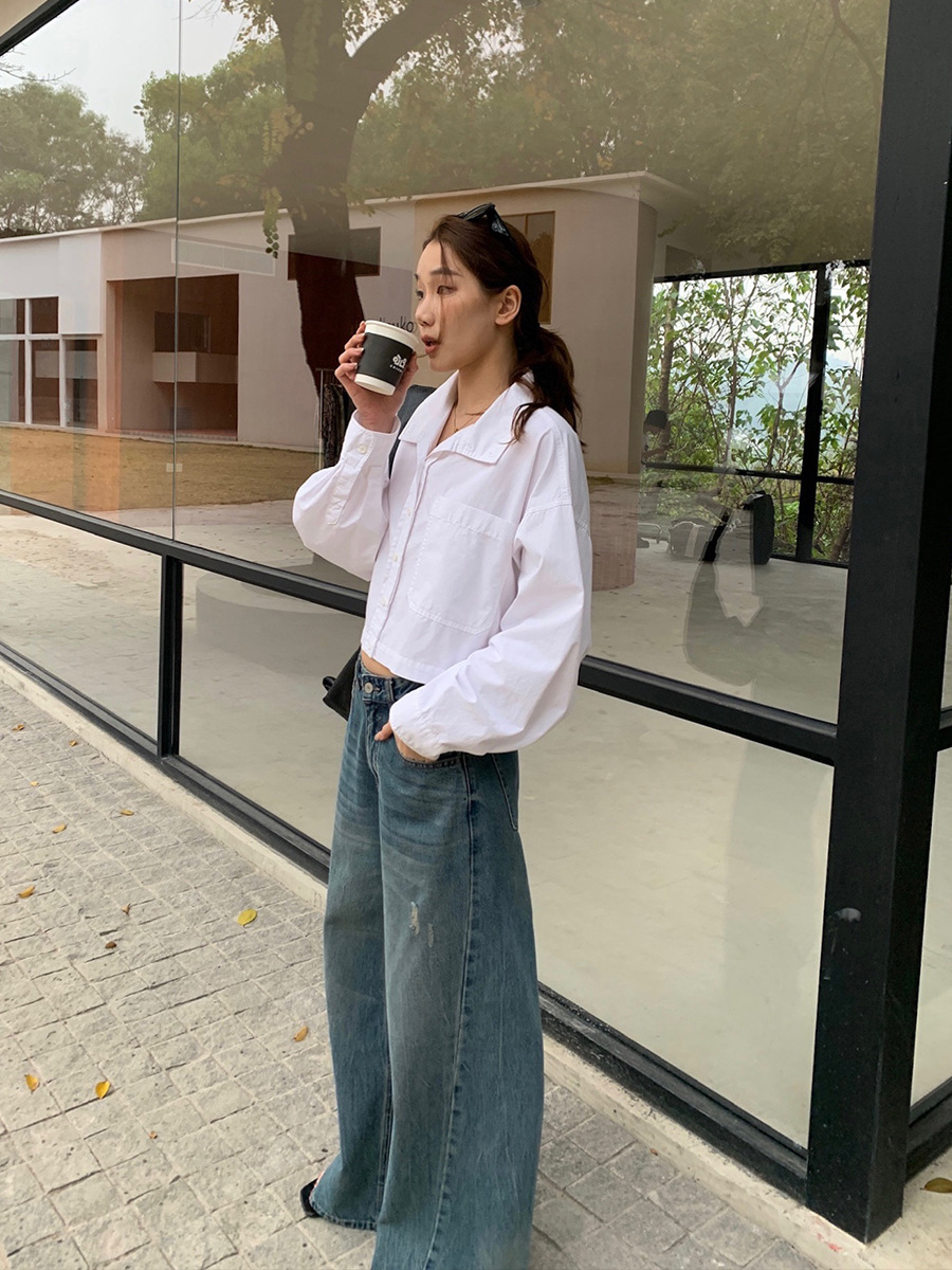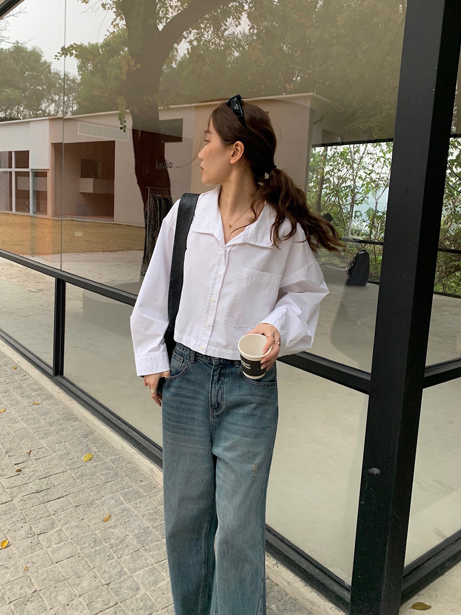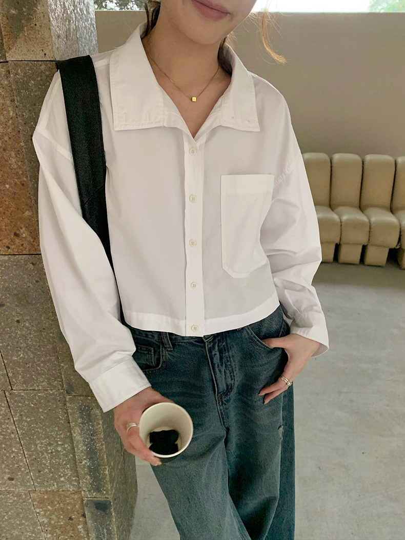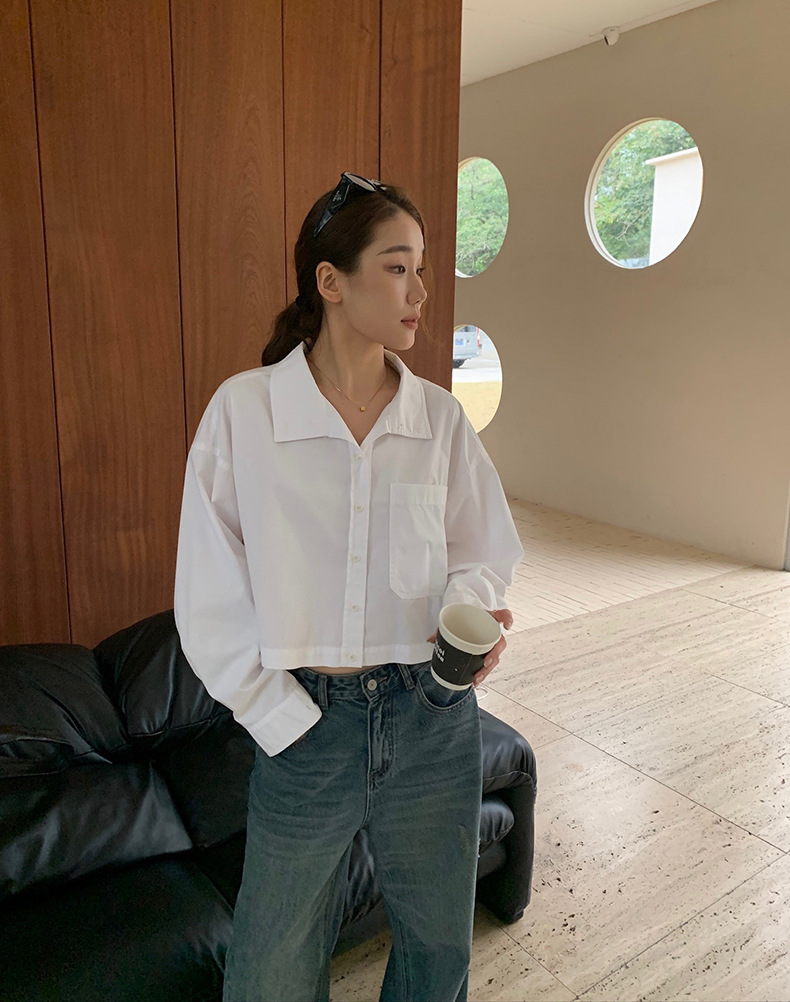 2025夏季新款时髦短款衬衫韩版宽松翻领上衣女A4062