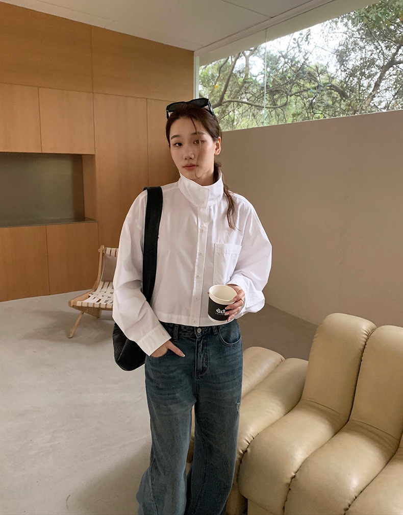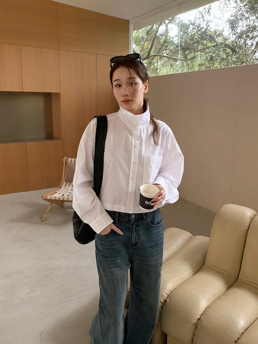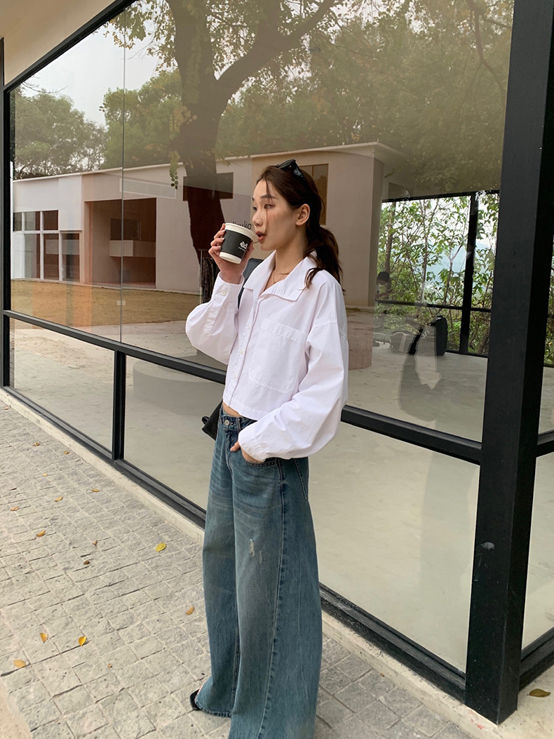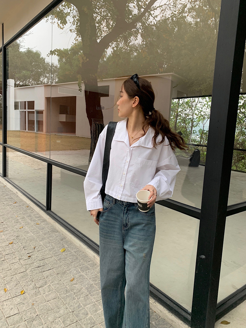 2025夏季新款时髦短款衬衫韩版宽松翻领上衣女A4062