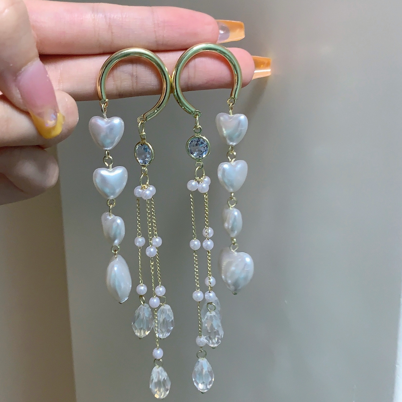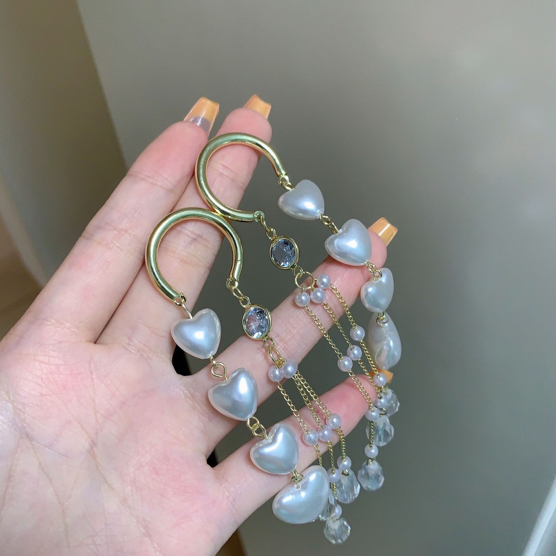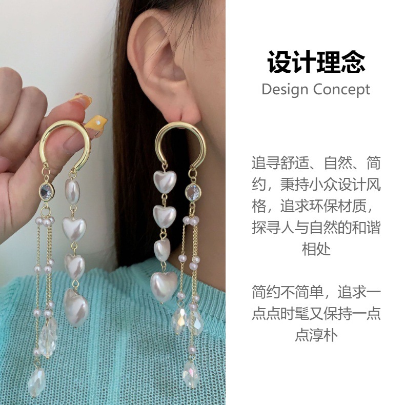复古水晶爱心欧美ins时尚高级感气质耳环女925银针珍珠流苏耳坠女 English | 投诉