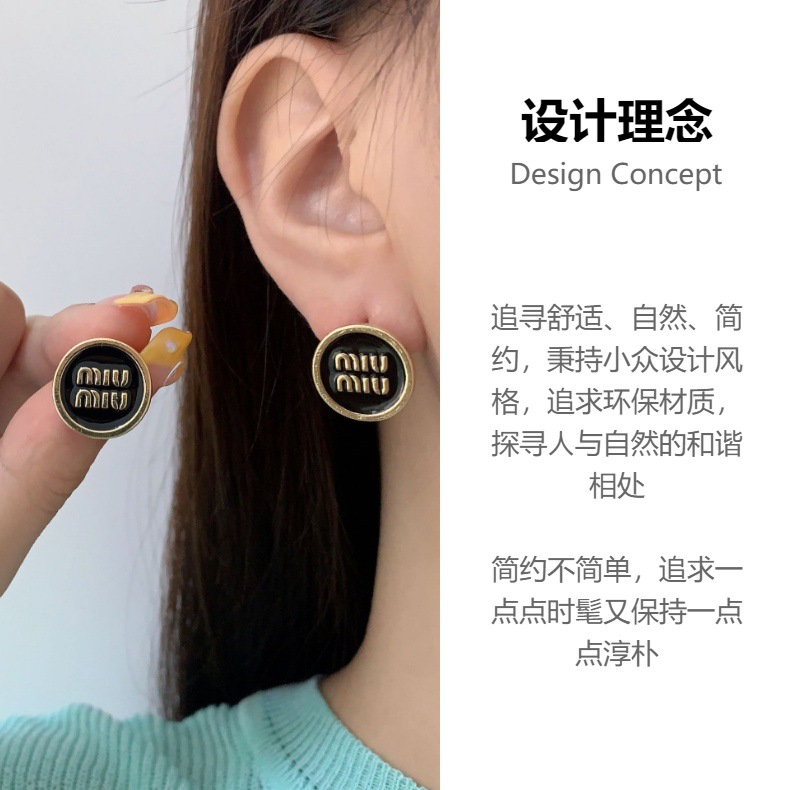 欧美复古黑色字母耳环设计感高级气质独特圆形耳饰品s925银针耳钉 English | 投诉