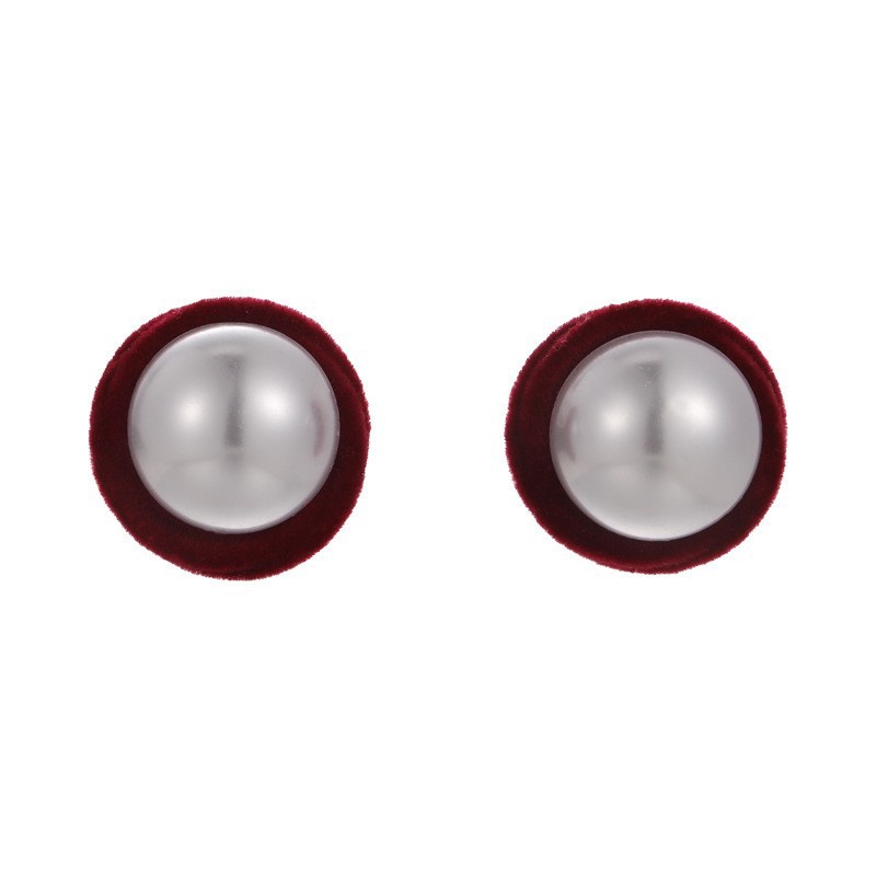 轻奢时尚感夸张几何圆形耳环耳饰法式复古秋冬红色植绒珍珠耳钉女 English | 投诉