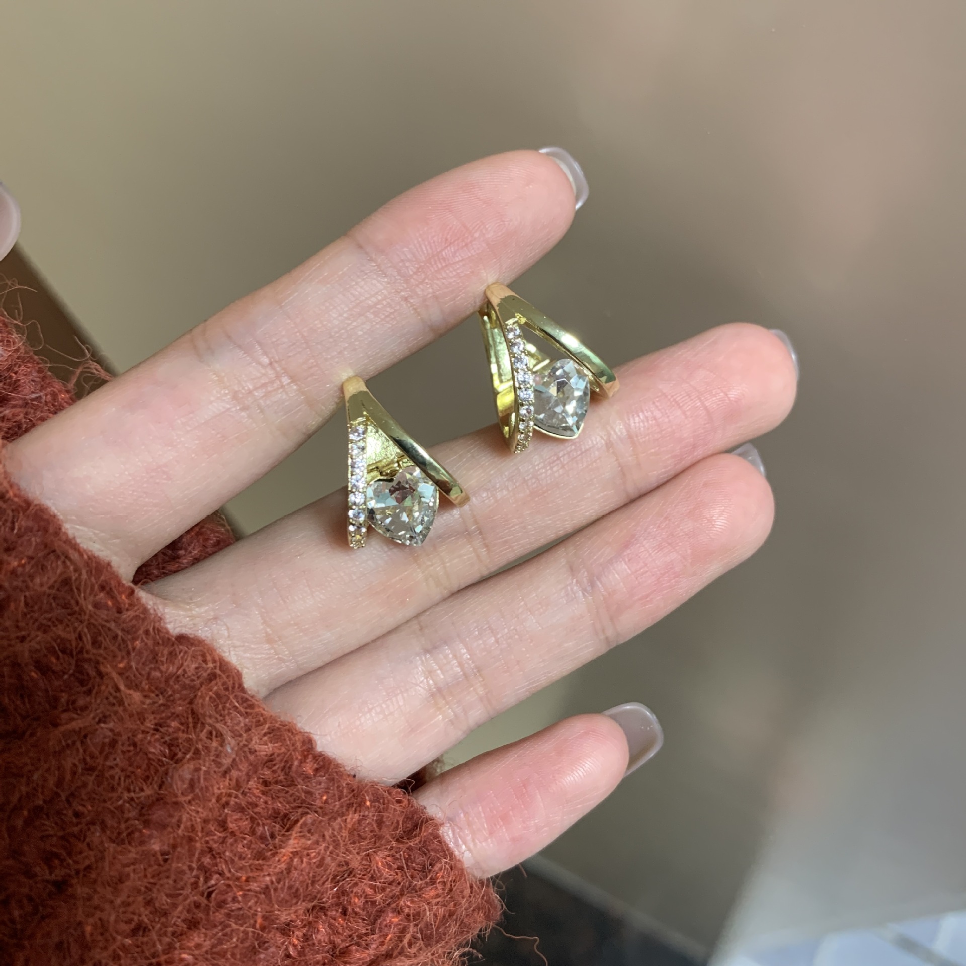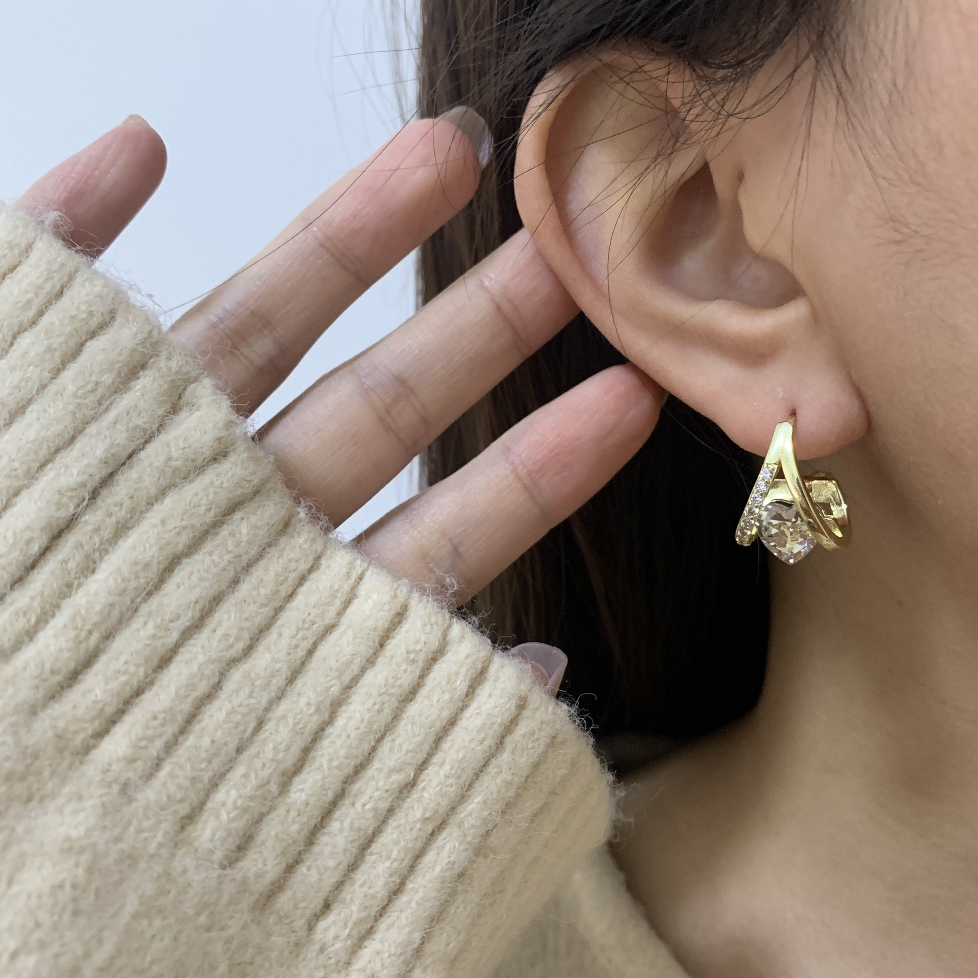 2024年新款潮高级感爱心水晶之恋耳扣小众设计简约轻奢精致耳环 English | 投诉