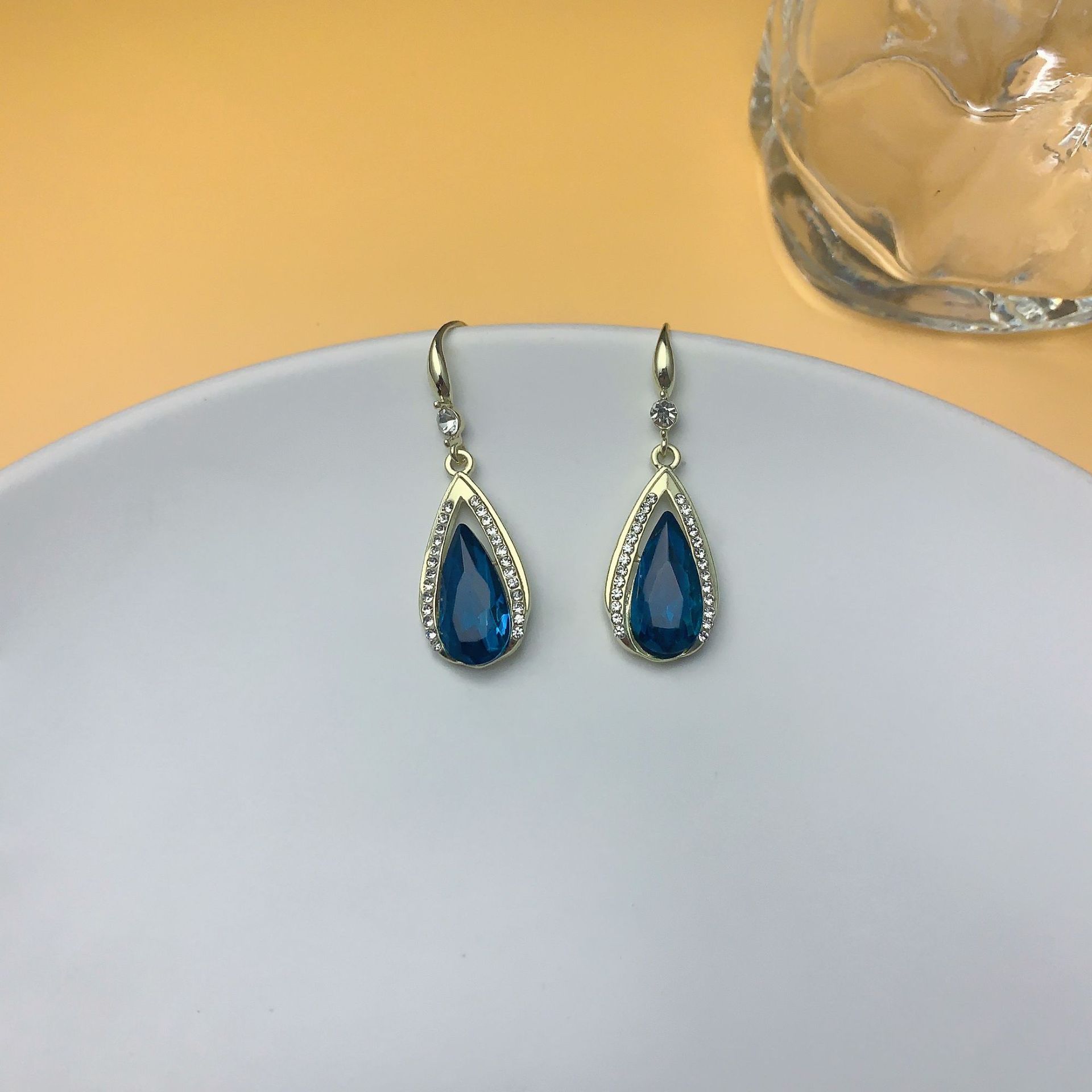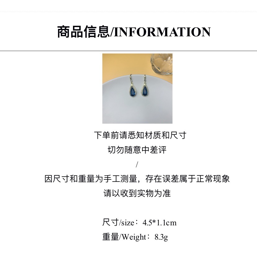 2024新款潮奢华百搭时尚气质耳坠水滴挂钩耳饰高级感蓝色水晶耳环 English | 投诉