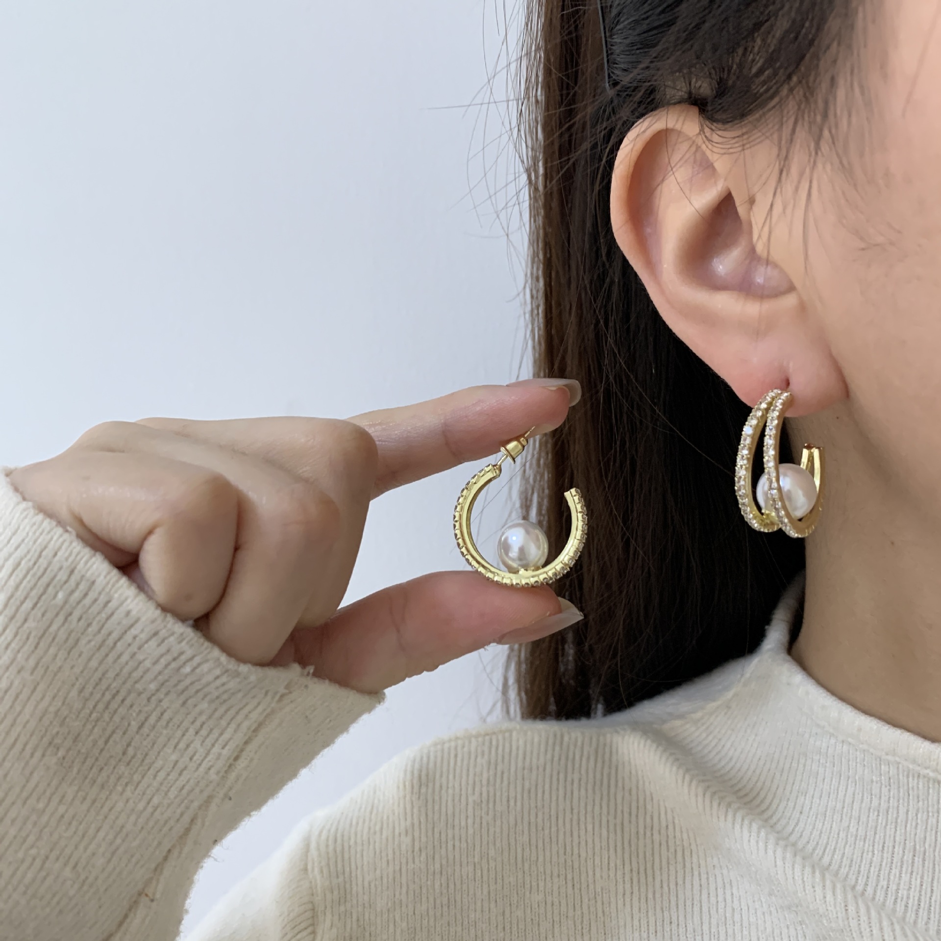 2024年新款爆款轻奢个性珍珠耳圈高级感独特耳环设计感耳饰女时尚 English | 投诉