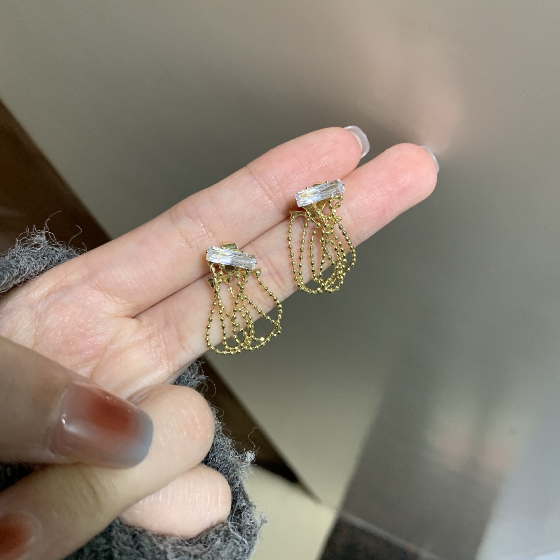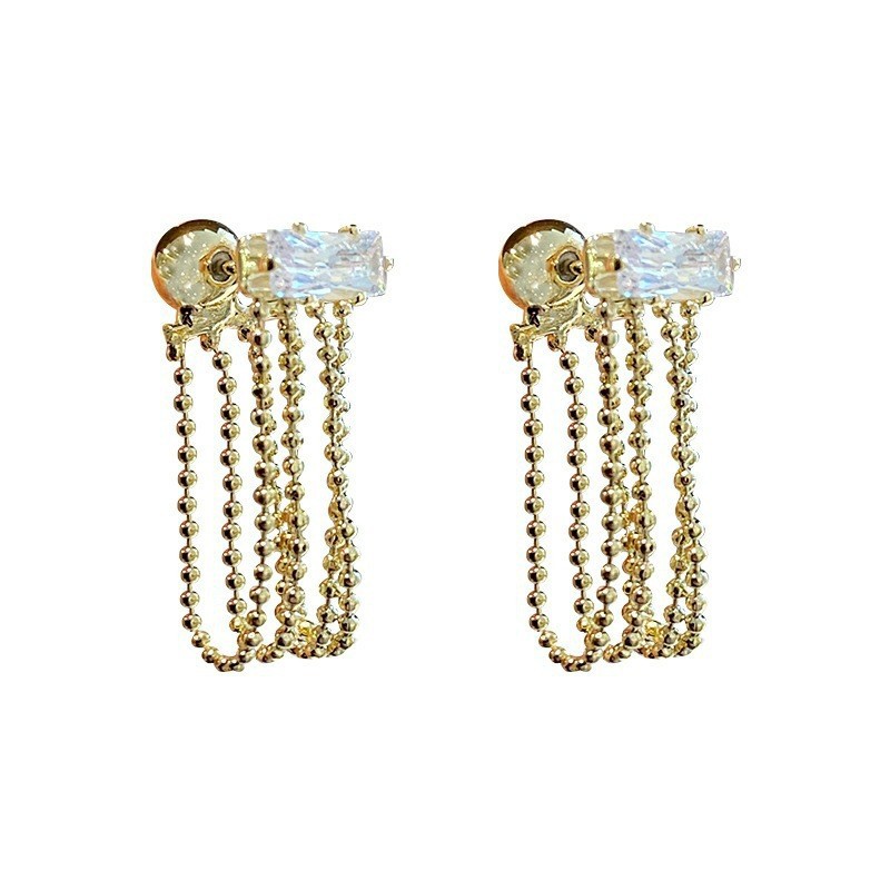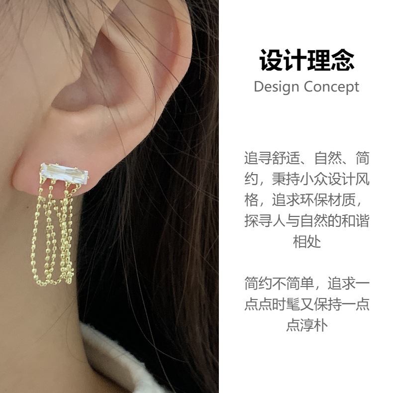 女新款925银针珍珠链条耳饰锆石耳钉流苏耳环气质高级感精致耳饰 English | 投诉