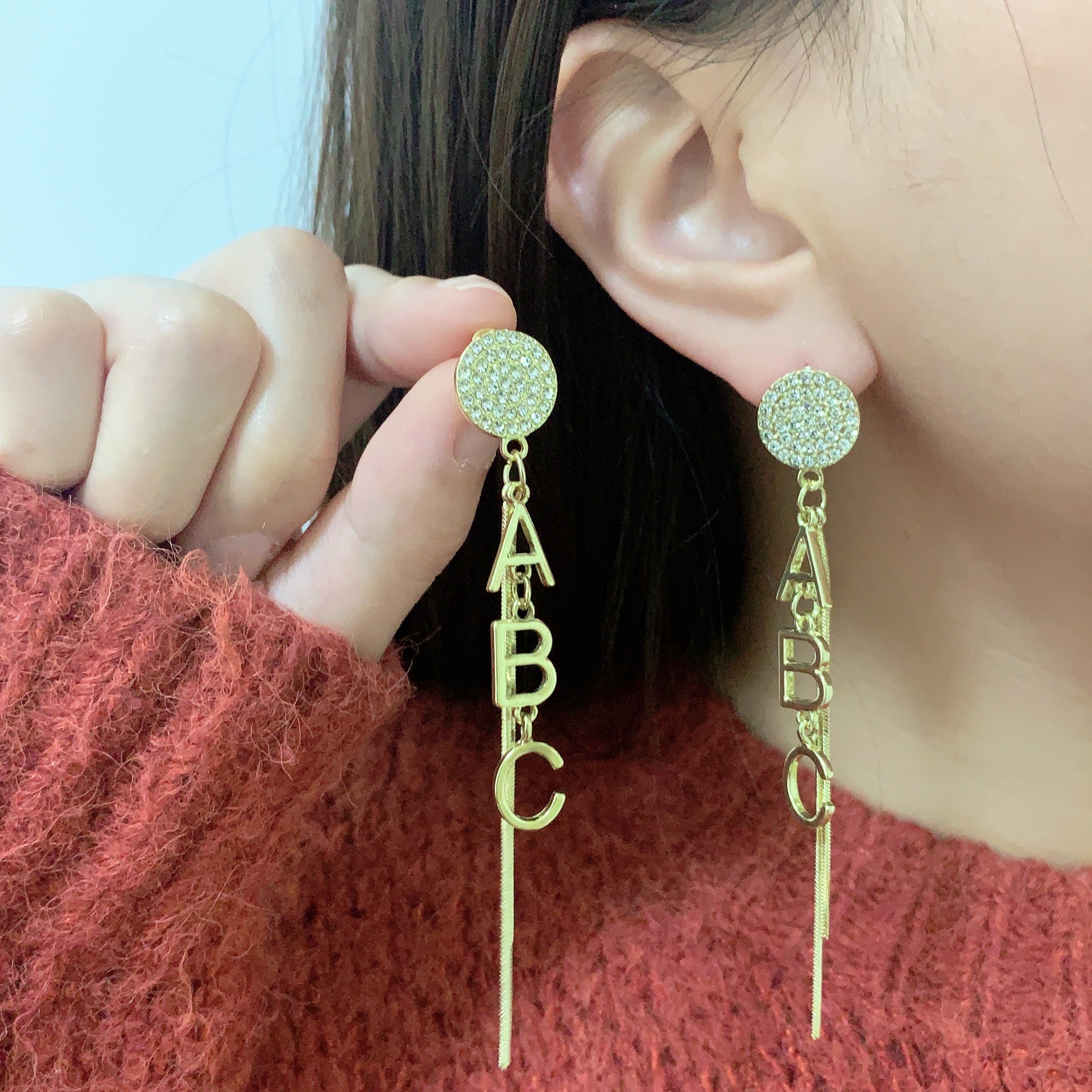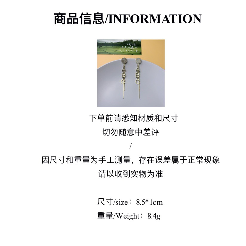 2024年新款潮 银针气质耳饰女长款流苏高级感字母ABC创意耳钉耳环 English | 投诉
