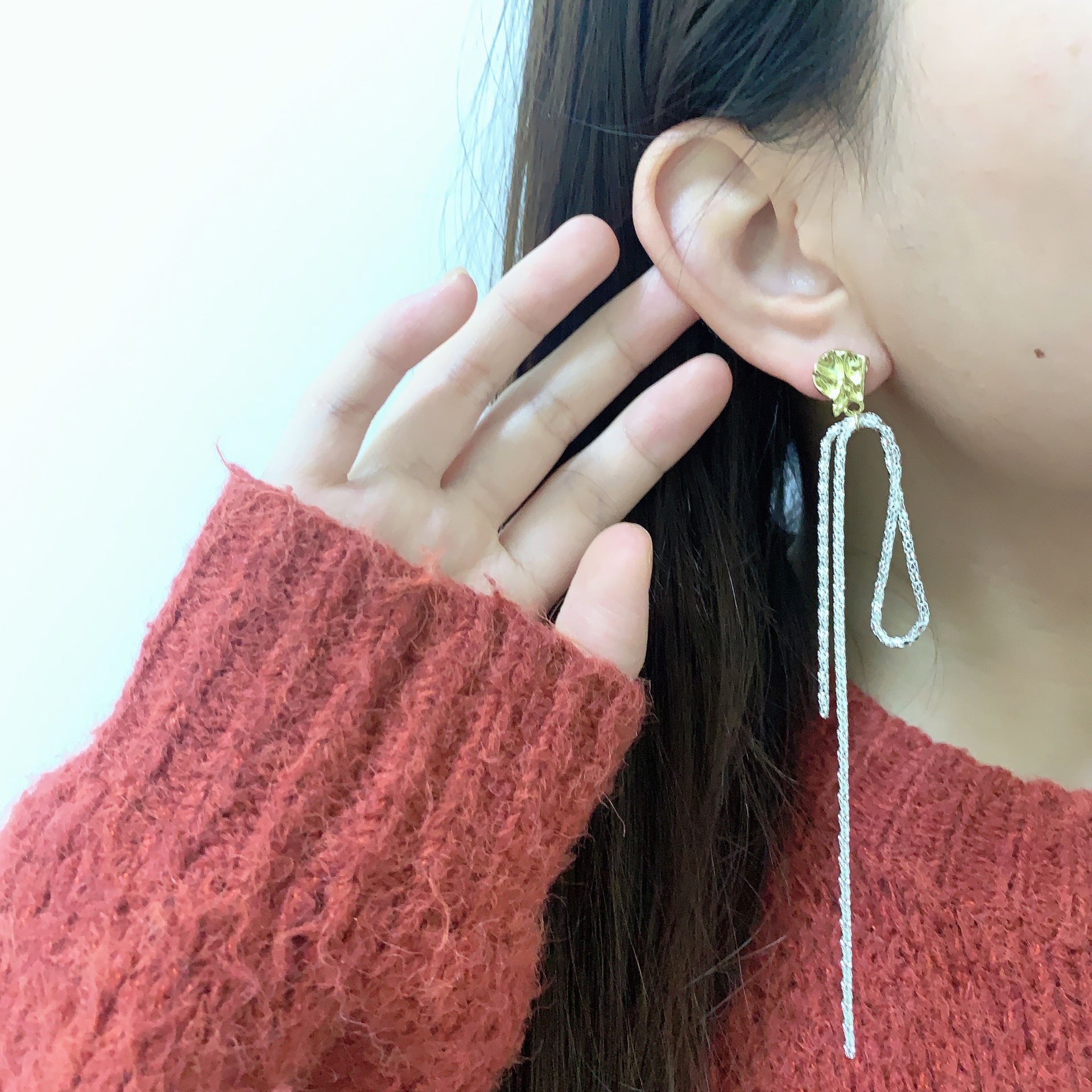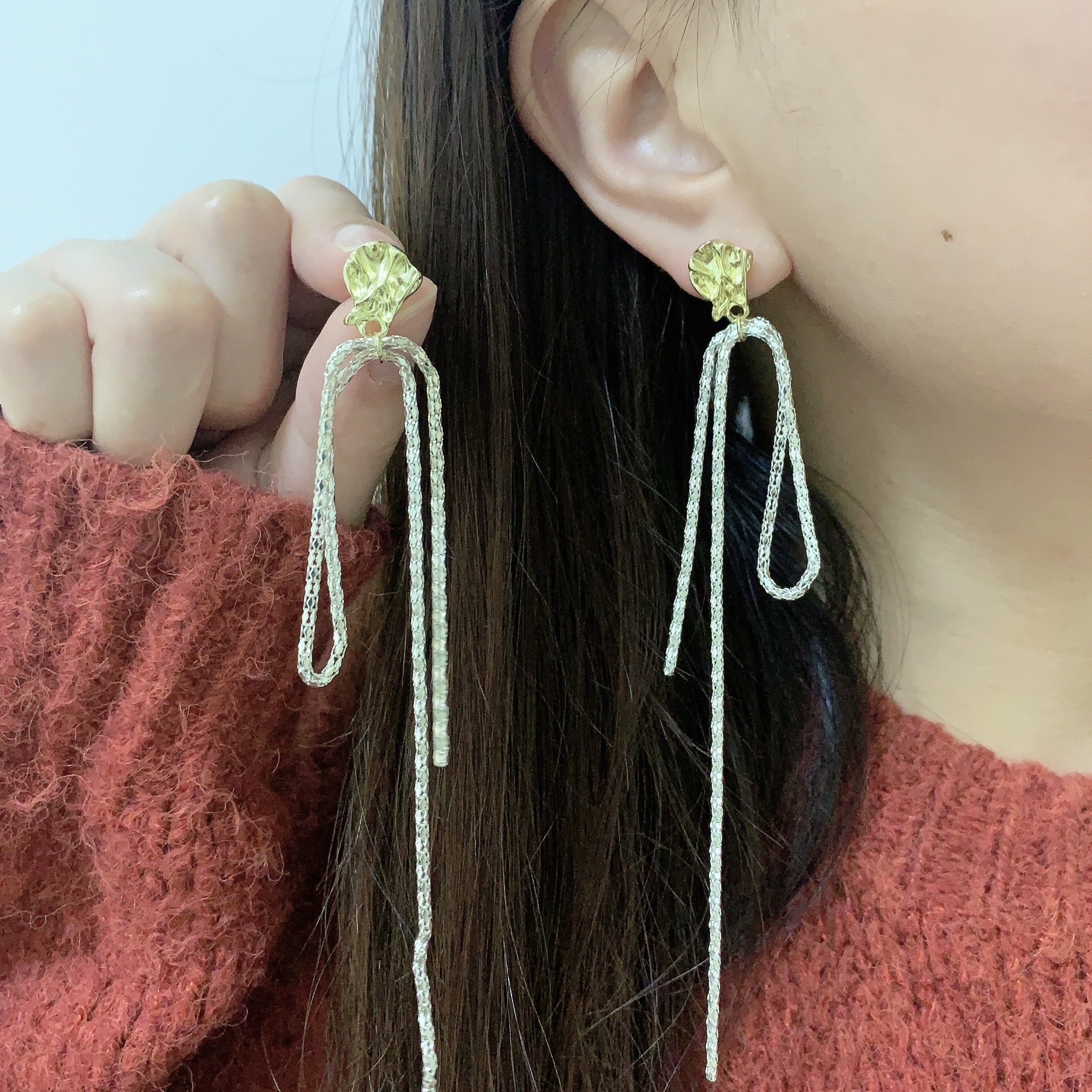 ins潮耳环女 s925银针个性不规则几何超仙长款耳线流苏碎银子耳钉 English | 投诉