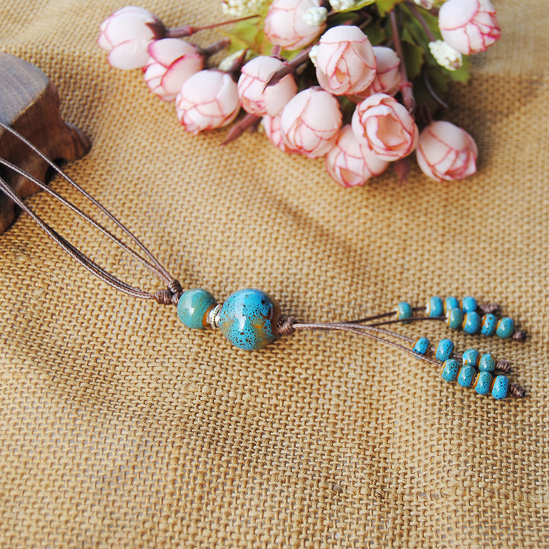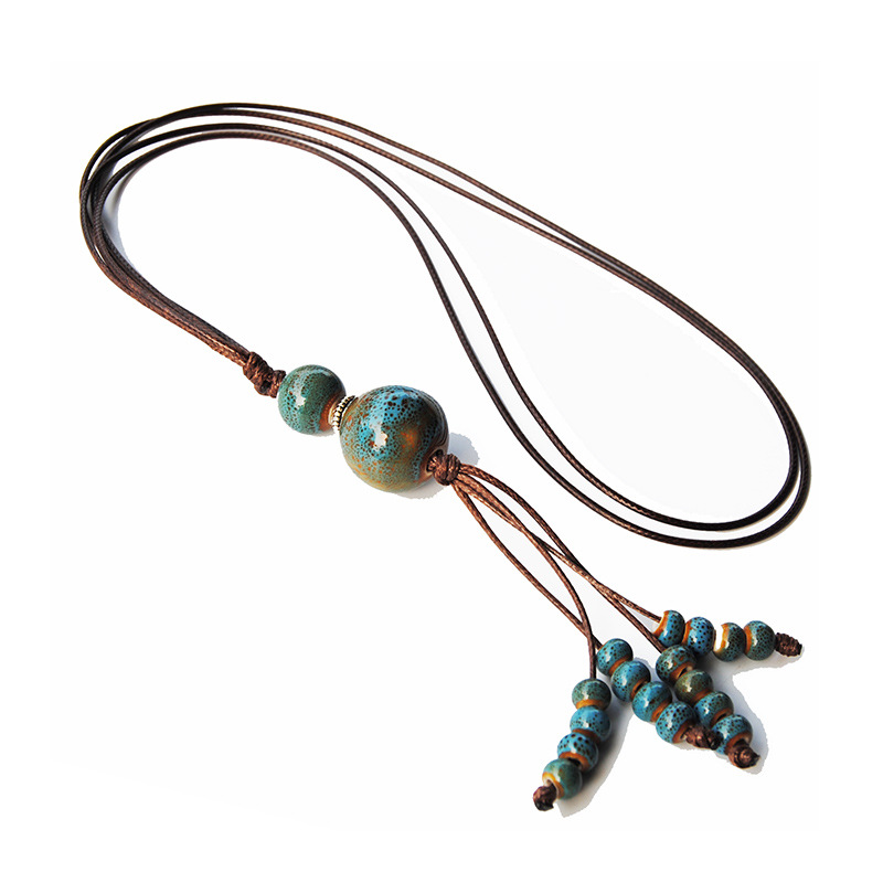 2023年新款潮复古民族风陶瓷珠项链女长款棉麻连衣裙毛衣链配饰品 English | 投诉