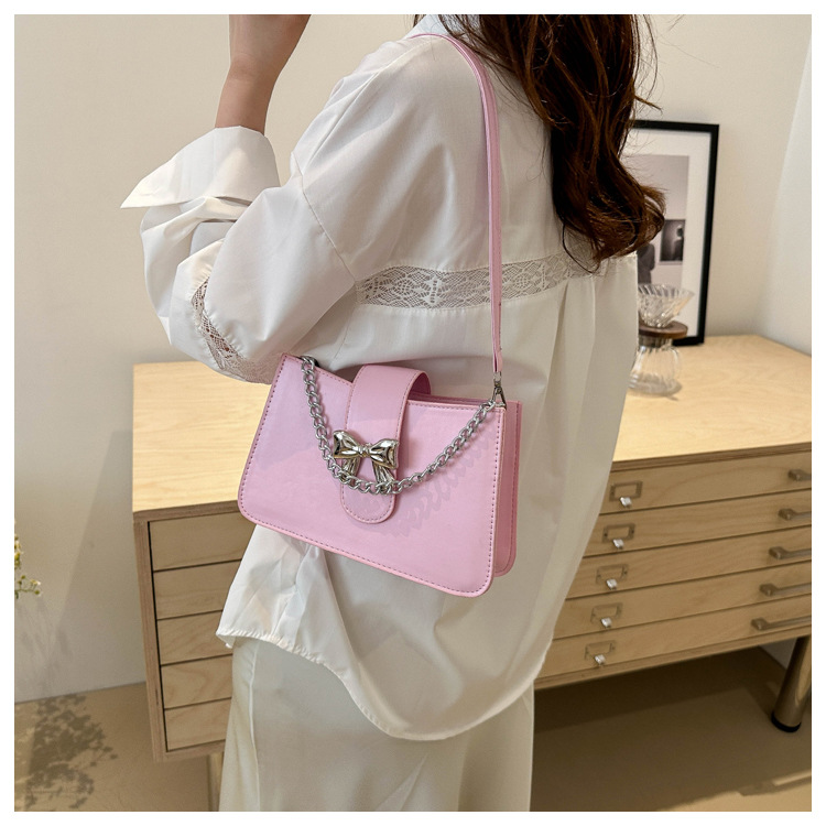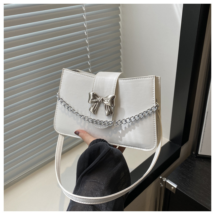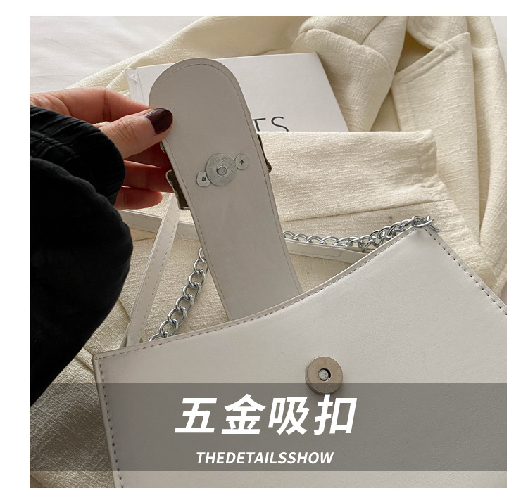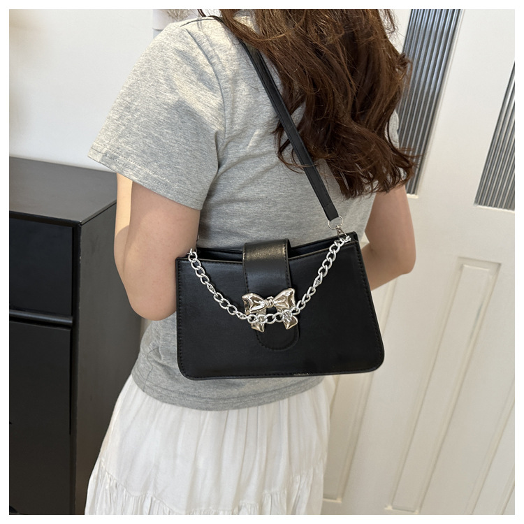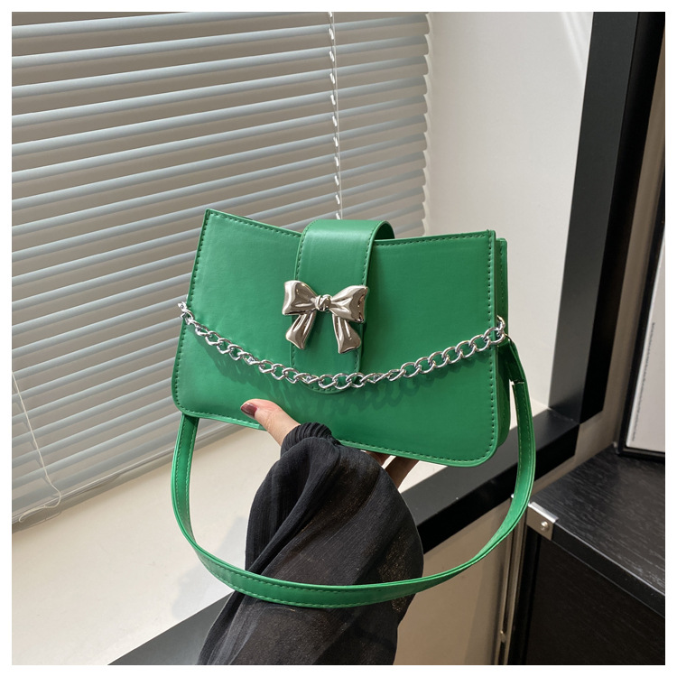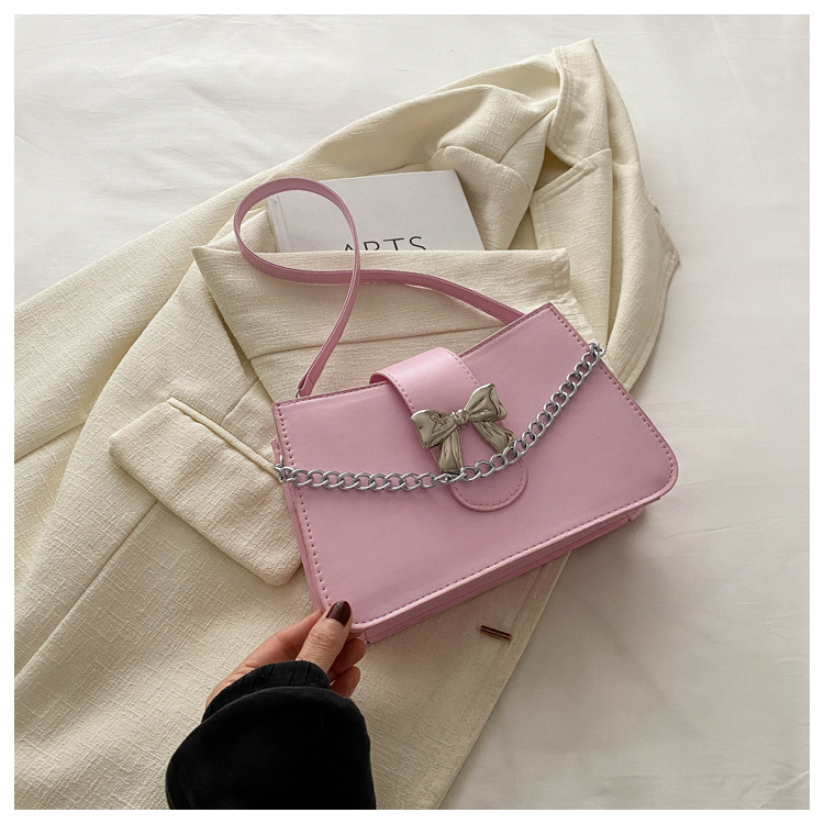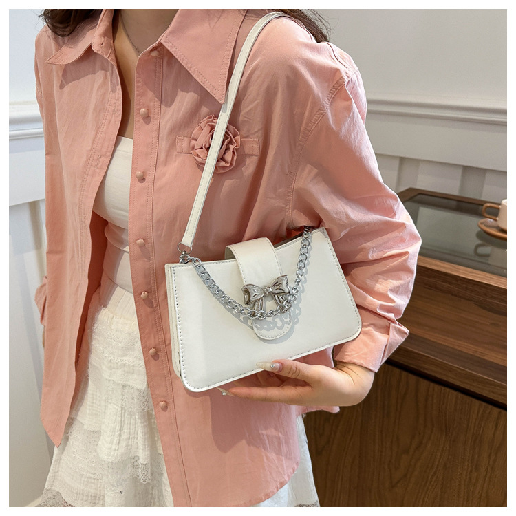 时尚纯色链条2024小清新新款简约通勤大容量单肩斜挎腋下小方包女