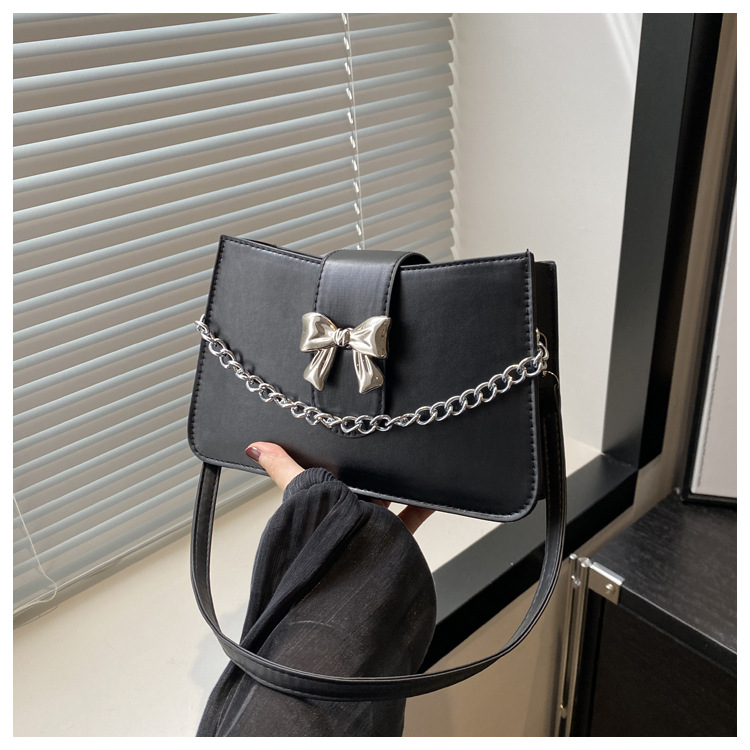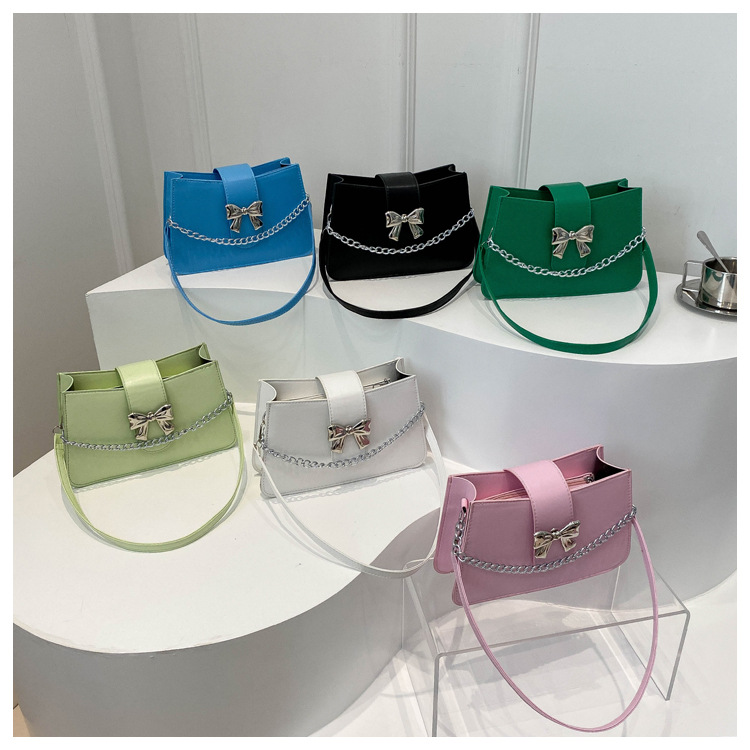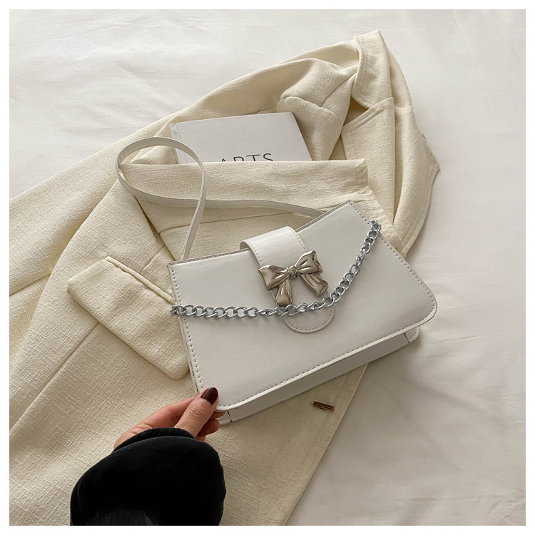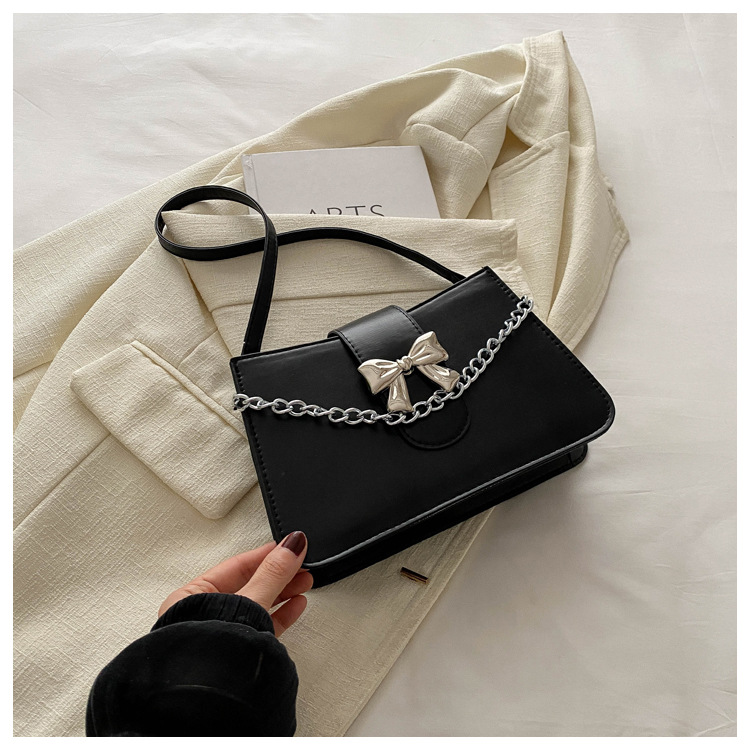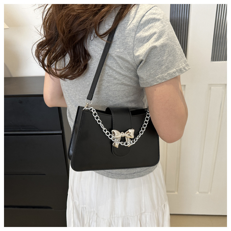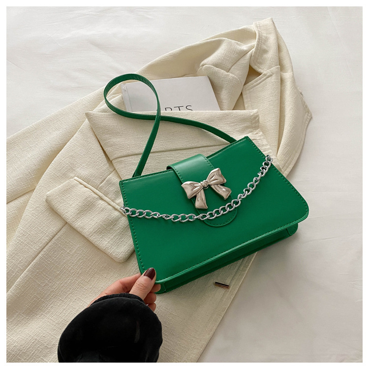 时尚纯色链条2024小清新新款简约通勤大容量单肩斜挎腋下小方包女