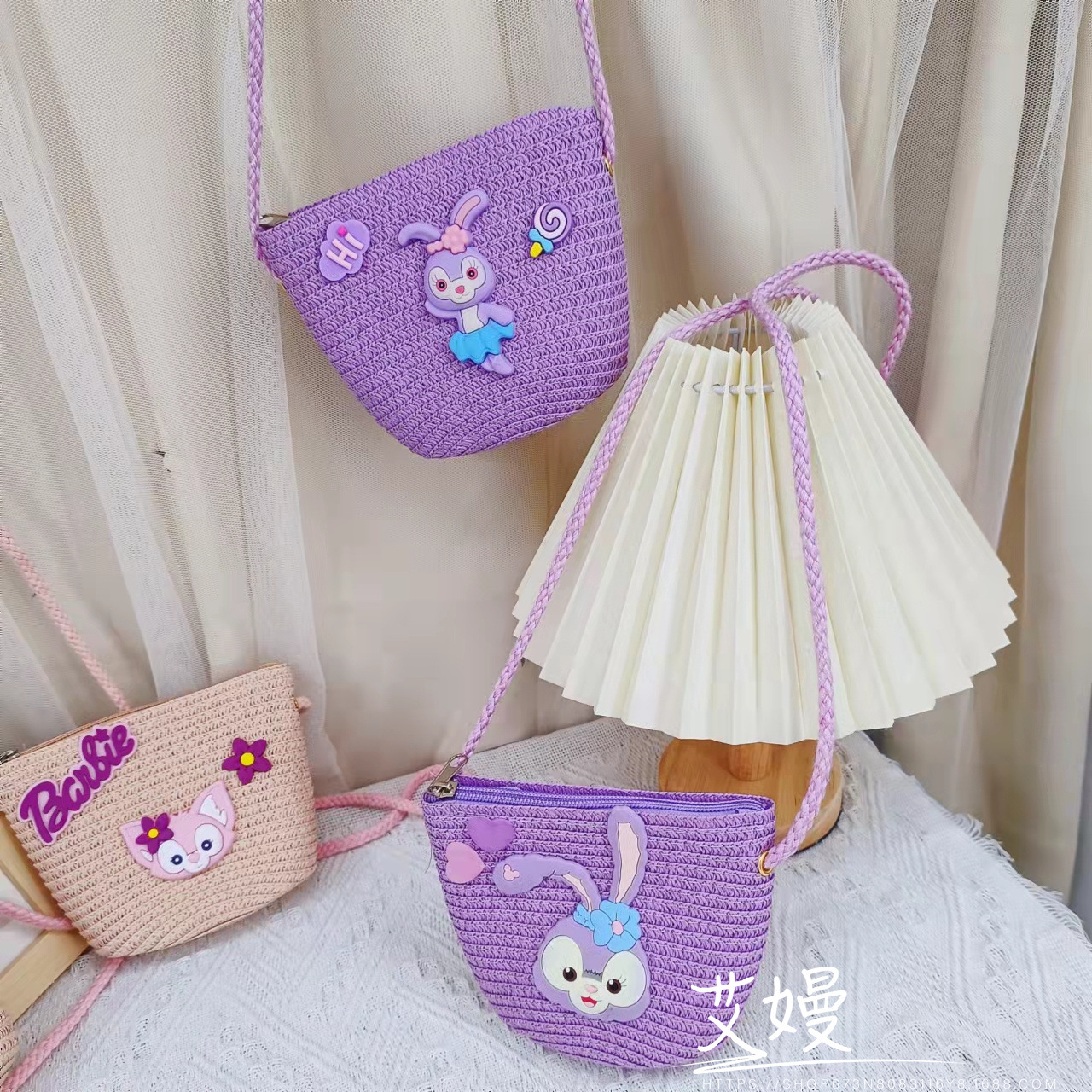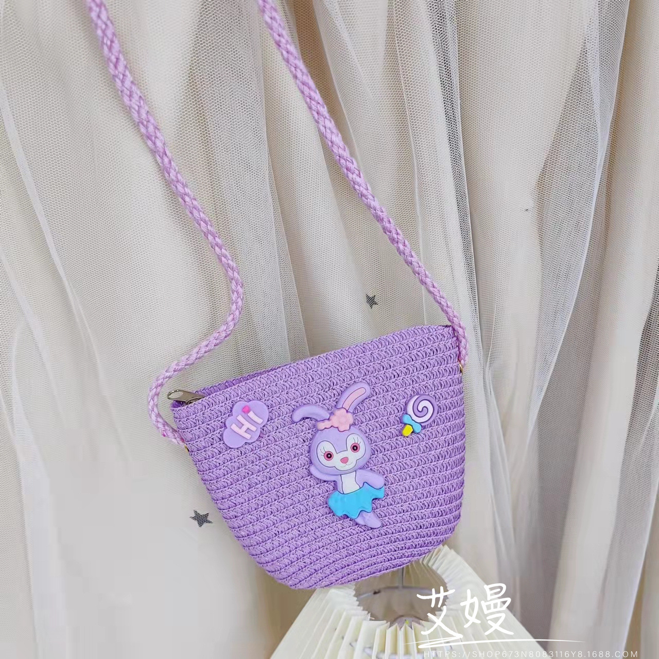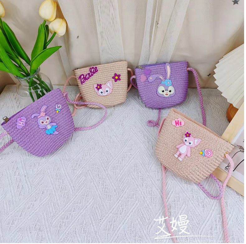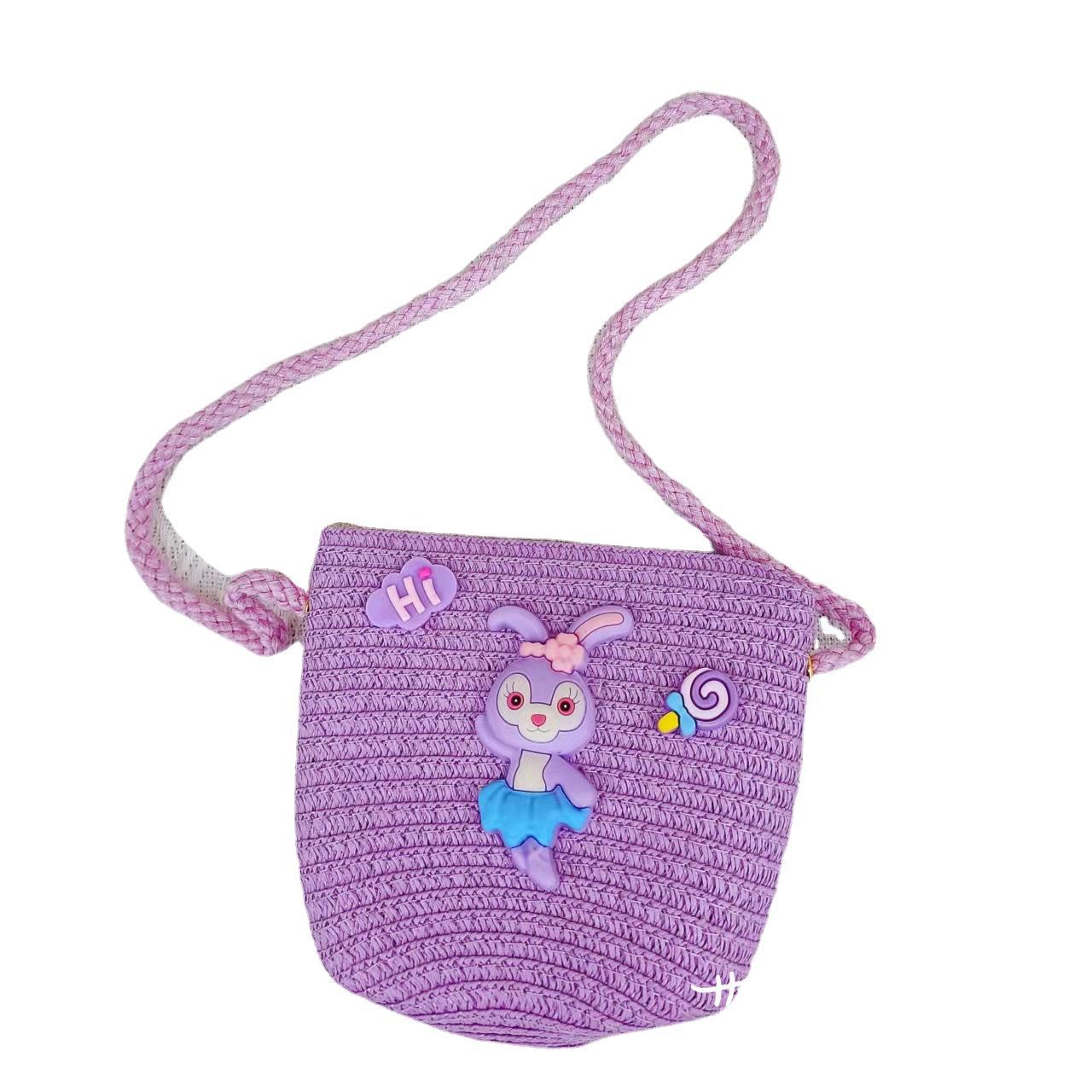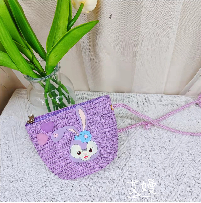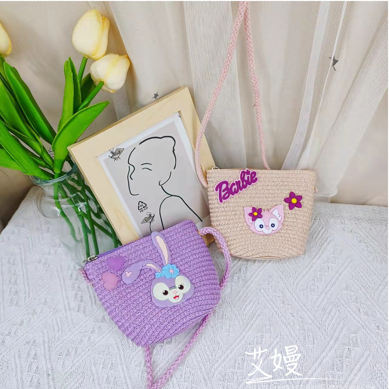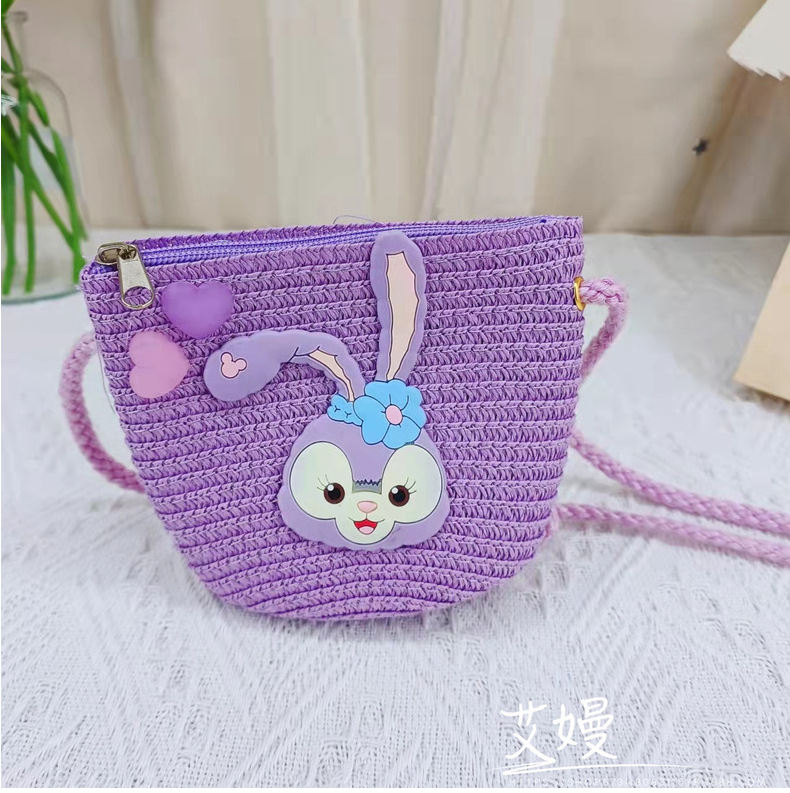 春夏新款动漫卡通迷你包包儿童星黛紫兔子儿童包包草编网红斜挎包